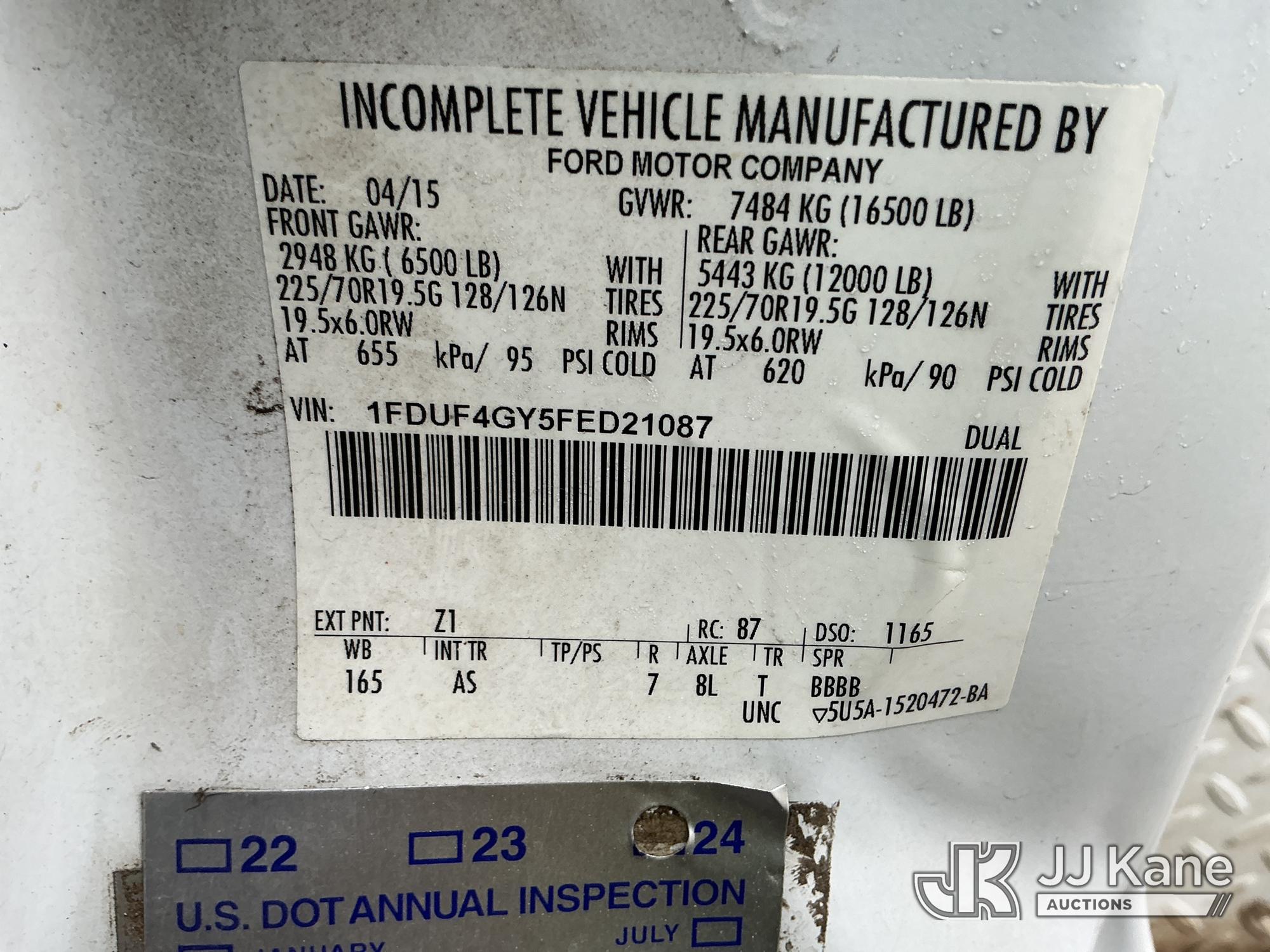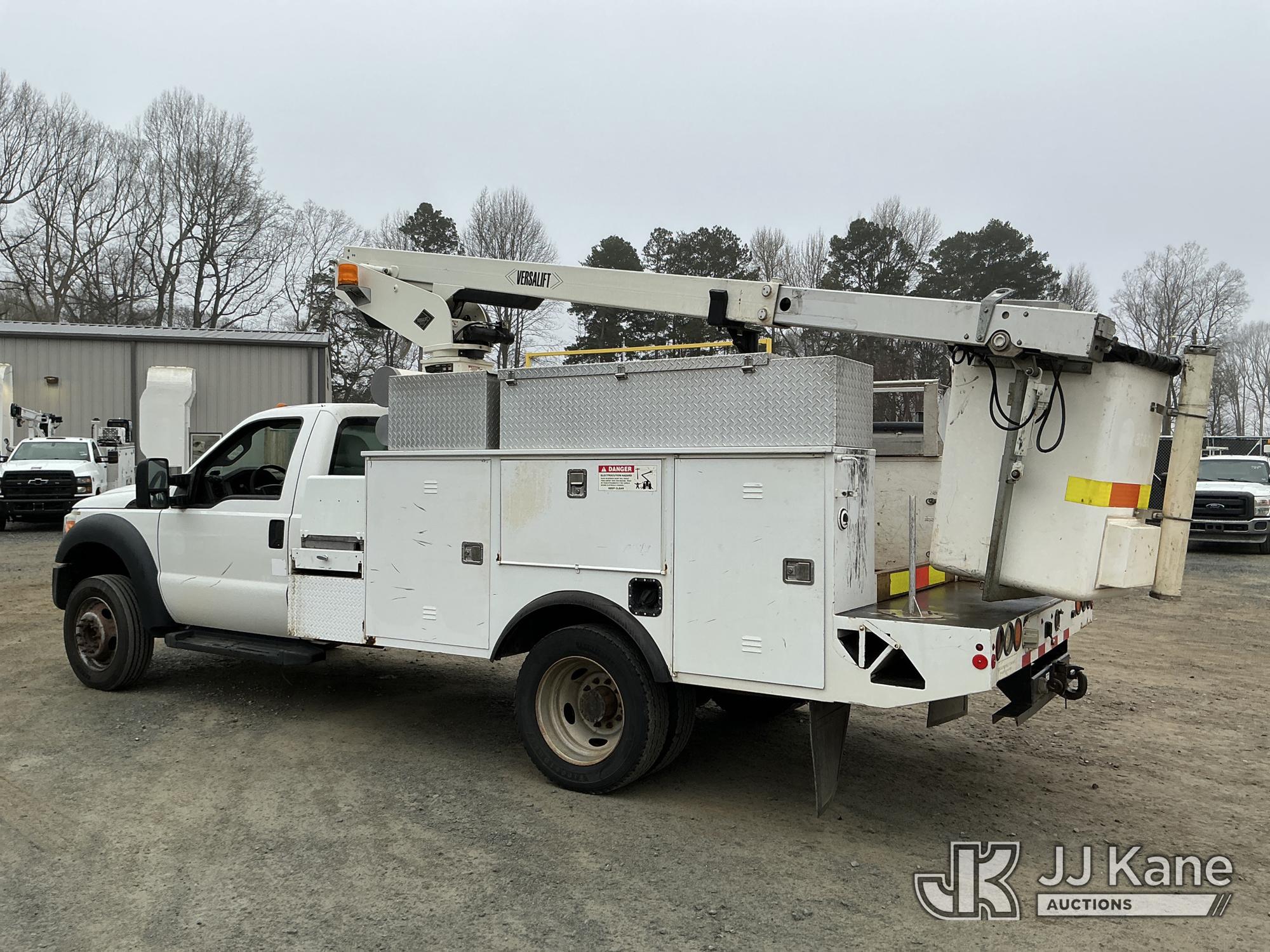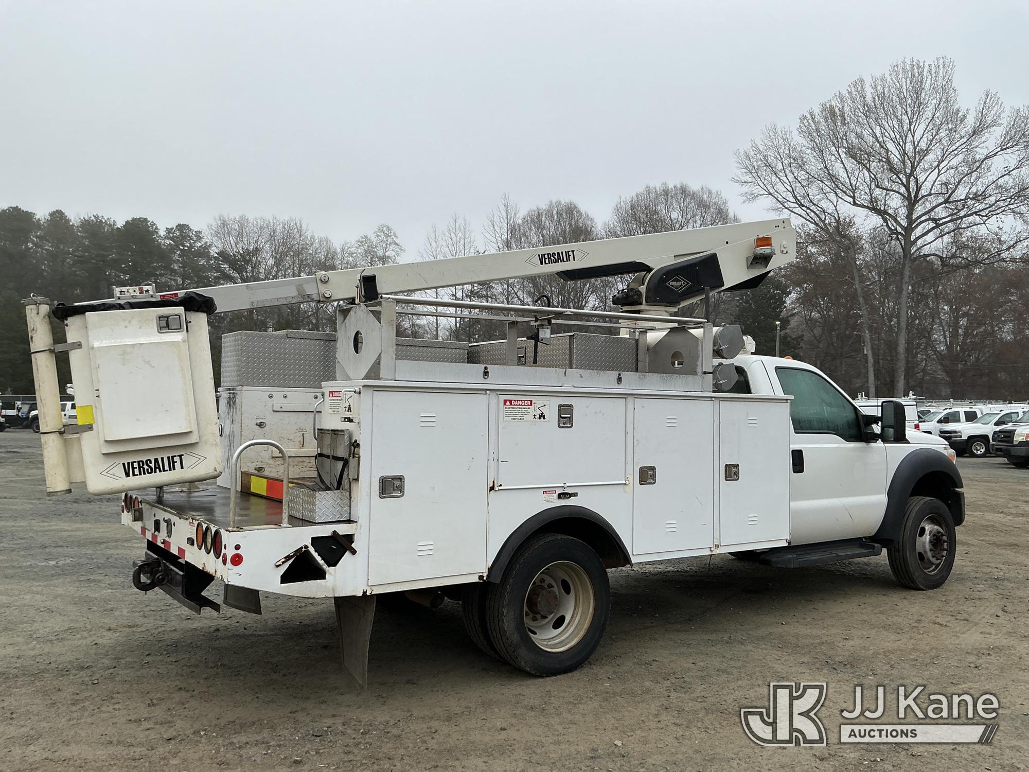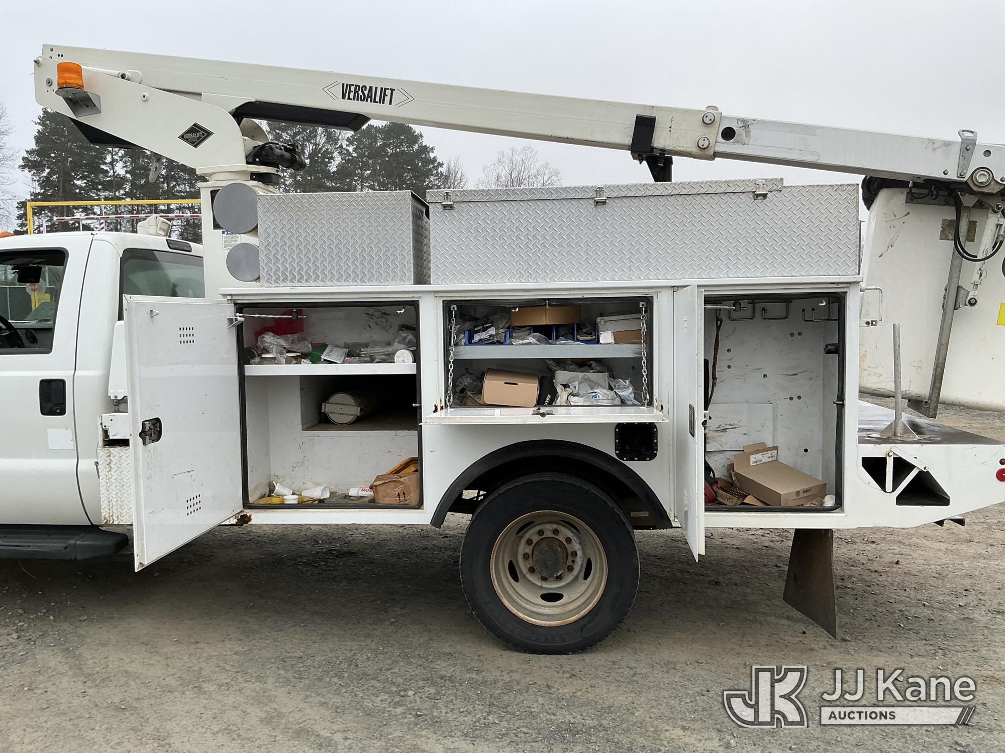 Versalift TEL29N03, 34 ft, Telescopic Non-Insulated Bucket Truck s/n AG150086, with single-man bucket, mounted behind cab on 2015 Ford F450 Service Truck, 10-cyl gas, Auto, A/C, with Cummins Onan pony motor , (140,284 miles) (Runs & Moves) (Pony Motor Not Running, Upper Condition Unknown, Jump To Start, Check Engine Light On) This is a Titled Item*