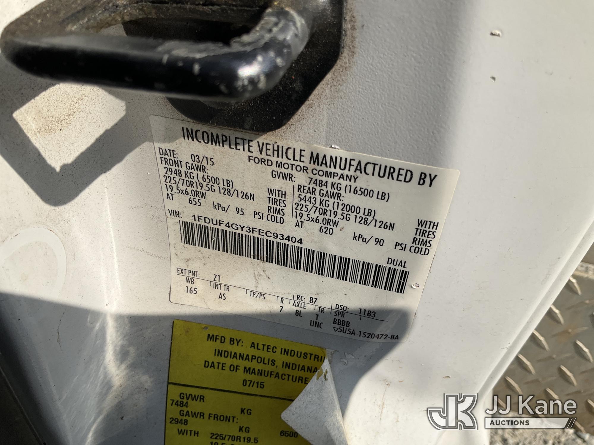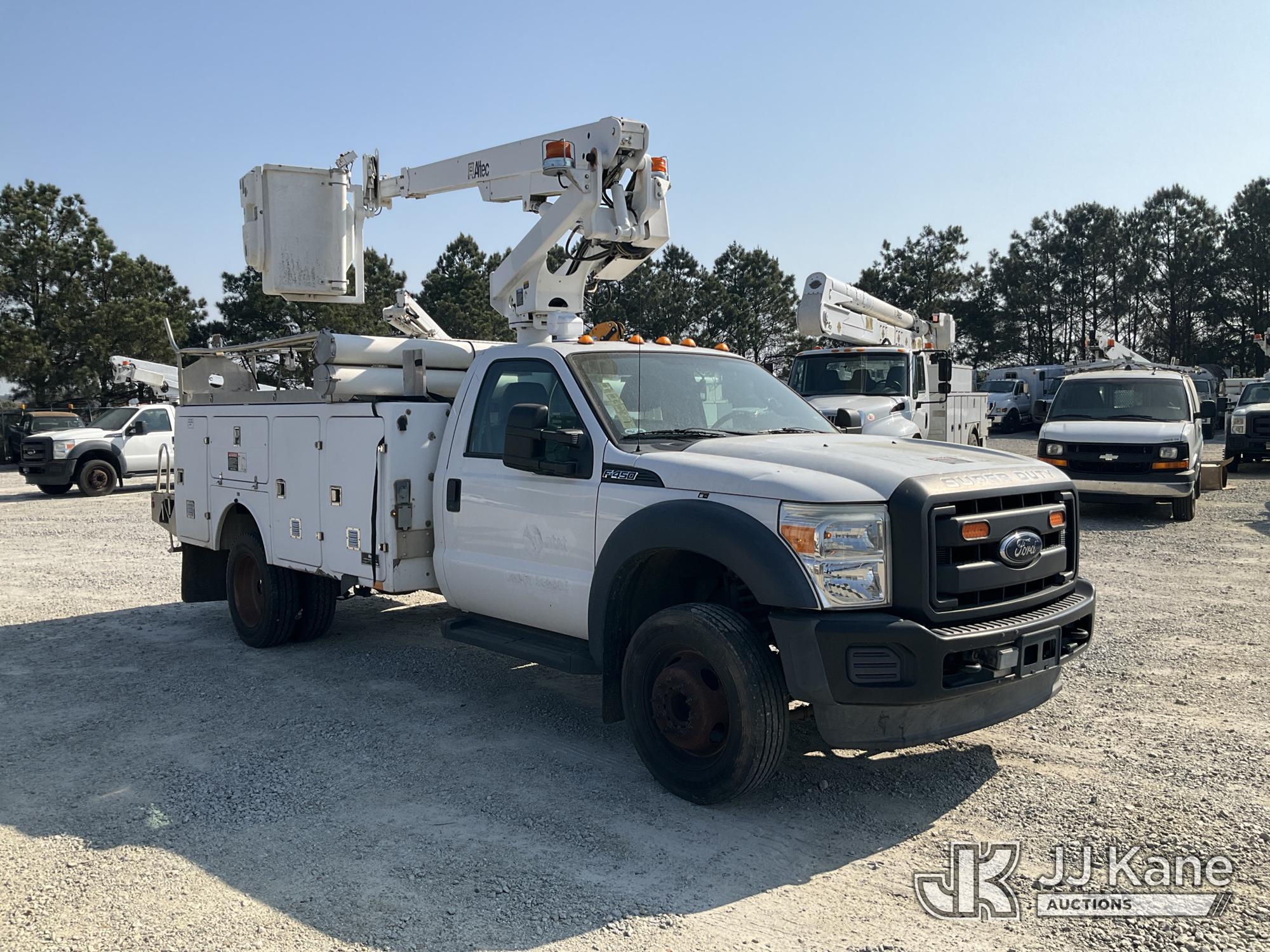 Altec AT200-A, 35 ft, Telescopic Non-Insulated Bucket Truck s/n 0615BV22072, with single man bucket, mounted behind cab on 2015 Ford F-450 SD Service Truck, 6.8L V10 SOHC 30V Gas, RWD, Auto, A/C, with Onan generator, (55,991 miles) (Runs, Moves & Operates) This is a Titled Item*