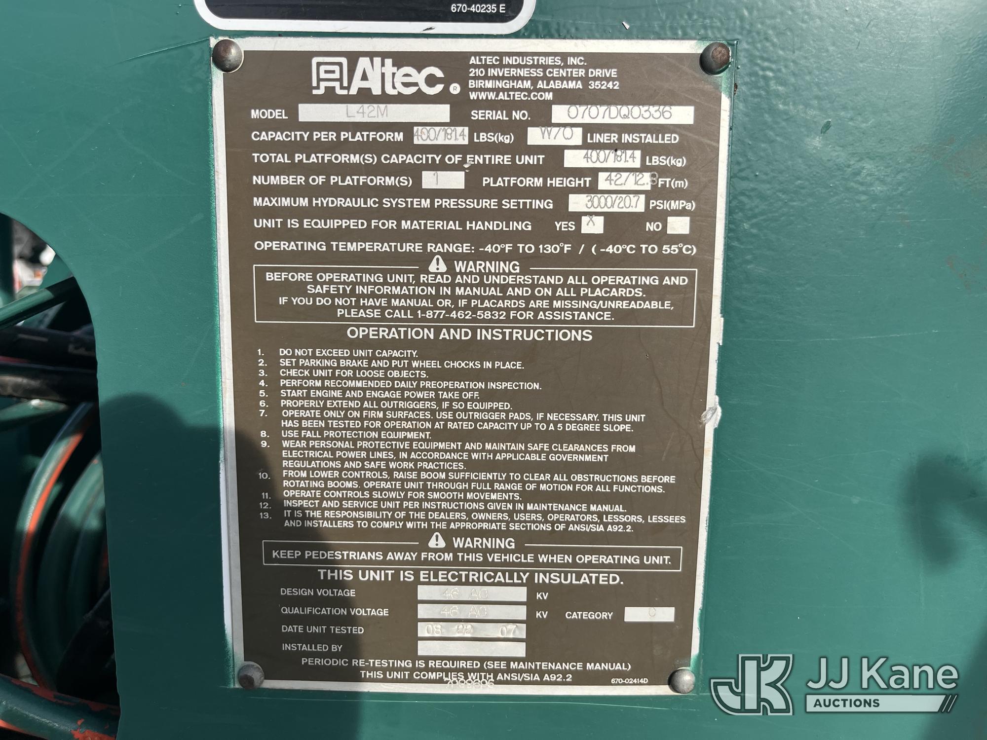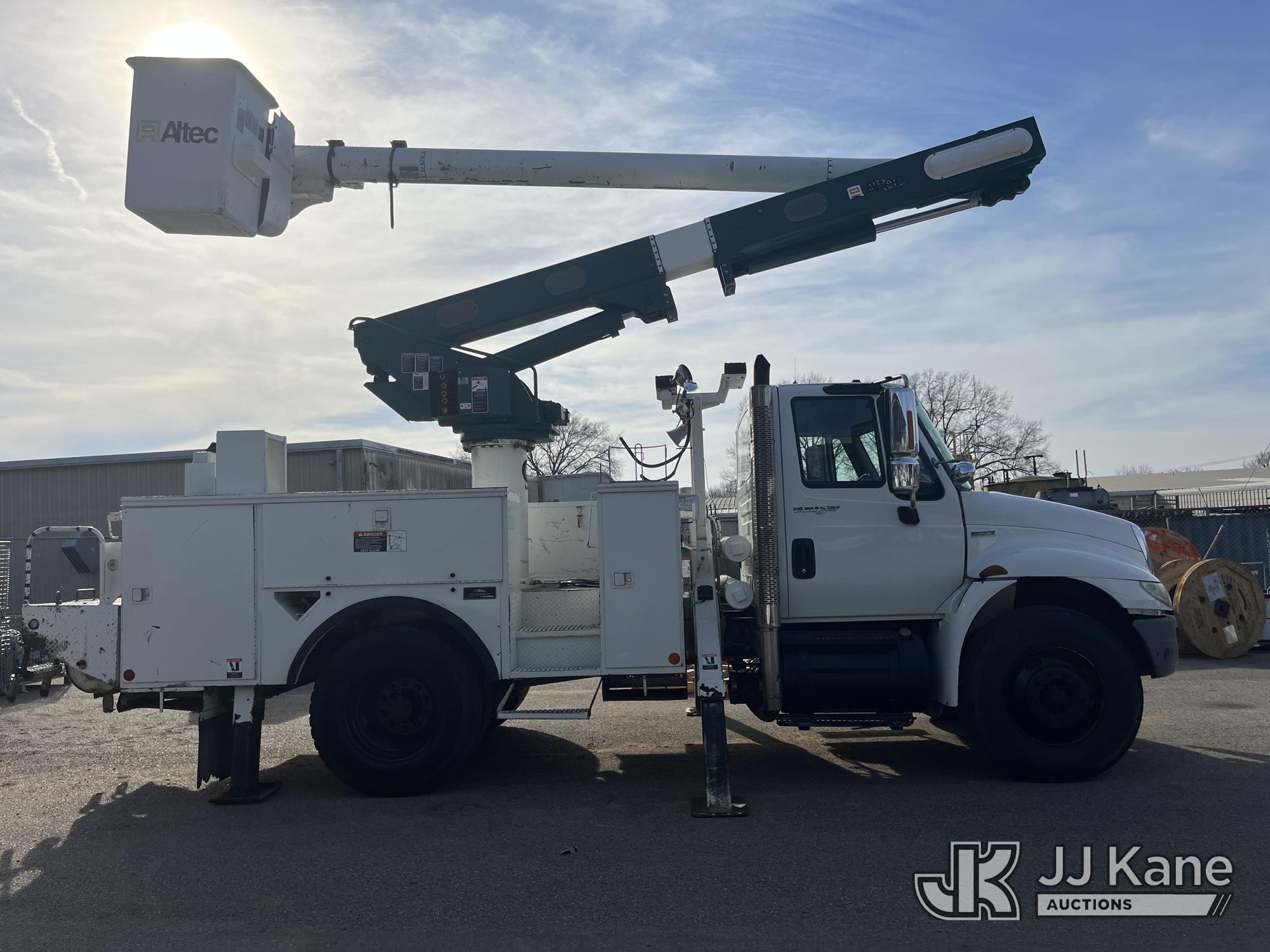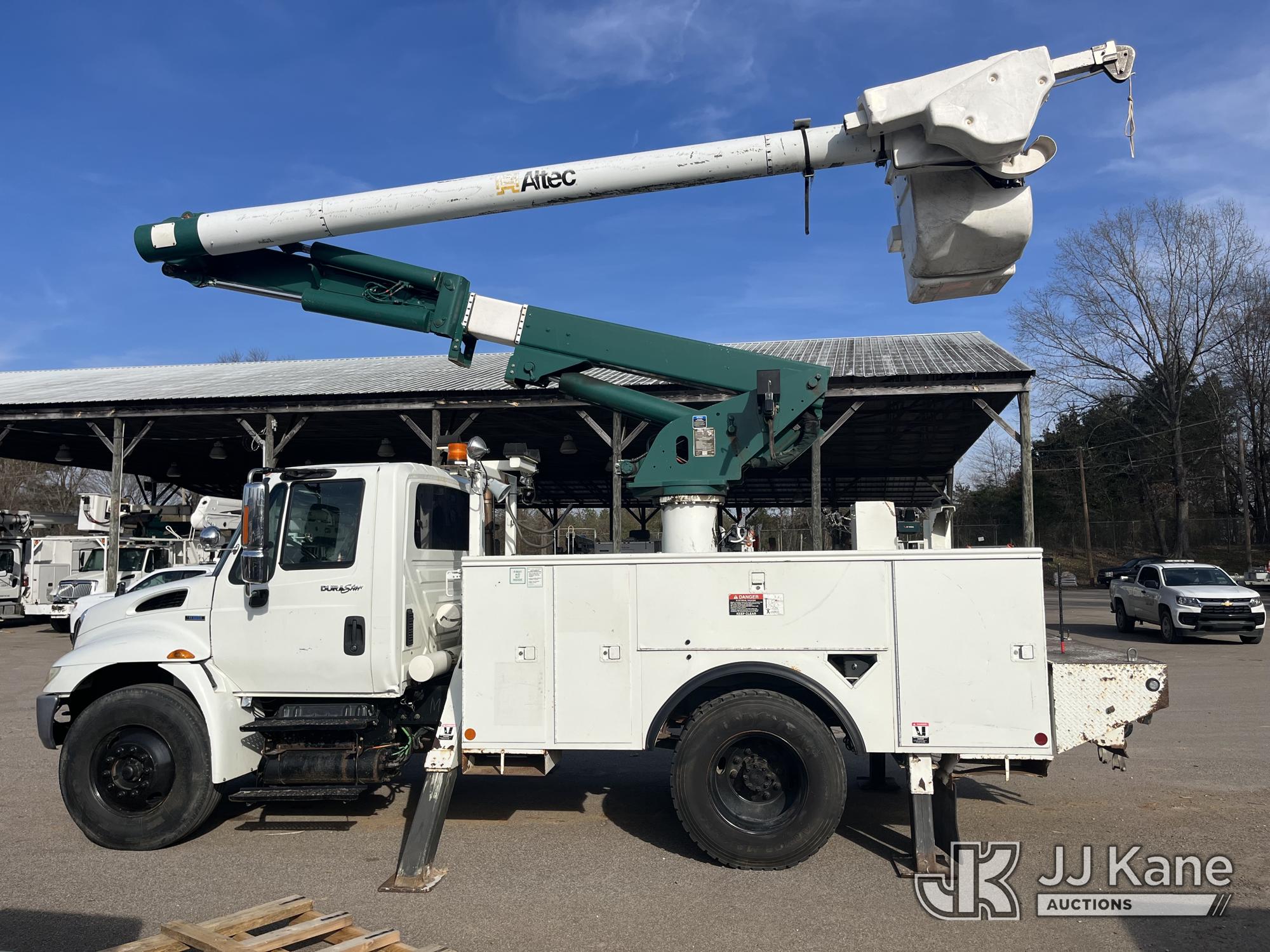 Altec L42M, 47 ft, Over-Center Material Handling Bucket Truck s/n 0707DQ0336, with single-man bucket & 4 hyd outriggers, center mounted on 2008 International 4300 Utility Truck, s/n 1HTMMAAN98H575977, Maxxforce DT diesel, 4X2, Auto, A/C, (10,593 miles) (Electric Cooperative Owned) (Runs, Moves, Operates)(Seller States: Gauge Cluster Replaced) This is a Titled Item*