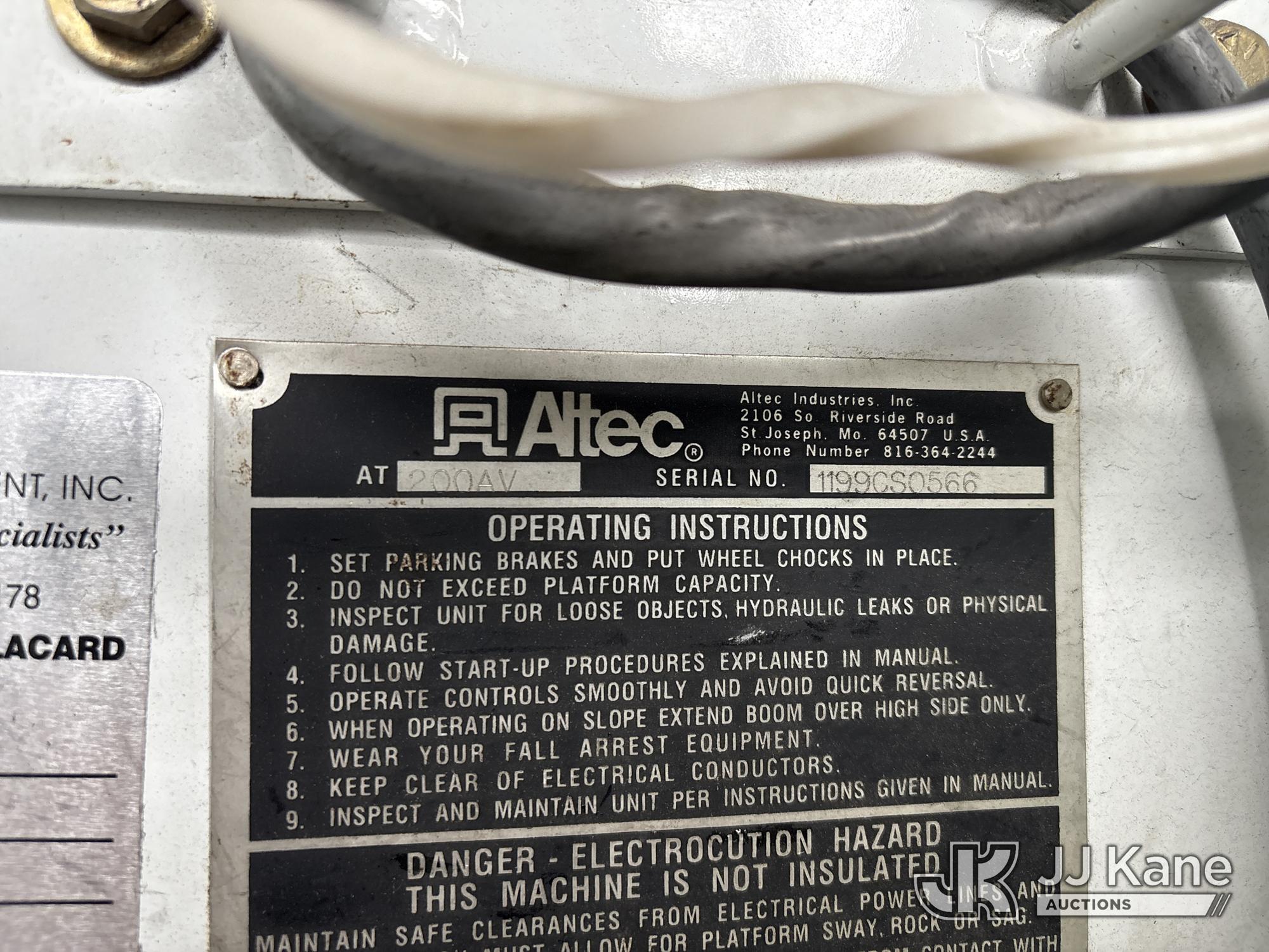 Altec AT200-AV, 35 ft, Telescopic Non-Insulated Bucket Van s/n 1199CS0566, with single man bucket, mounted on 1999 Ford Econoline E350 Super Duty Cargo Van, s/n 1FTSE34L0XHC19603, 5.4L V8 SOHC 16V RWD, gas, 4-Speed Automatic, A/C, (Exempt from Odometer Disclosure - Reads 150,364 miles) (Runs, Moves & Upper Operates) This is a Titled Item*