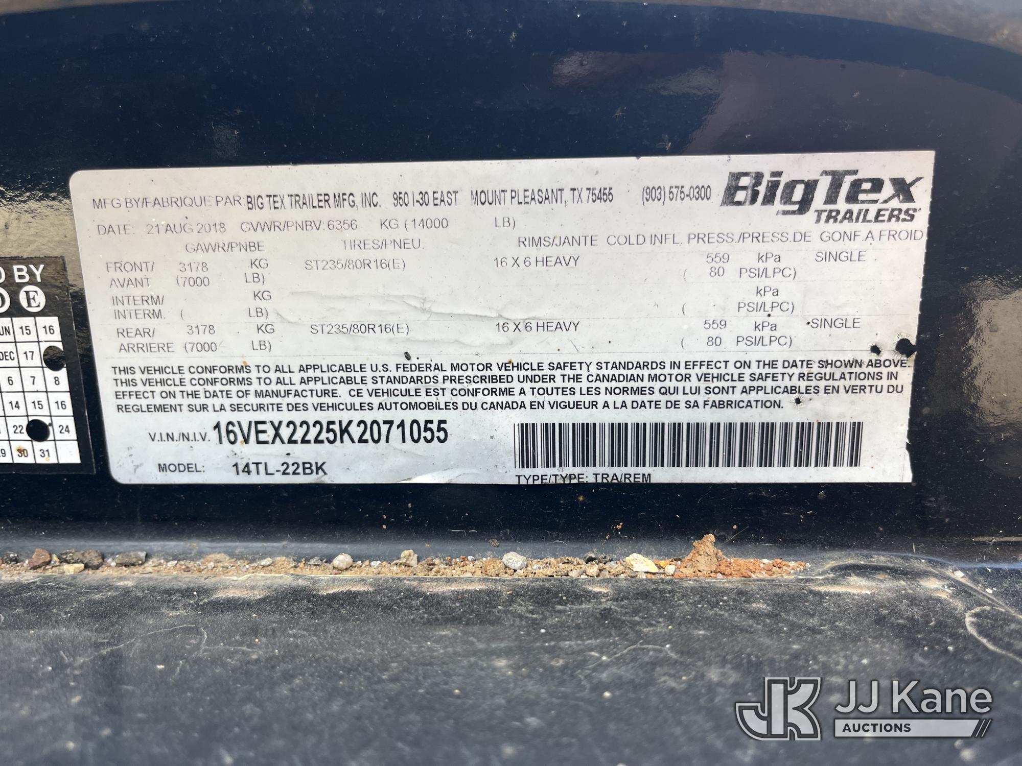 2019 Big Tex 14TL-22BK T/A Tilt Deck Tagalong Equipment Trailer, s/n 16VEX2225K2071055, (Electric Cooperative Owned) (Moves, Tilt Bed Operates) This is a Titled Item*