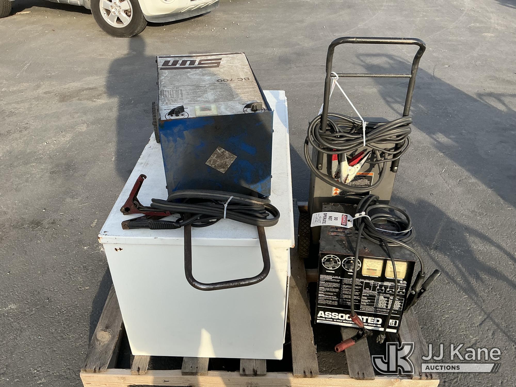(1 Pallet) Battery Chargers & Storage Box (Used )*