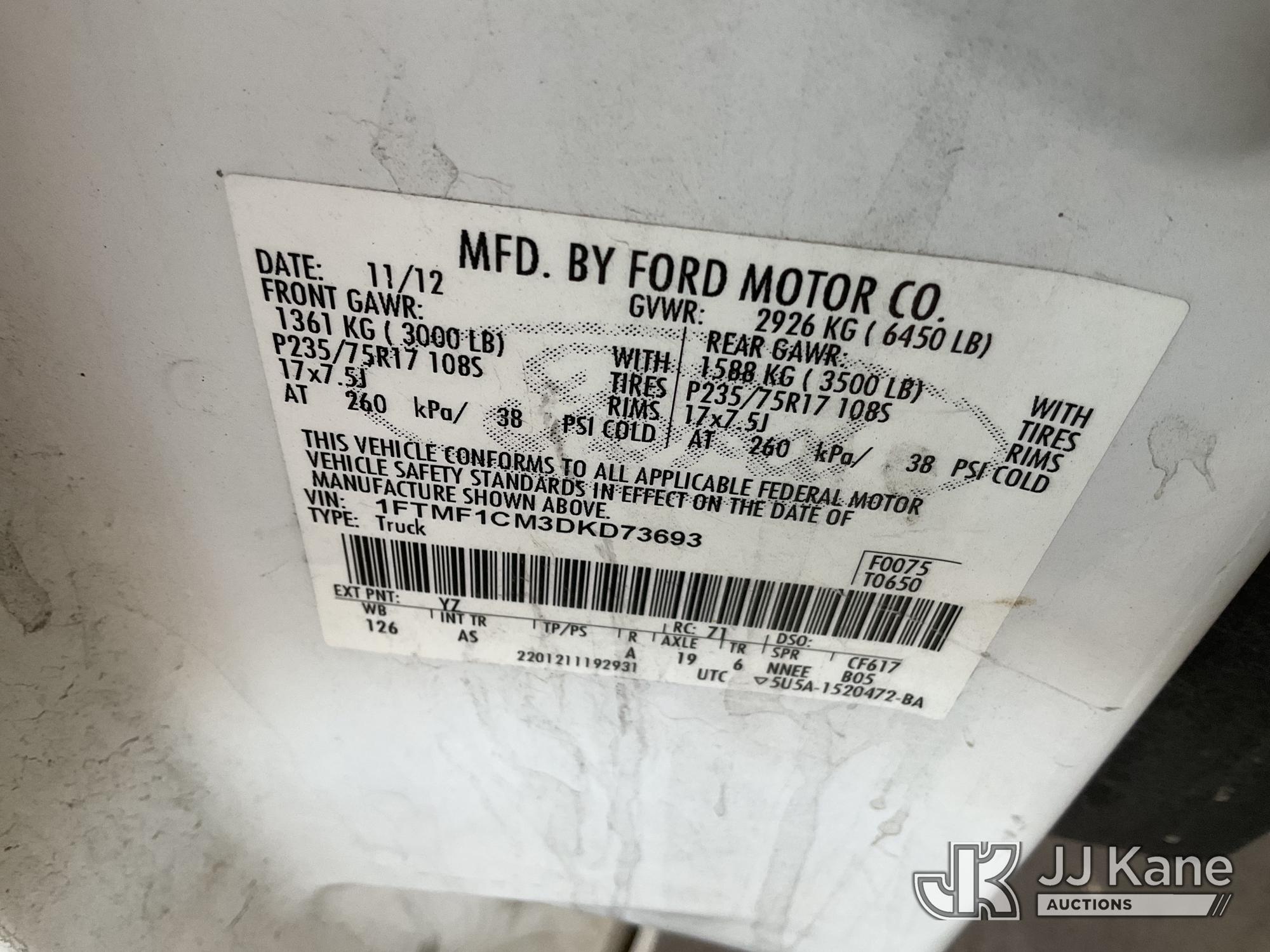 2013 Ford F-150 Pickup Truck, s/n 1FTMF1CM3DKD73693, 6-cyl gas, 6-Speed Automatic, A/C, with Tow package, toolbox, (087,447 miles) (Runs & Moves) This is a Titled Item*
