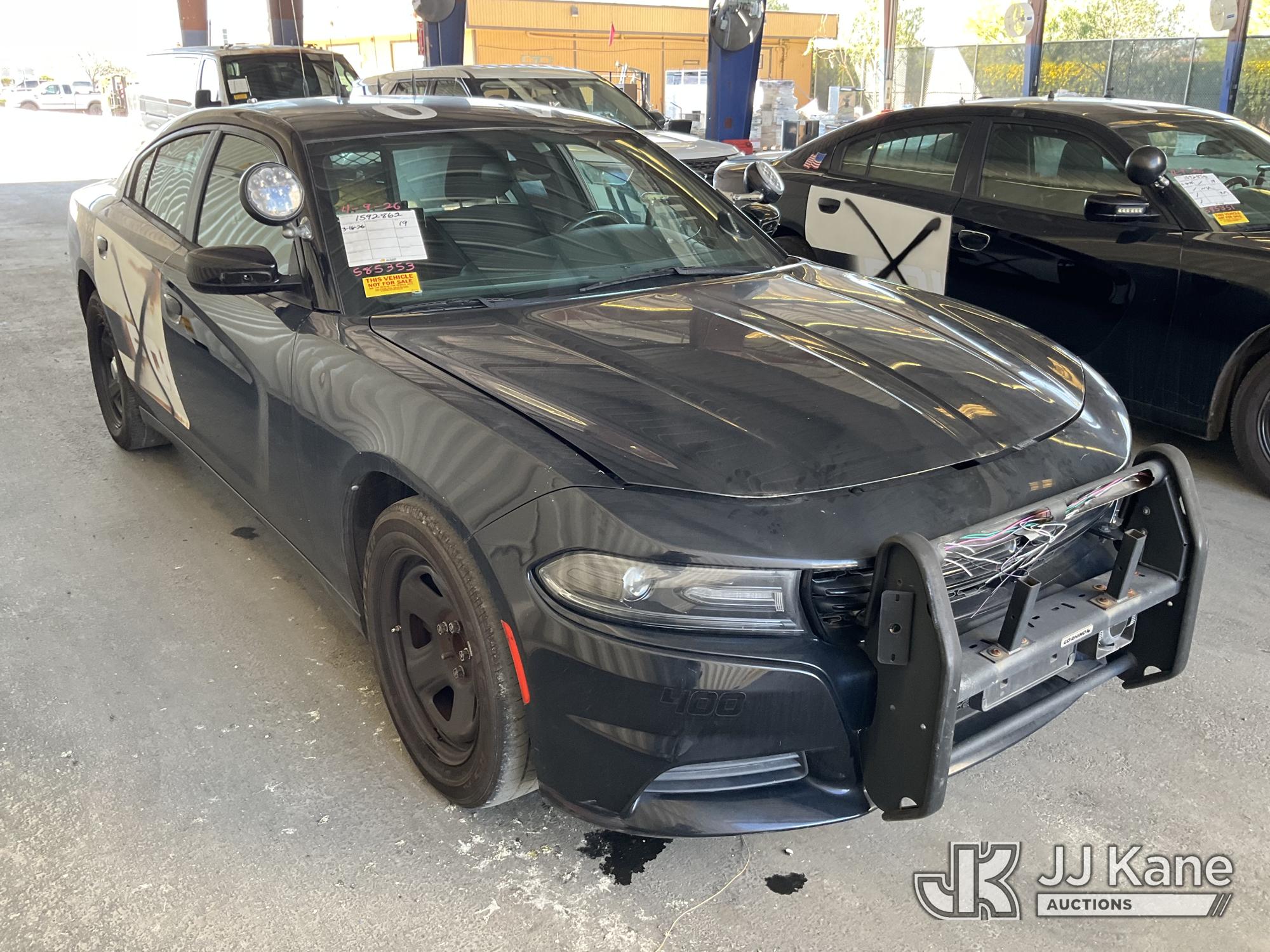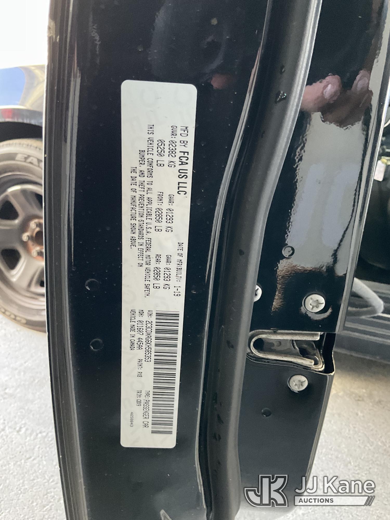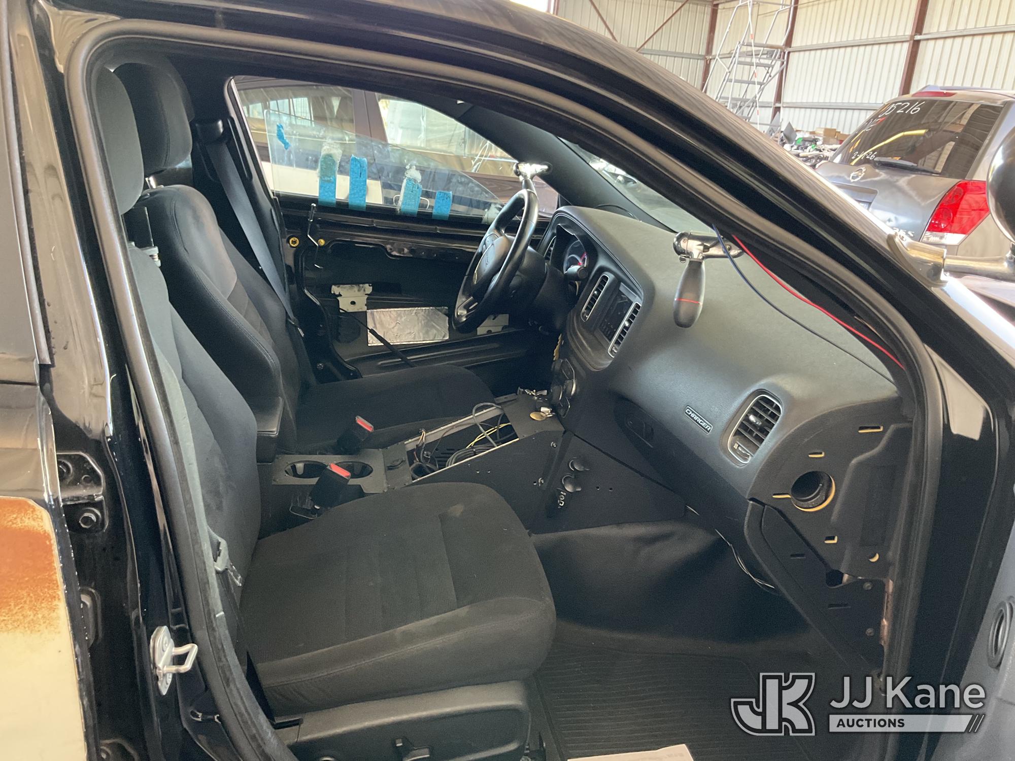 2019 Dodge Charger Police 4-Door Sedan, s/n 2C3CDXAG6KH585353, 3.6L V6 DOHC 24V RWD, GAS, 5-Speed Automatic, A/C, (84,328 miles) (Runs & Moves, Driver Door Stripped Of Parts, Interior Stripped Of Parts, No Horn, Needs New Battery) (Bidding Restricted to Licensed Vehicle Dealers Only), This is a Titled Item*
