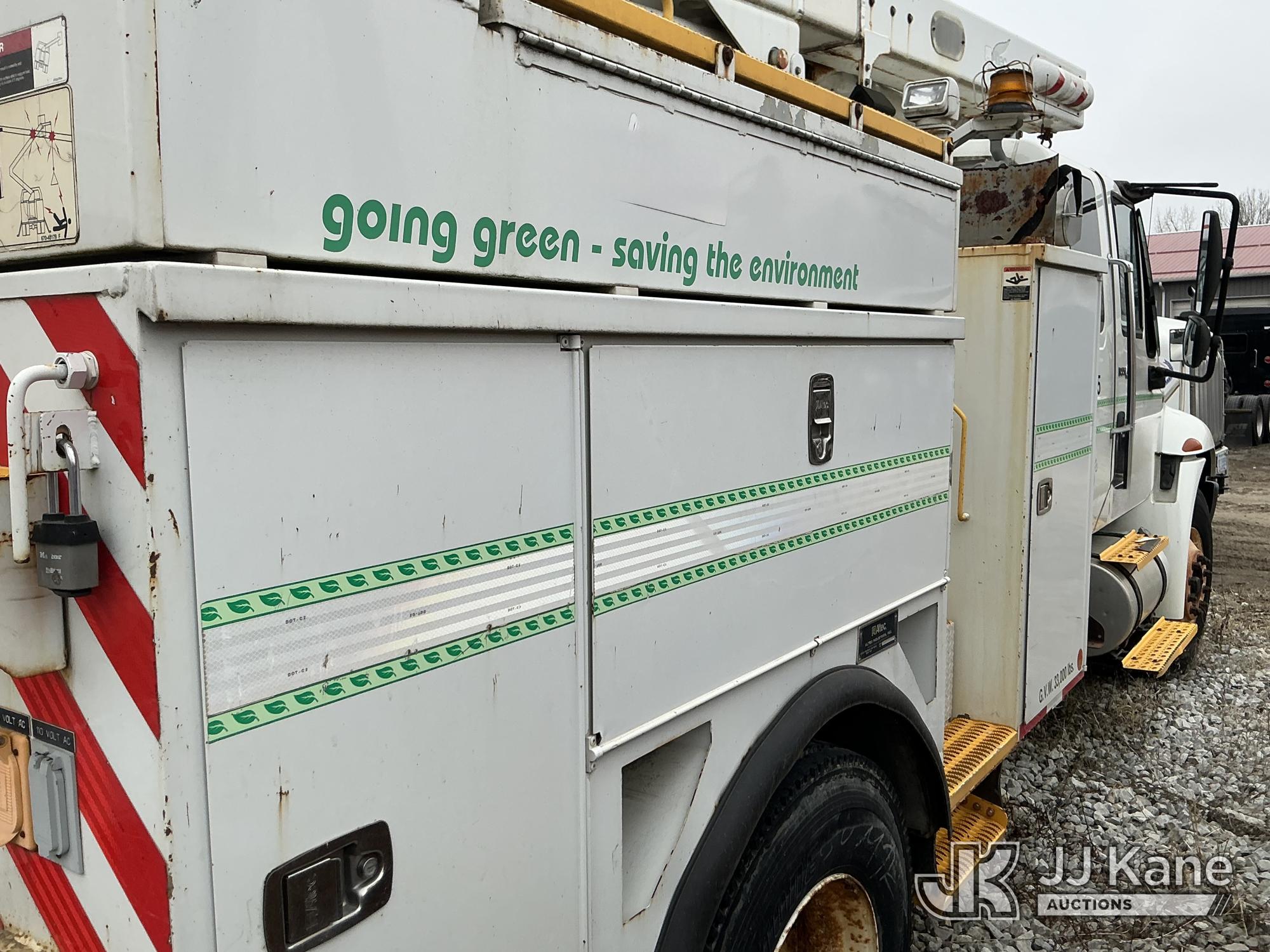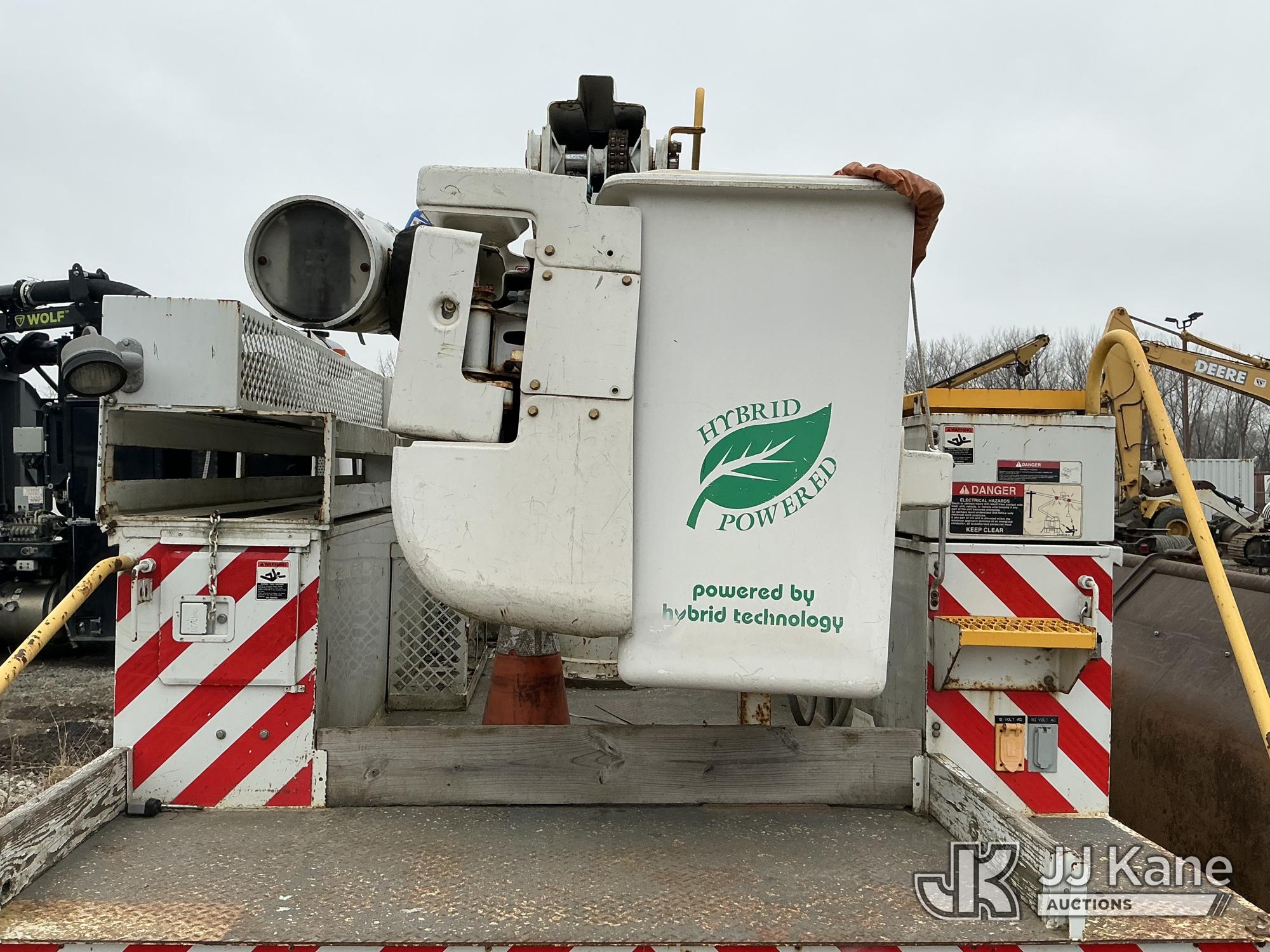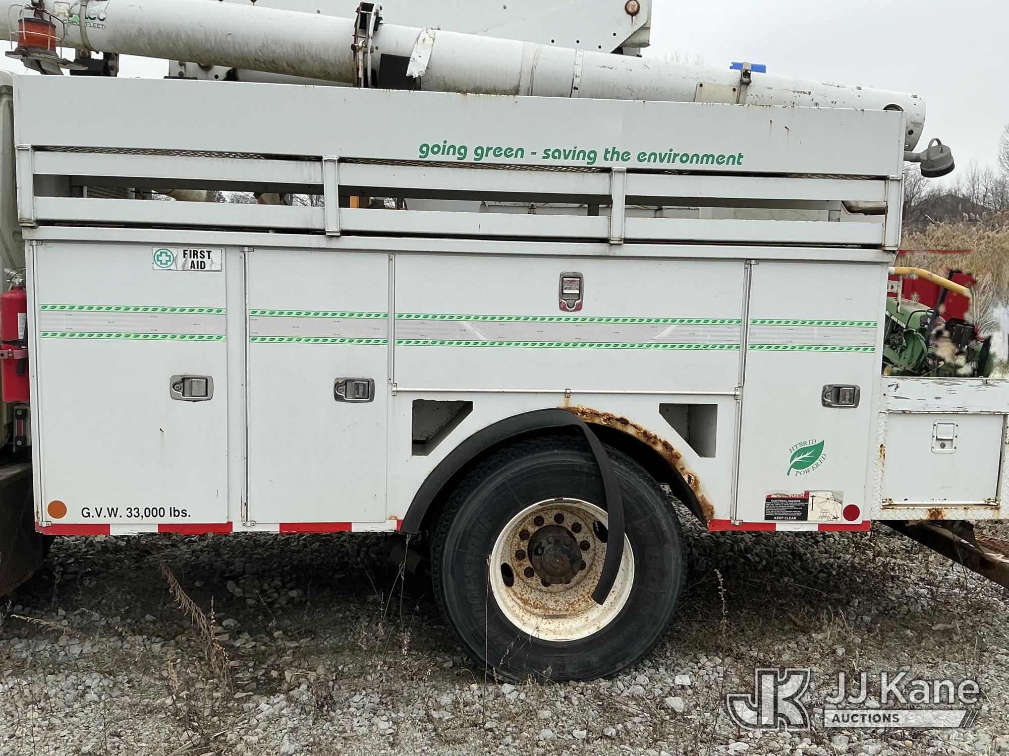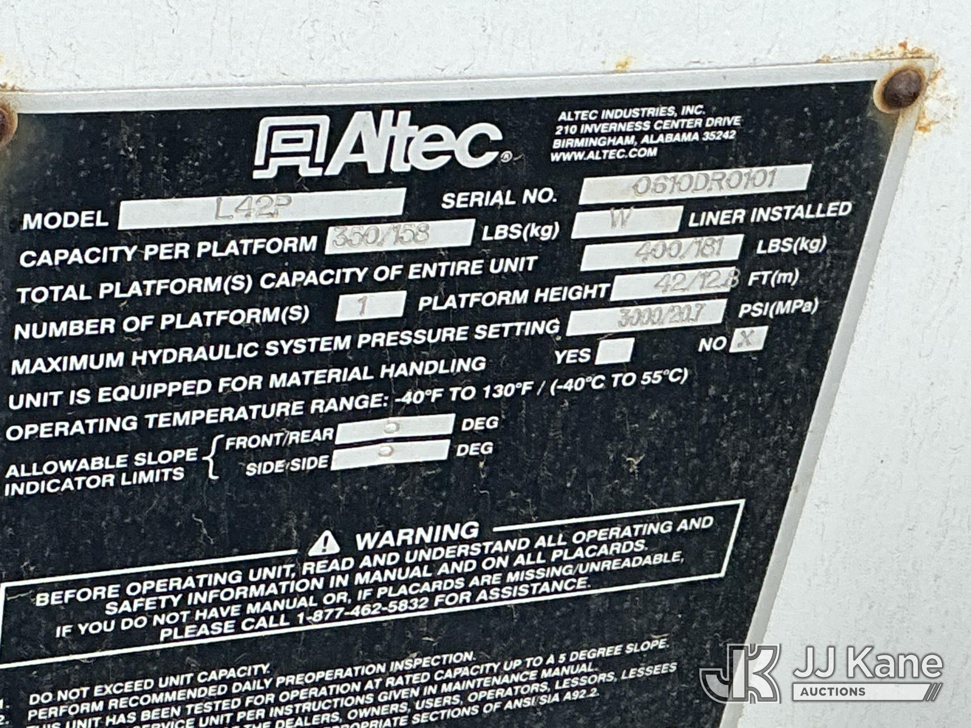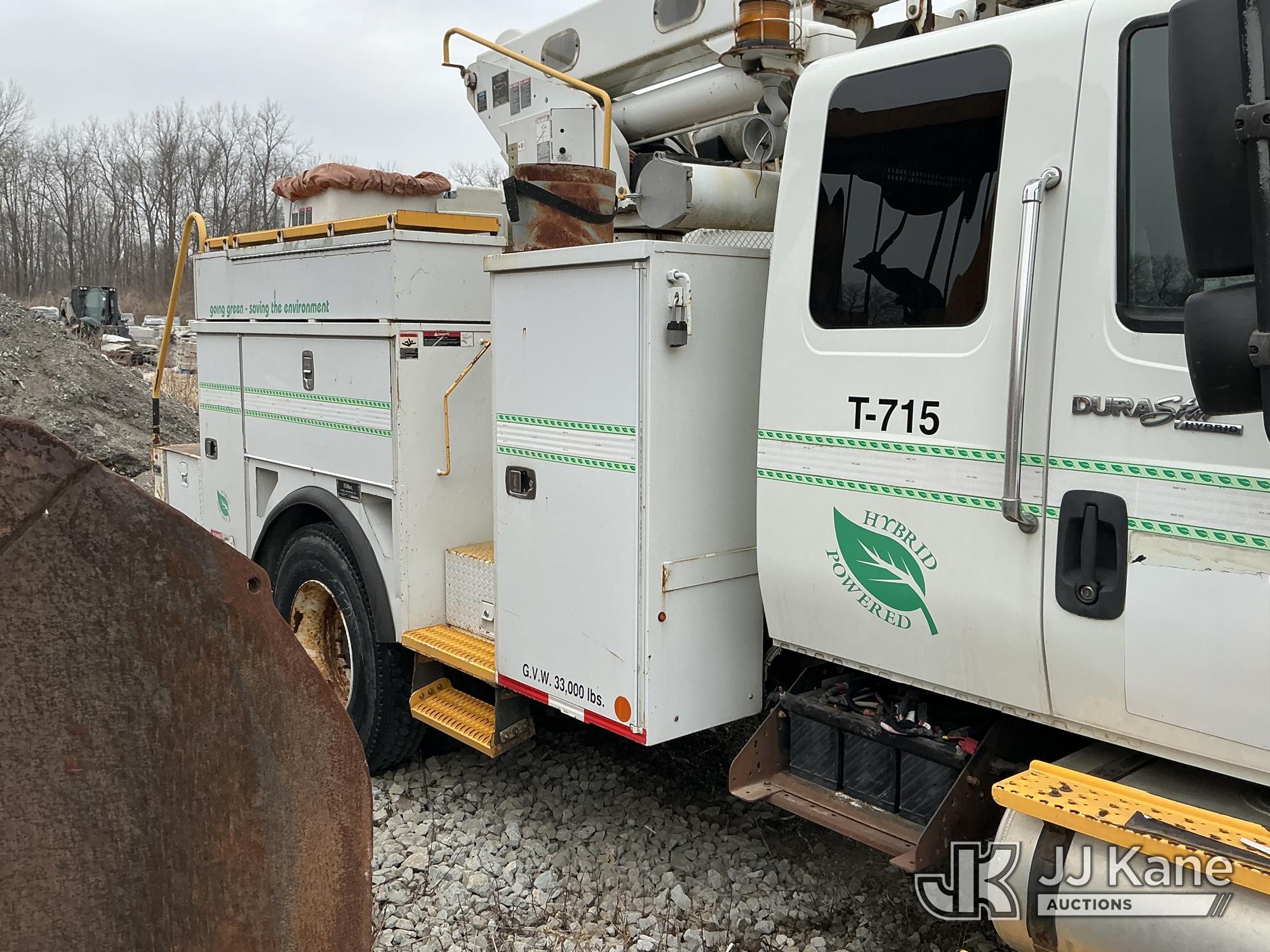 Altec L42P, 47 ft, Over-Center Bucket Truck s/n 0610DR0101, with single-man bucket & 2 hyd outriggers, rear mounted on 2011 International 4300 Extended-Cab Utility Truck, Maxxforce DT Diesel, 4X2, Auto, A/C, (100,218 miles) Hybrid Power System (Runs & Moves, Check Engine Light On) (Seller states this item has been removed from service: Upper Condition Unknown - Requires ANSI Inspection for repair/replacement requirements. The manufacturer has notified JJ Kane that this equipment is subject to an open recall. CSN 3090 Hydraulic Hose Replacement — Compliance A92.2 The equipment should not be operated until this is addressed. Buyer is responsible for reviewing the recall notice and contacting the manufacturer to schedule the recommended corrective actions. Associated costs may be covered by the manufacturer in some cases.) This is a Titled Item*