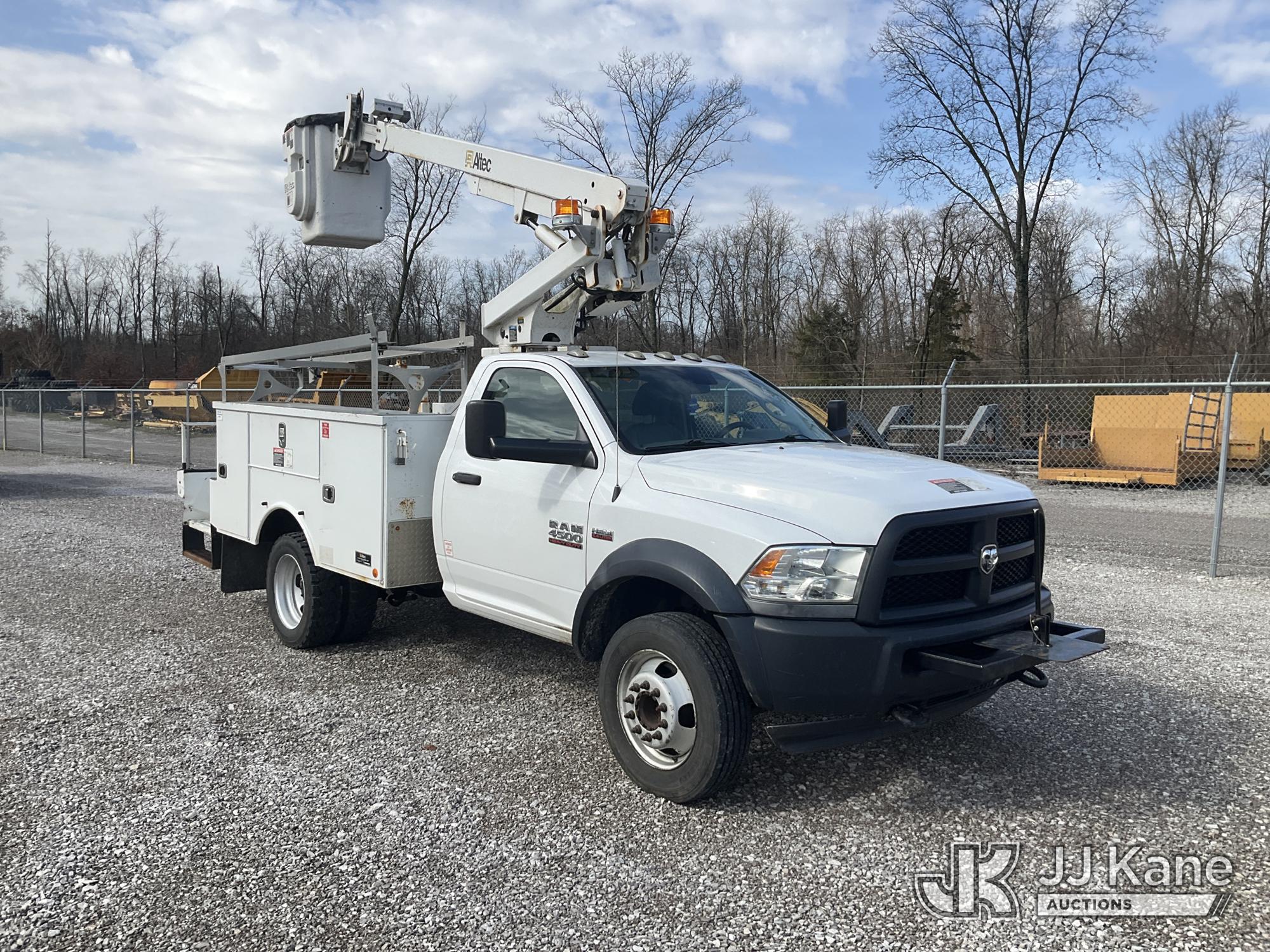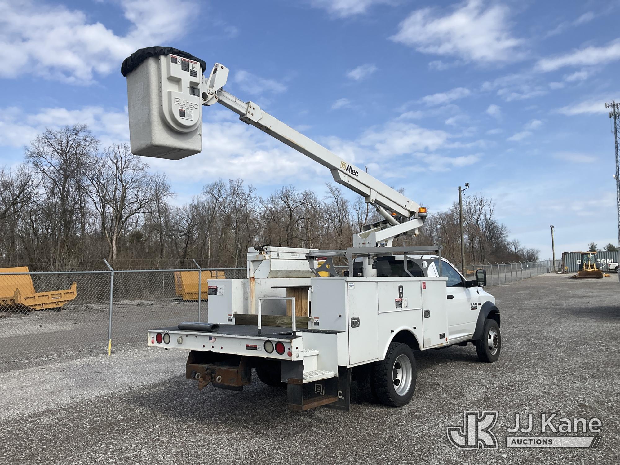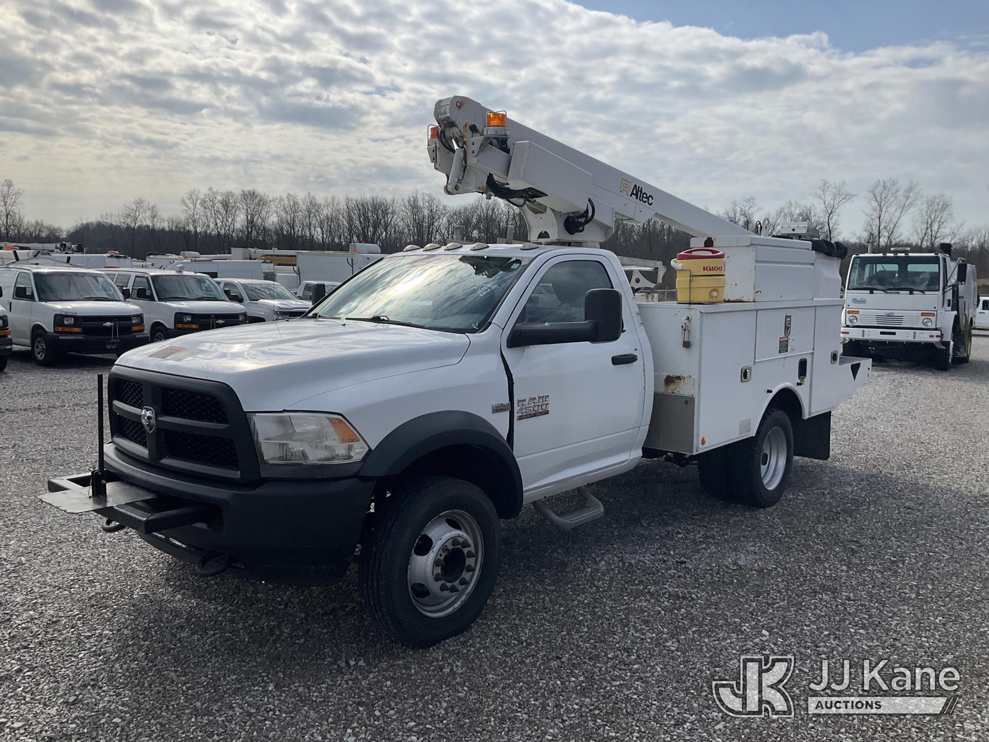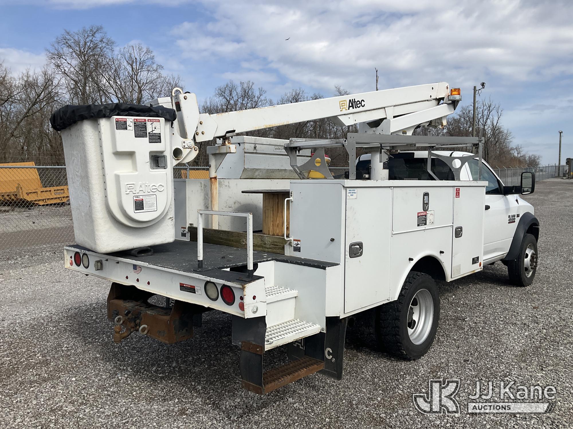 Altec AT200-A, 35 ft, Telescopic Non-Insulated Bucket Truck s/n 1016BV23200, with single-man bucket, mounted behind cab on 2016 RAM 4500 Service Truck, 6.4L V8 OHV 16V Gas, RWD, Auto, A/C, (162,096 miles) (Runs, Moves & Upper Operates) (Check Engine Light On, Rust & Body Damage, Exhaust Leak) (The manufacturer has notified JJ Kane that this equipment is subject to an open recall. CSN 855 Fuel Line and Brake Line Inspection The equipment should not be operated until this is addressed. Buyer is responsible for reviewing the recall notice and contacting the manufacturer to schedule the recommended corrective actions. Associated costs may be covered by the manufacturer in some cases.) This is a Titled Item*