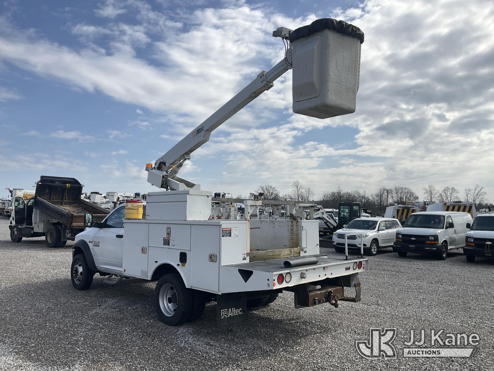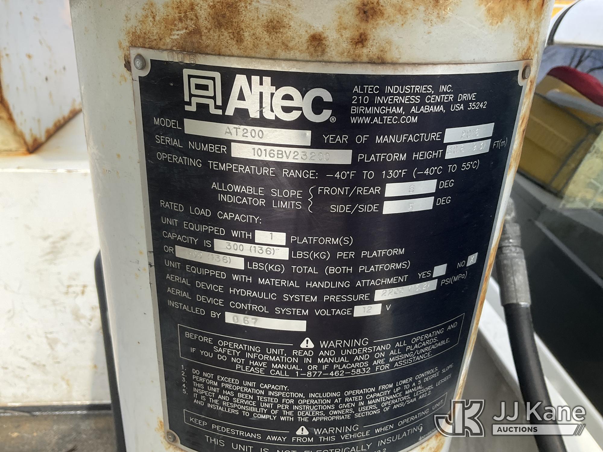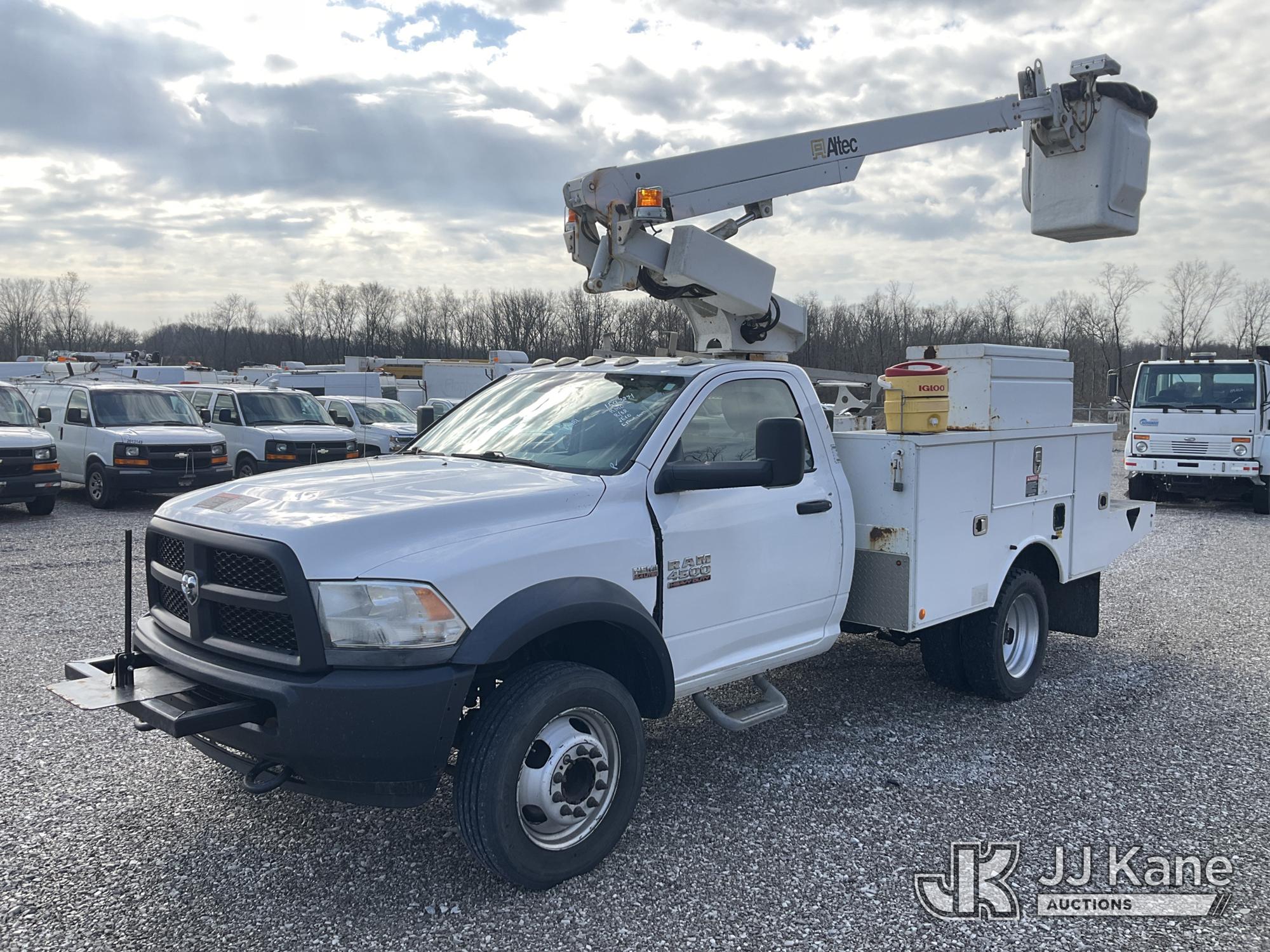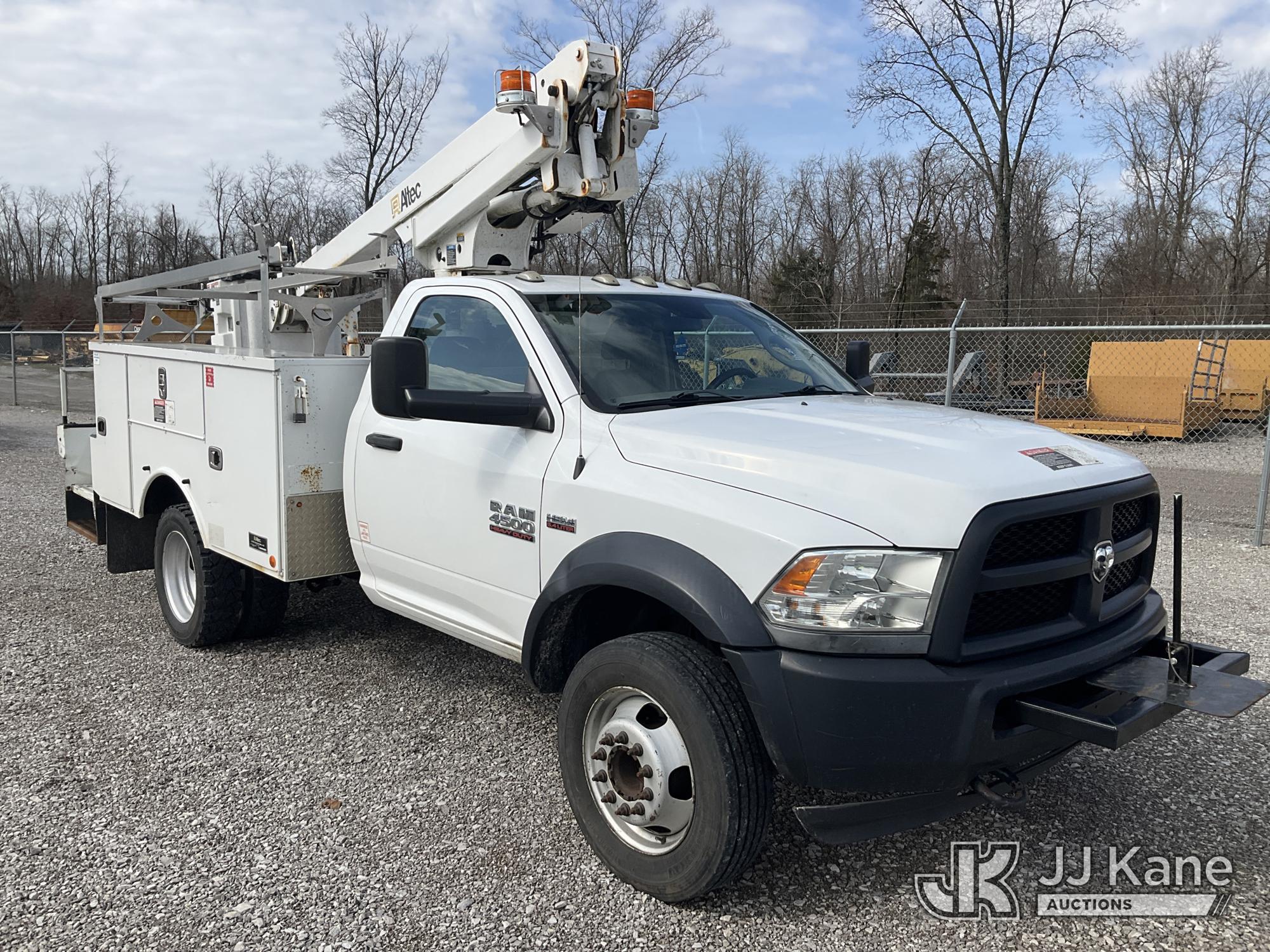 Altec AT200-A, 35 ft, Telescopic Non-Insulated Bucket Truck s/n 1016BV23200, with single-man bucket, mounted behind cab on 2016 RAM 4500 Service Truck, 6.4L V8 OHV 16V Gas, RWD, Auto, A/C, (162,096 miles) (Runs, Moves & Upper Operates) (Check Engine Light On, Rust & Body Damage, Exhaust Leak) (The manufacturer has notified JJ Kane that this equipment is subject to an open recall. CSN 855 Fuel Line and Brake Line Inspection The equipment should not be operated until this is addressed. Buyer is responsible for reviewing the recall notice and contacting the manufacturer to schedule the recommended corrective actions. Associated costs may be covered by the manufacturer in some cases.) This is a Titled Item*