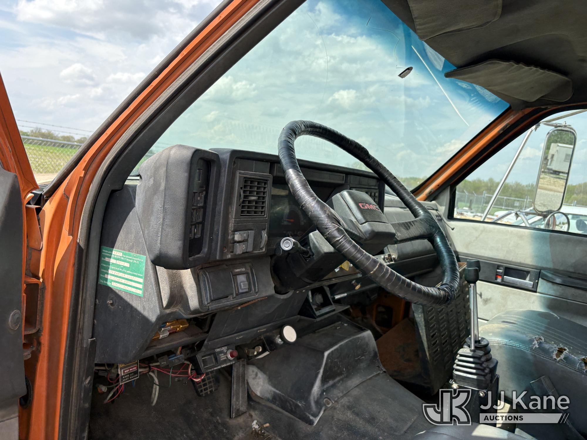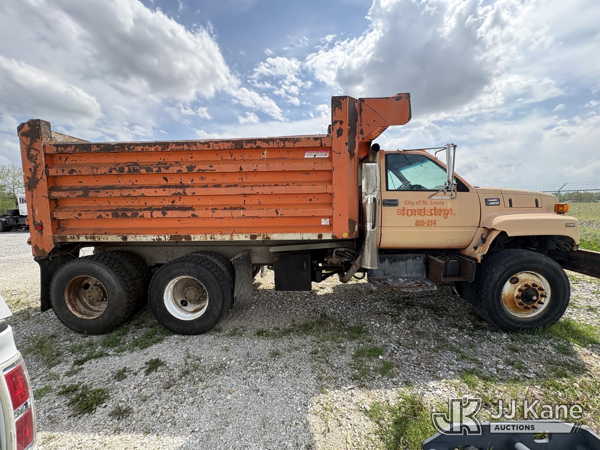 2000 GMC C7500 T/A Dump Truck, s/n 1GDT7H4C3YJ509772, 7.2L 6X4, DIESEL, Auto, A/C, (Exempt from Odometer Disclosure - Reads 162,958 miles) ((Runs & Does Not Move) (Transmission Non-Operational, PTO Non-Operational, Dump Condition Unknown, Dash Warning Indicators On, Brake System Non-Operational, Corrosion, Exterior Defects-See Pictures, Interior Defects-See Pictures)) This is a Titled Item*