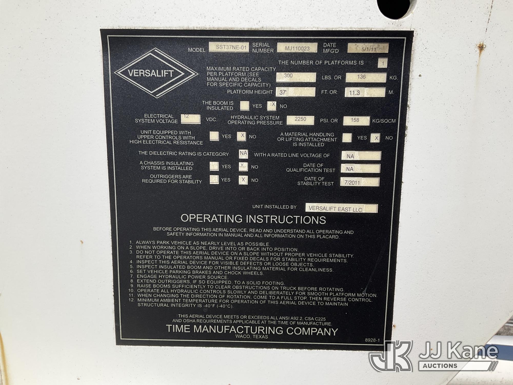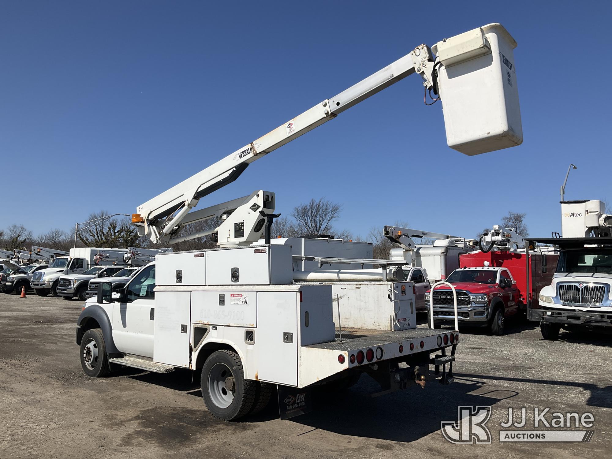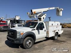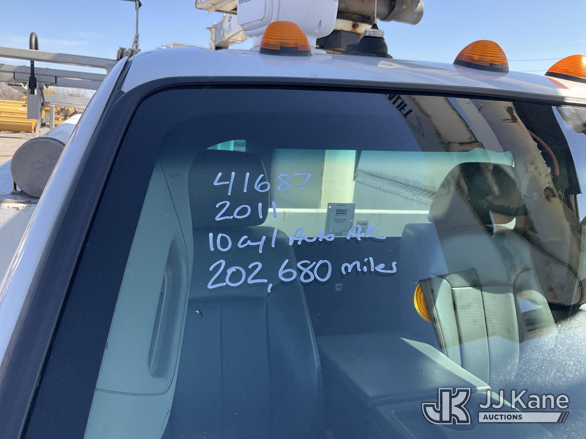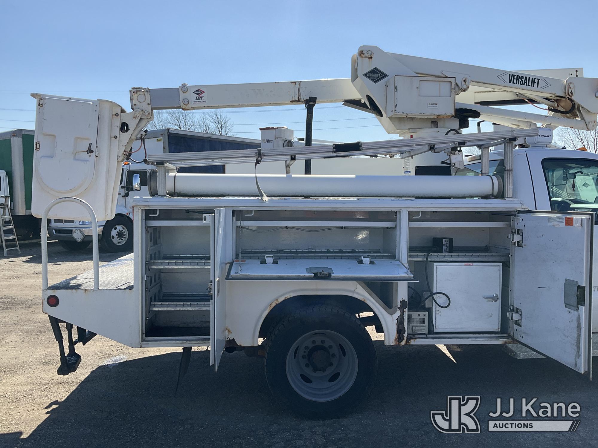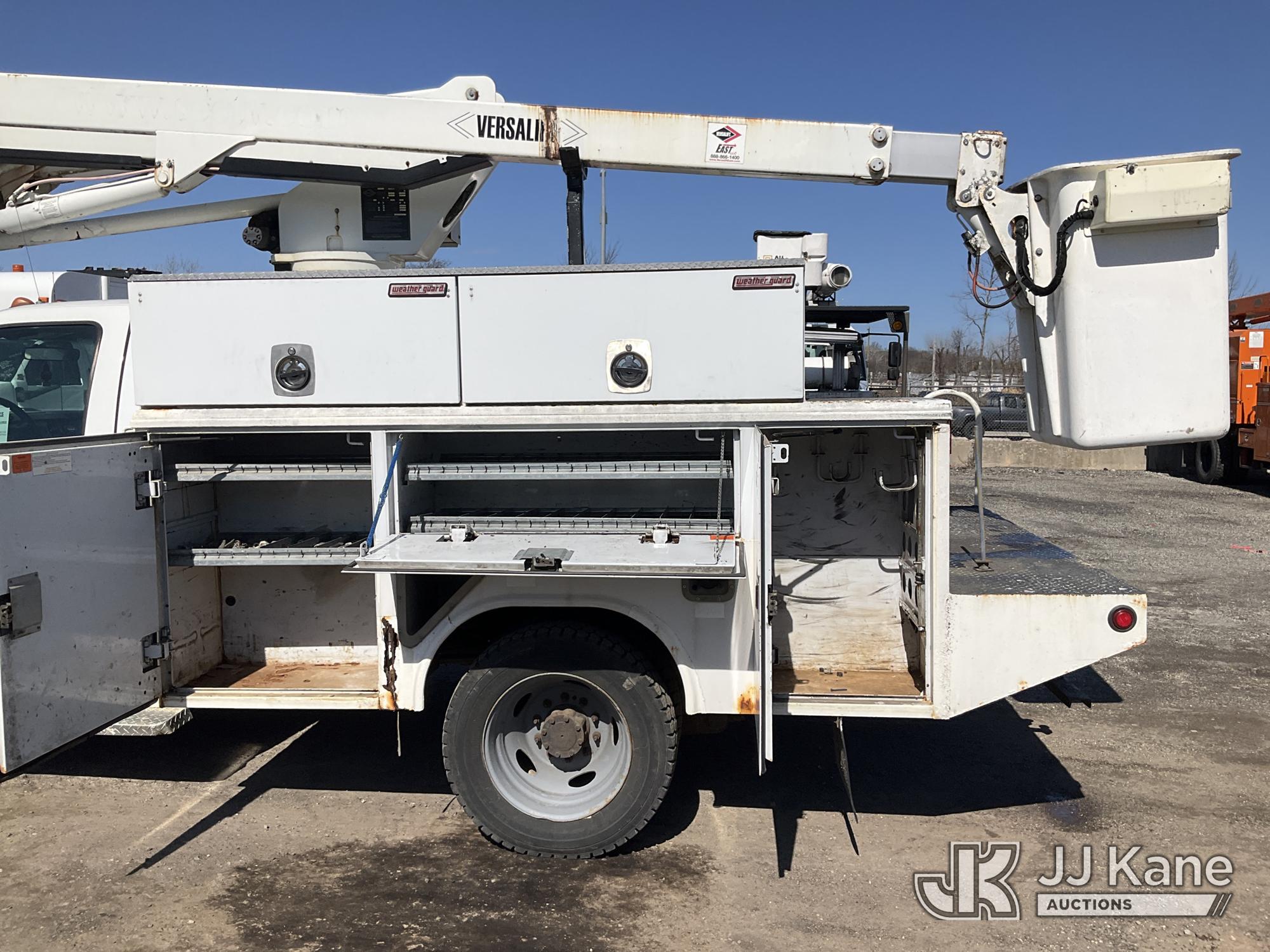 Versalift SST37NE01, 42 ft, Articulating & Telescopic Non-Insulated Bucket Truck s/n MJ110023, with single-man bucket, mounted behind cab on 2011 Ford F450 2WD Service Truck, 10-cyl gas, Auto, A/C, (202,680 miles) (Runs, Moves & Upper Operates, Engine Oil Leak, Rust Hole In Service Body) This is a Titled Item*