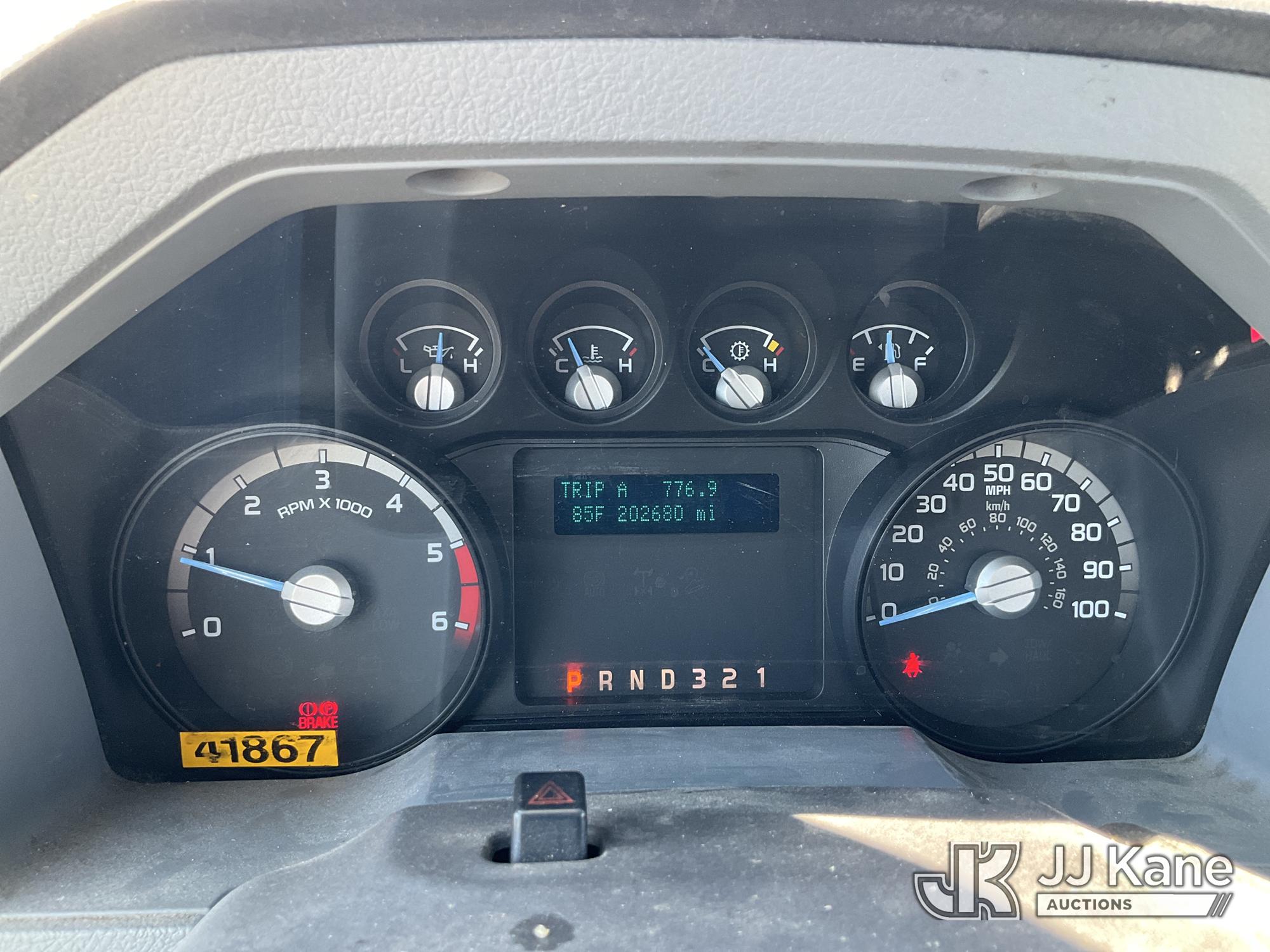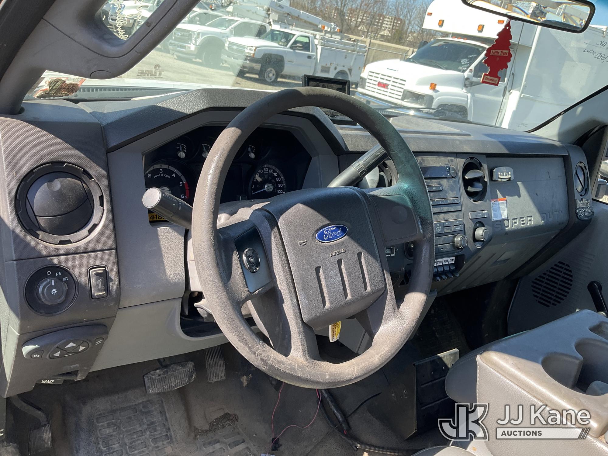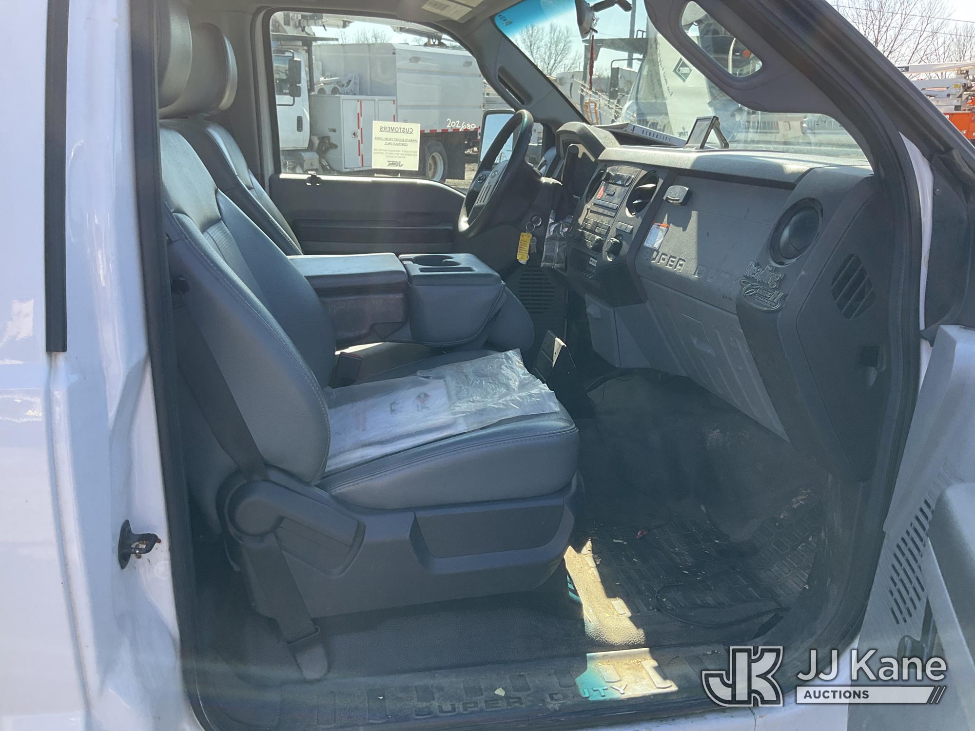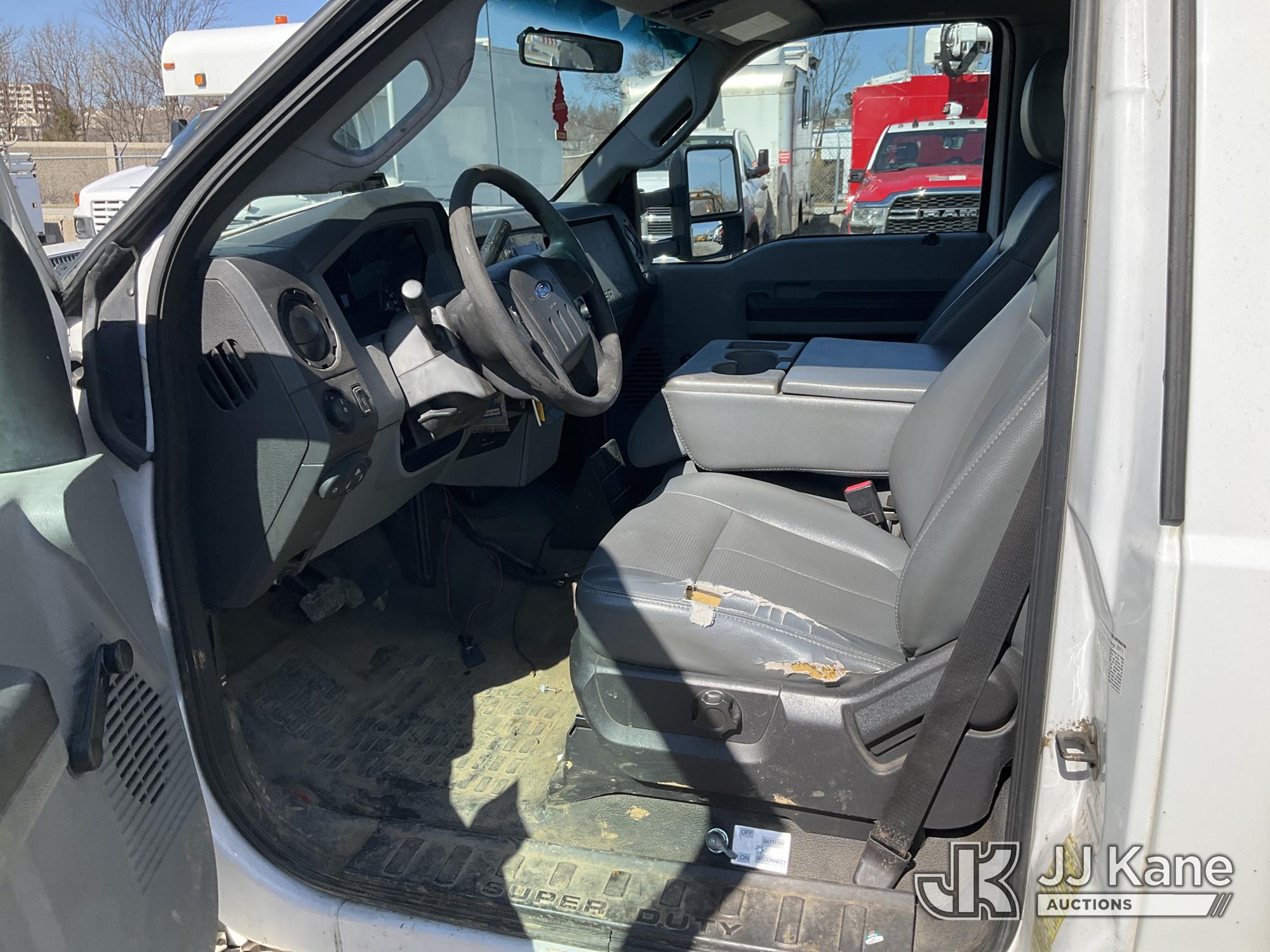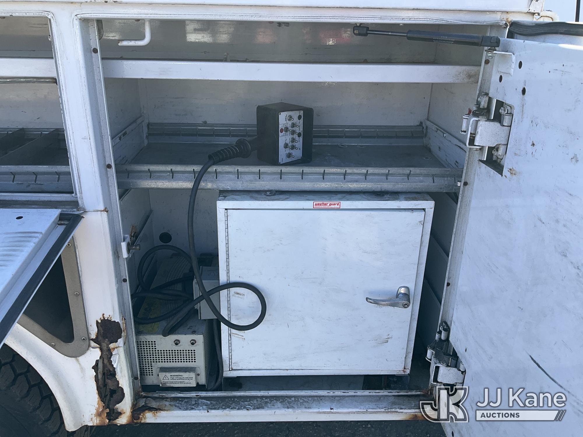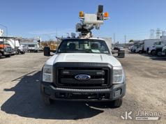Versalift SST37NE01, 42 ft, Articulating & Telescopic Non-Insulated Bucket Truck s/n MJ110023, with single-man bucket, mounted behind cab on 2011 Ford F450 2WD Service Truck, 10-cyl gas, Auto, A/C, (202,680 miles) (Runs, Moves & Upper Operates, Engine Oil Leak, Rust Hole In Service Body) This is a Titled Item*