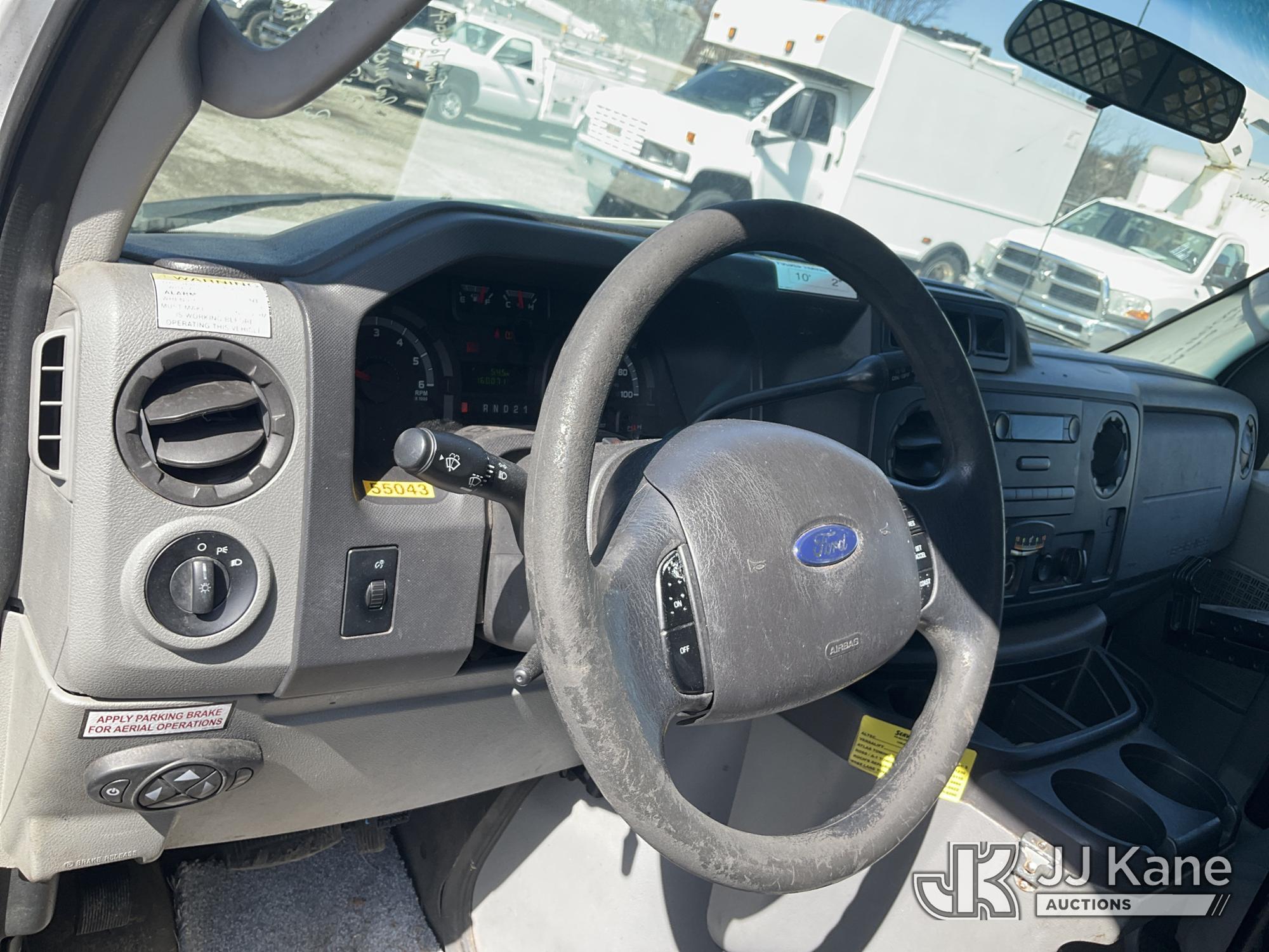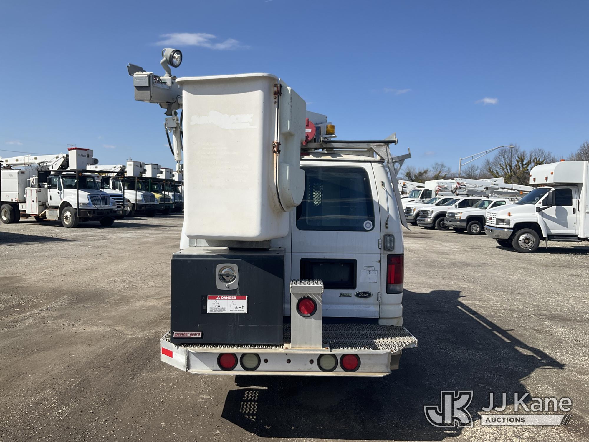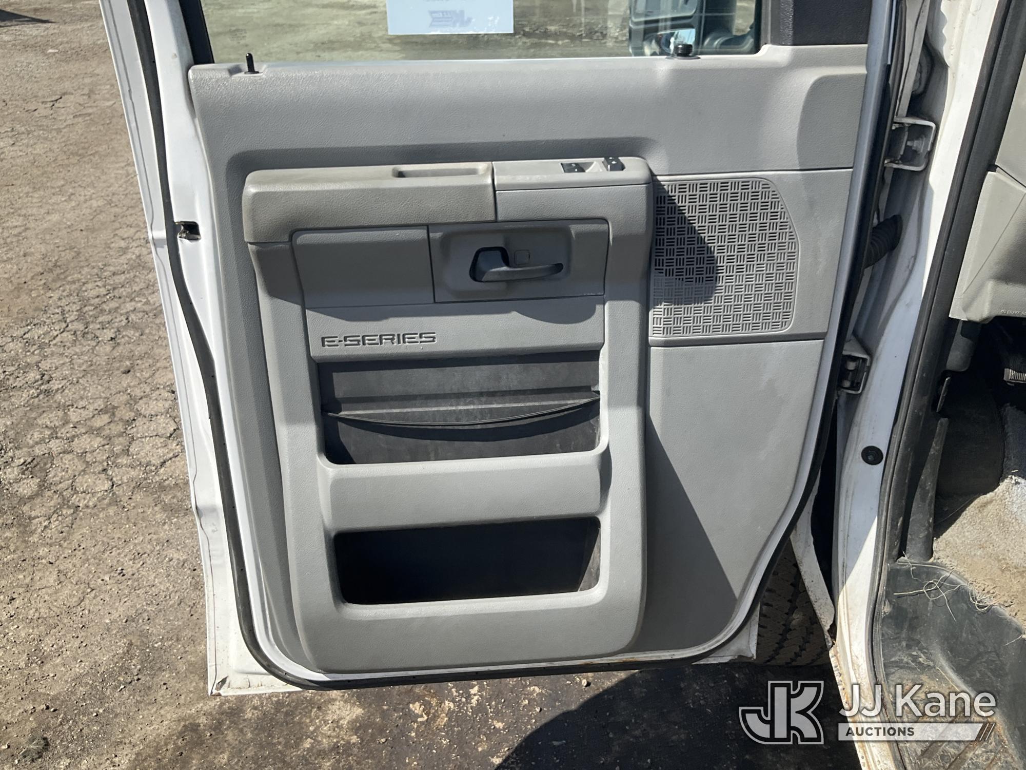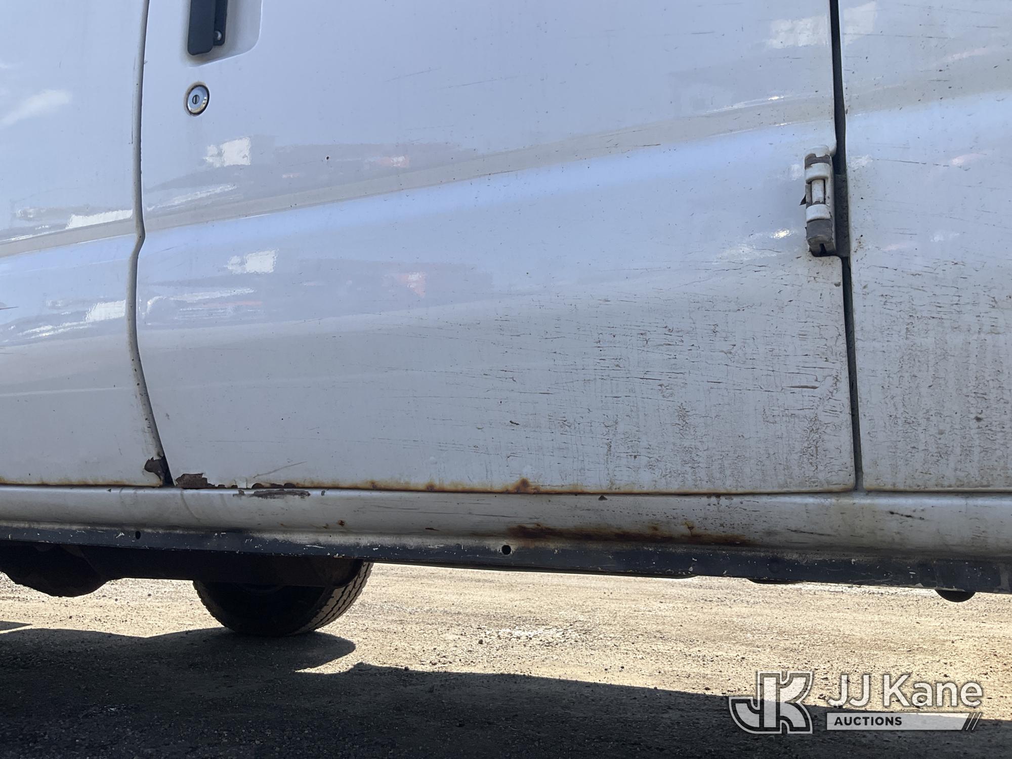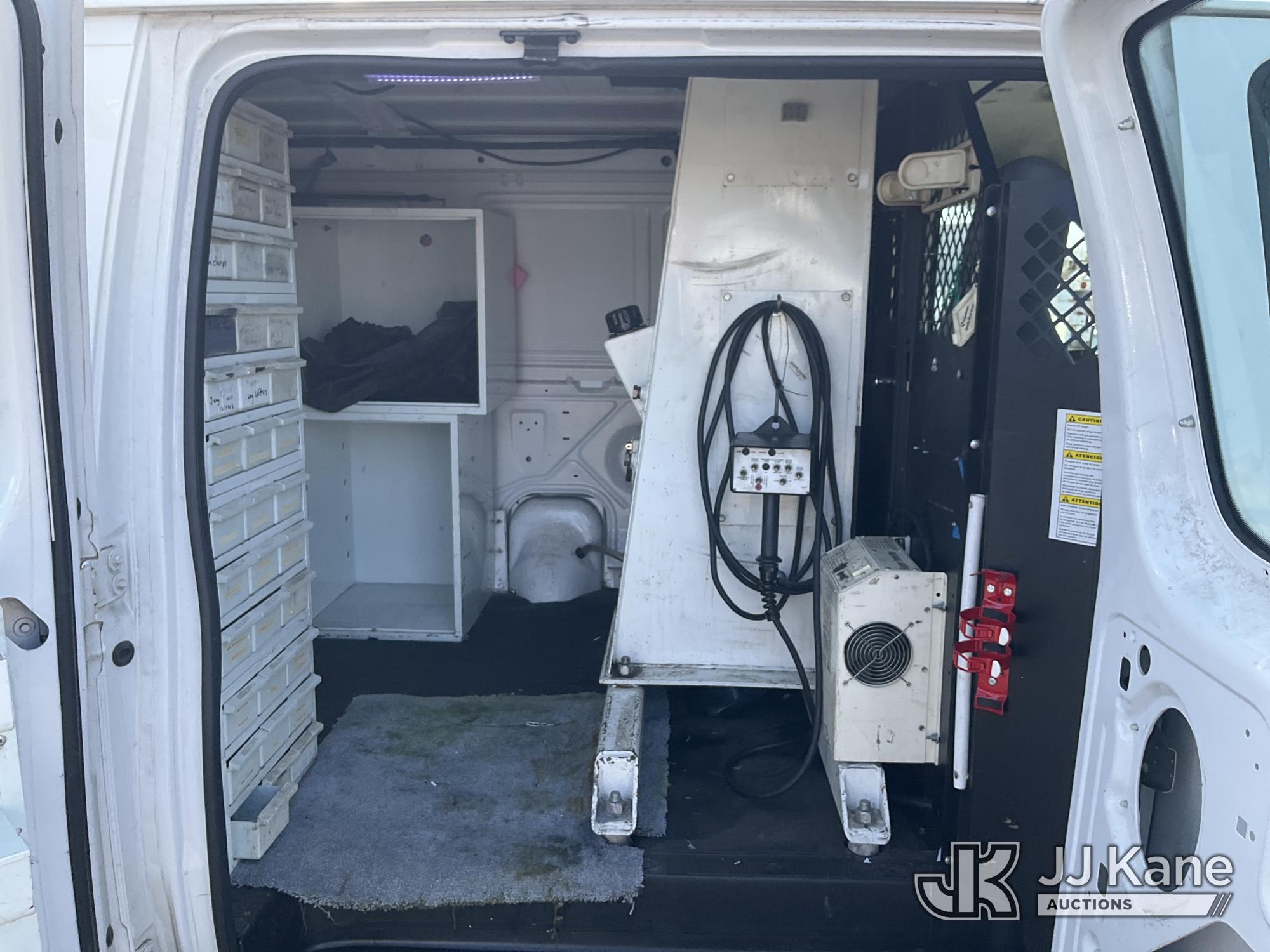 Versalift VANTEL29N-01, 34 ft, Telescopic Non-Insulated Bucket Van s/n BT100246, with single-man bucket, Pendant Control, mounted on 2011 Ford E350 Cargo Van, 8-cyl gas, Auto, A/C, (160,071 miles) (Runs Rough, Moves & Upper Operates, Jump To Start, Rust On Fenders & Rockers) This is a Titled Item*