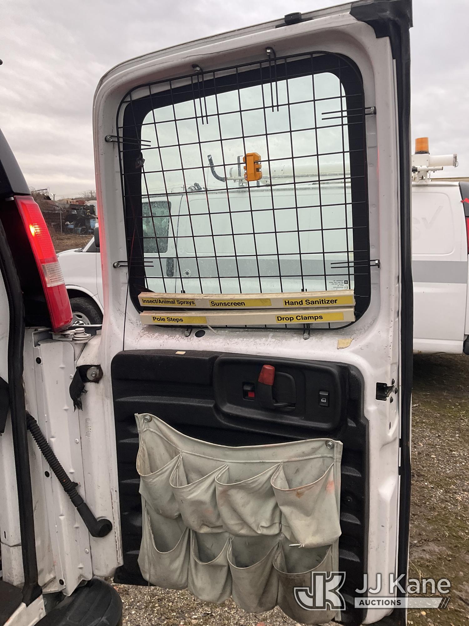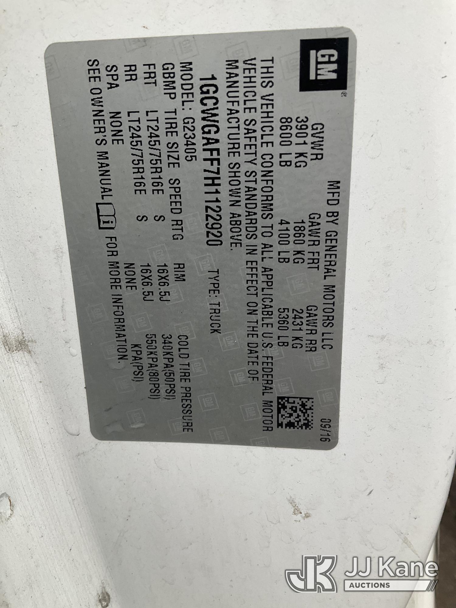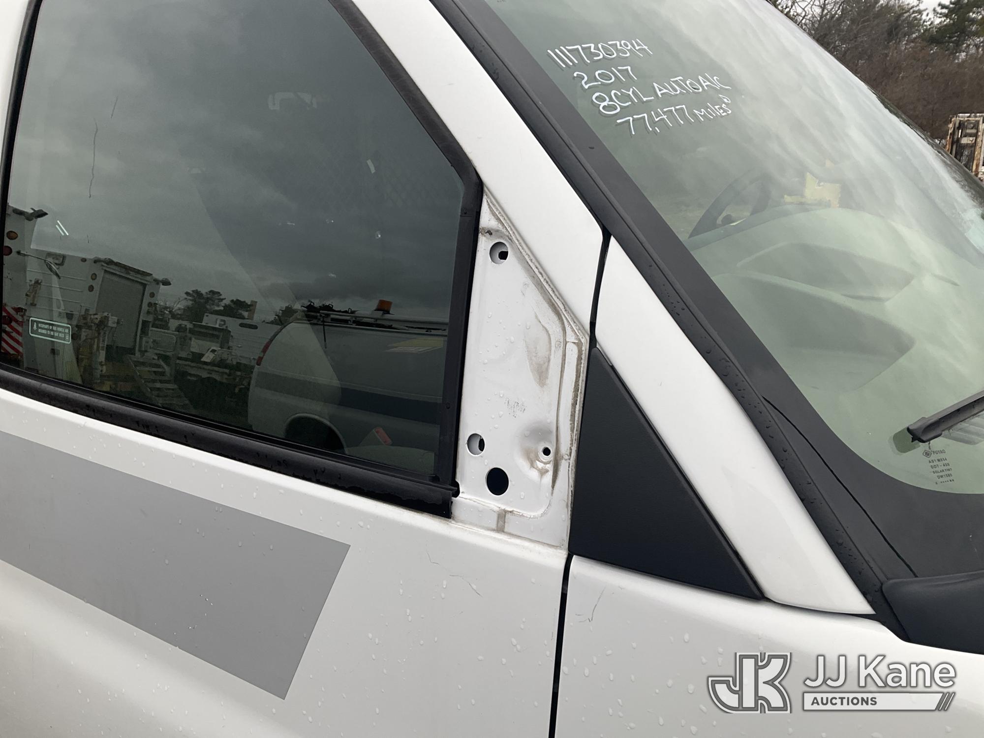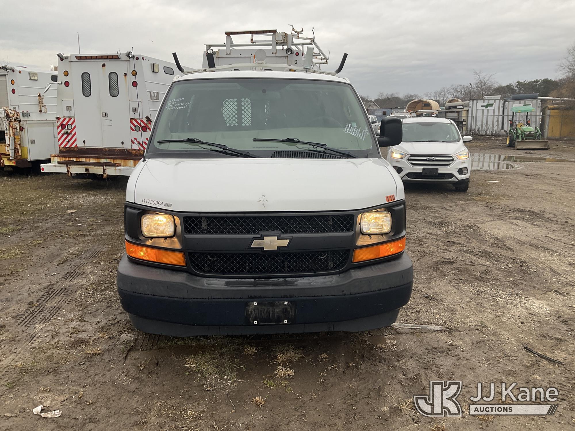 2017 Chevrolet Express G2500 Cargo Van, 8-cyl gas, Auto, A/C, (77,477 miles) (Jump To Start, Runs, Bad Trans, No Forward, No Drivers Seat, Door Panels Missing, Body Damage at Right Side Cargo Door, Service Air Bag Warning Must Tow, Buyer Must Load) (Removal is by Appointment Only, Buyer MUST make a appointment prior to picking up, Buyer/Transporter Must have PAID IN FULL RELEASE. No onsite assistance available, Please Come prepared.) This is a Titled Item*