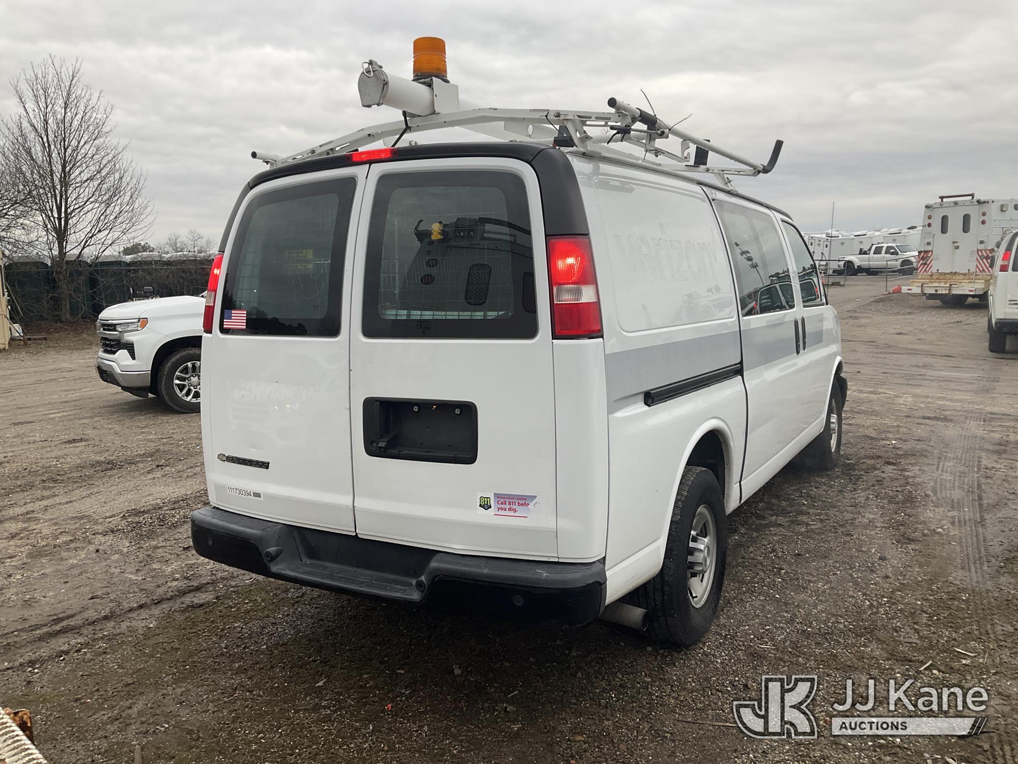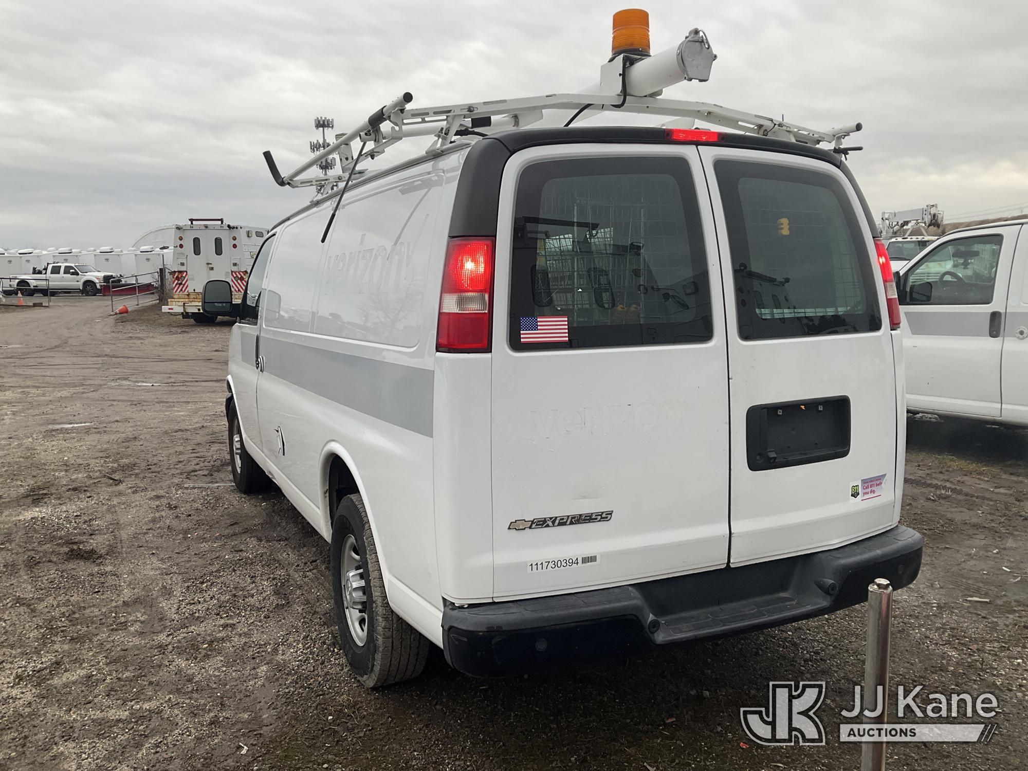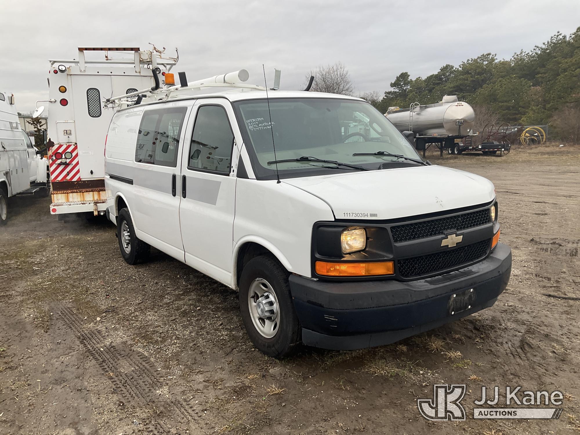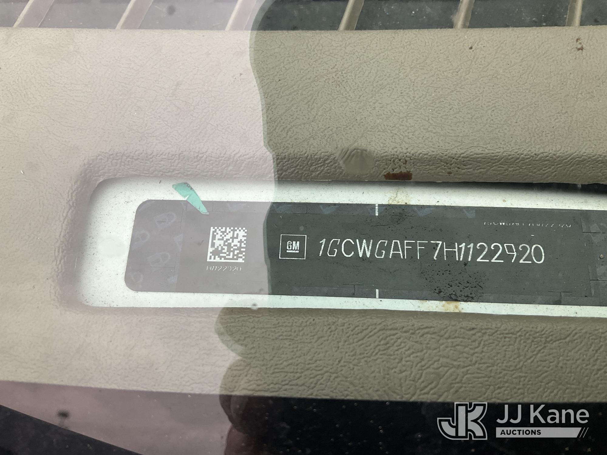 2017 Chevrolet Express G2500 Cargo Van, 8-cyl gas, Auto, A/C, (77,477 miles) (Jump To Start, Runs, Bad Trans, No Forward, No Drivers Seat, Door Panels Missing, Body Damage at Right Side Cargo Door, Service Air Bag Warning Must Tow, Buyer Must Load) (Removal is by Appointment Only, Buyer MUST make a appointment prior to picking up, Buyer/Transporter Must have PAID IN FULL RELEASE. No onsite assistance available, Please Come prepared.) This is a Titled Item*