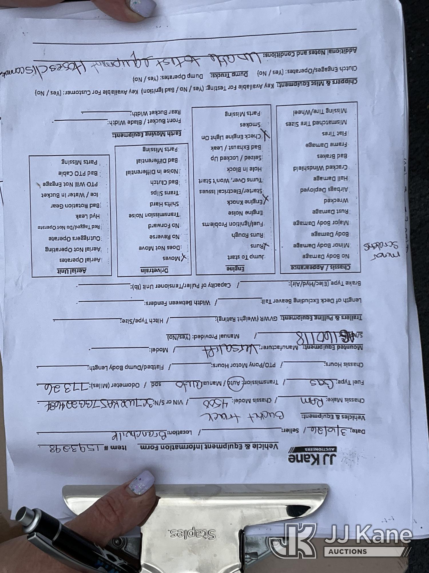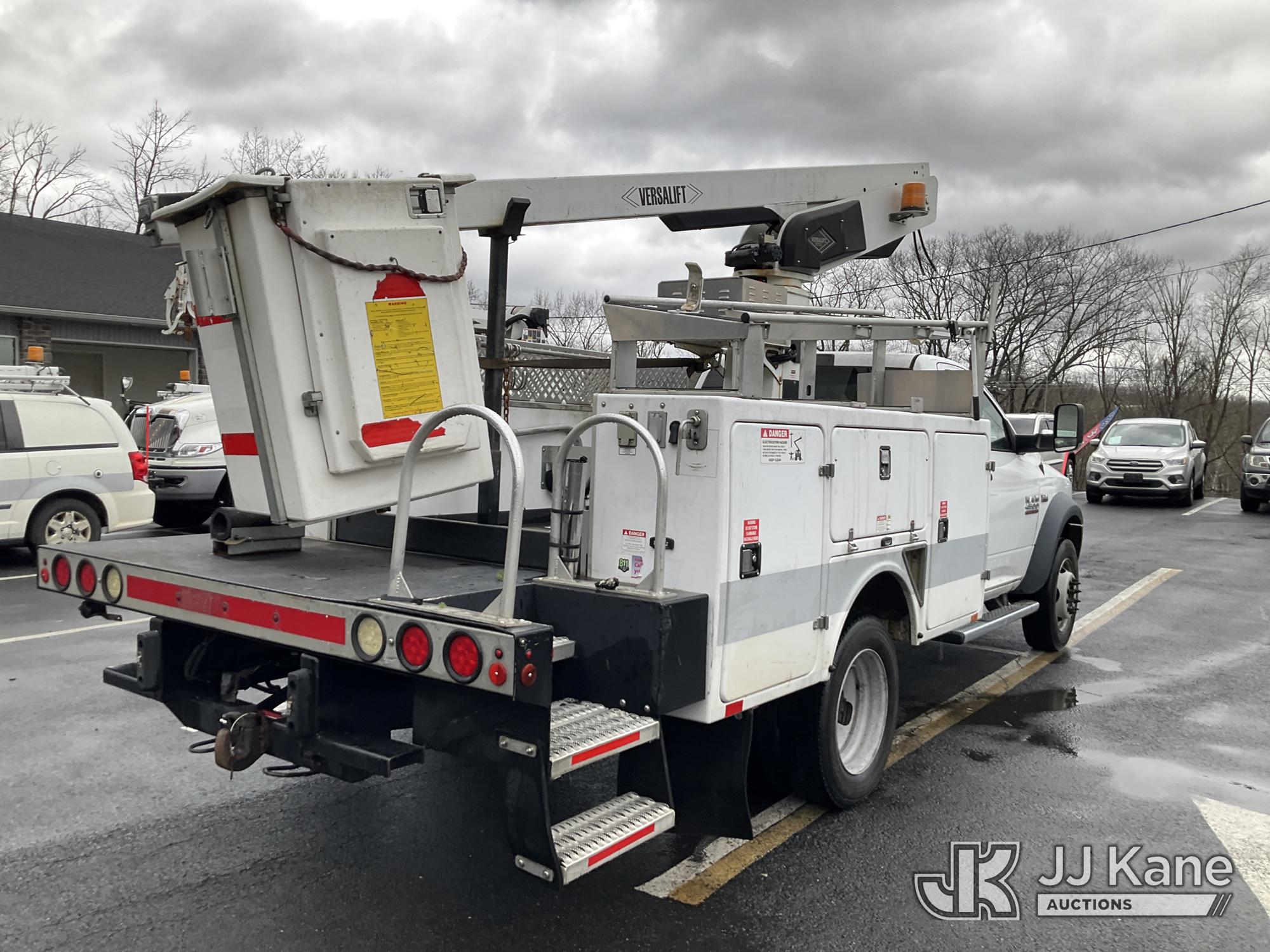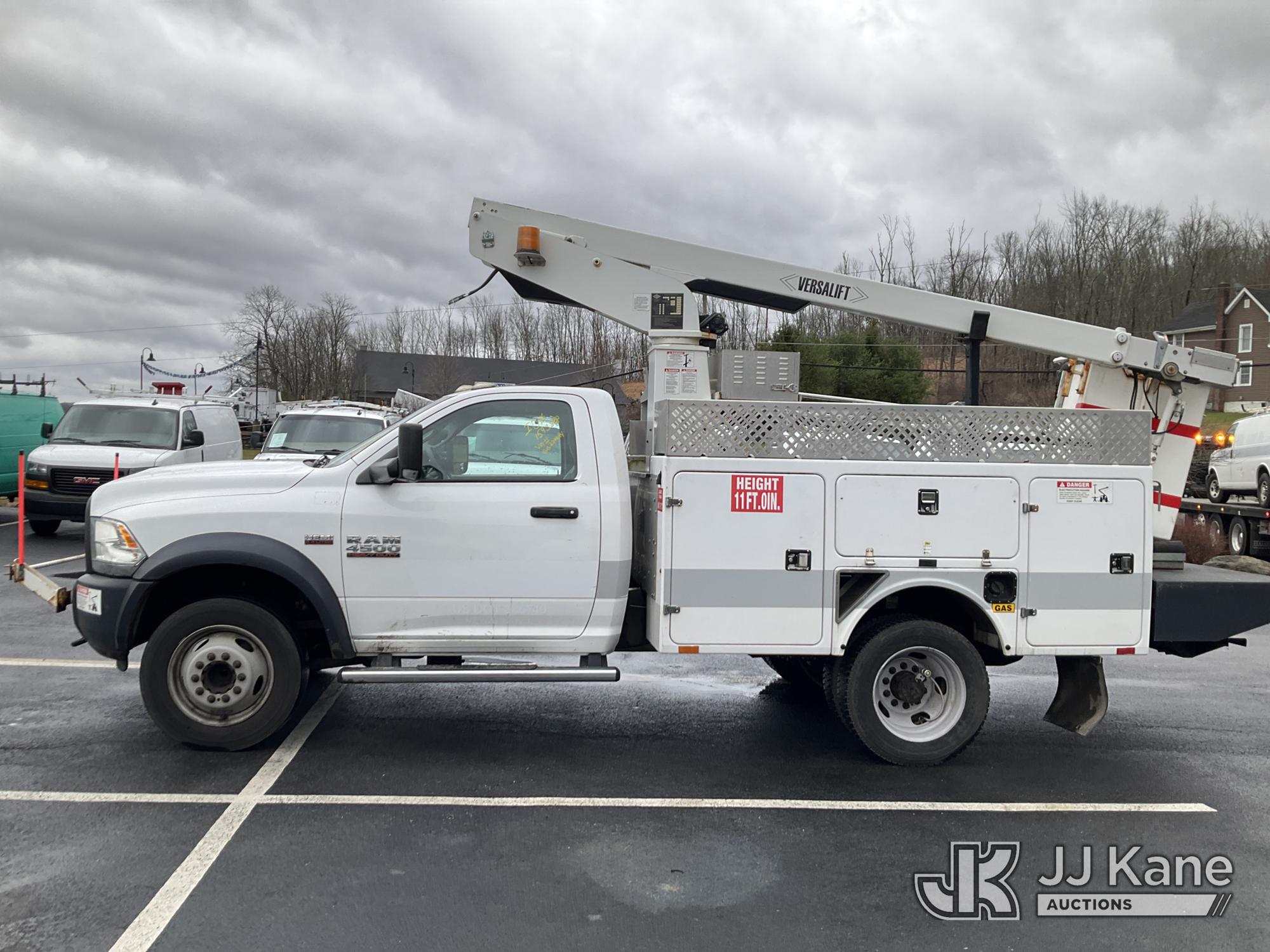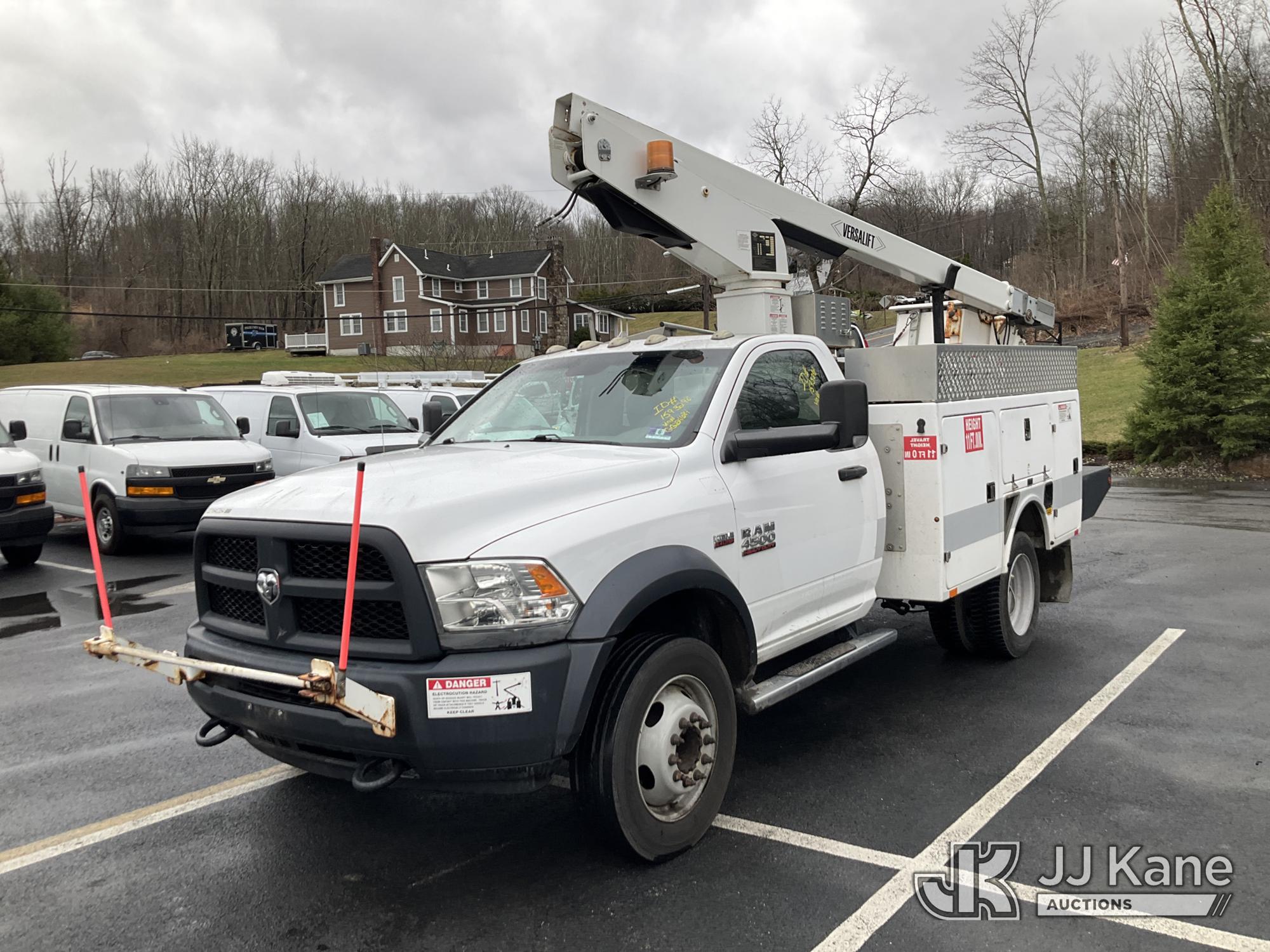 Versalift TEL29NE03, 34 ft, Telescopic Non-Insulated Bucket Truck s/n AG160118, with Single Man Bucket, mounted behind cab on 2016 RAM 4500 Service Truck, 8-cyl gas, Auto, A/C, (77,327 miles) (Runs & Moves, Upper Hydraulic Lines Disconnected, Upper Not Operating, Condition Unknown) (Removal is by Appointment Only, Buyer MUST make a appointment prior to picking up, Buyer/Transporter Must have PAID IN FULL RELEASE. No onsite assistance available, Please Come prepared.) This is a Titled Item*