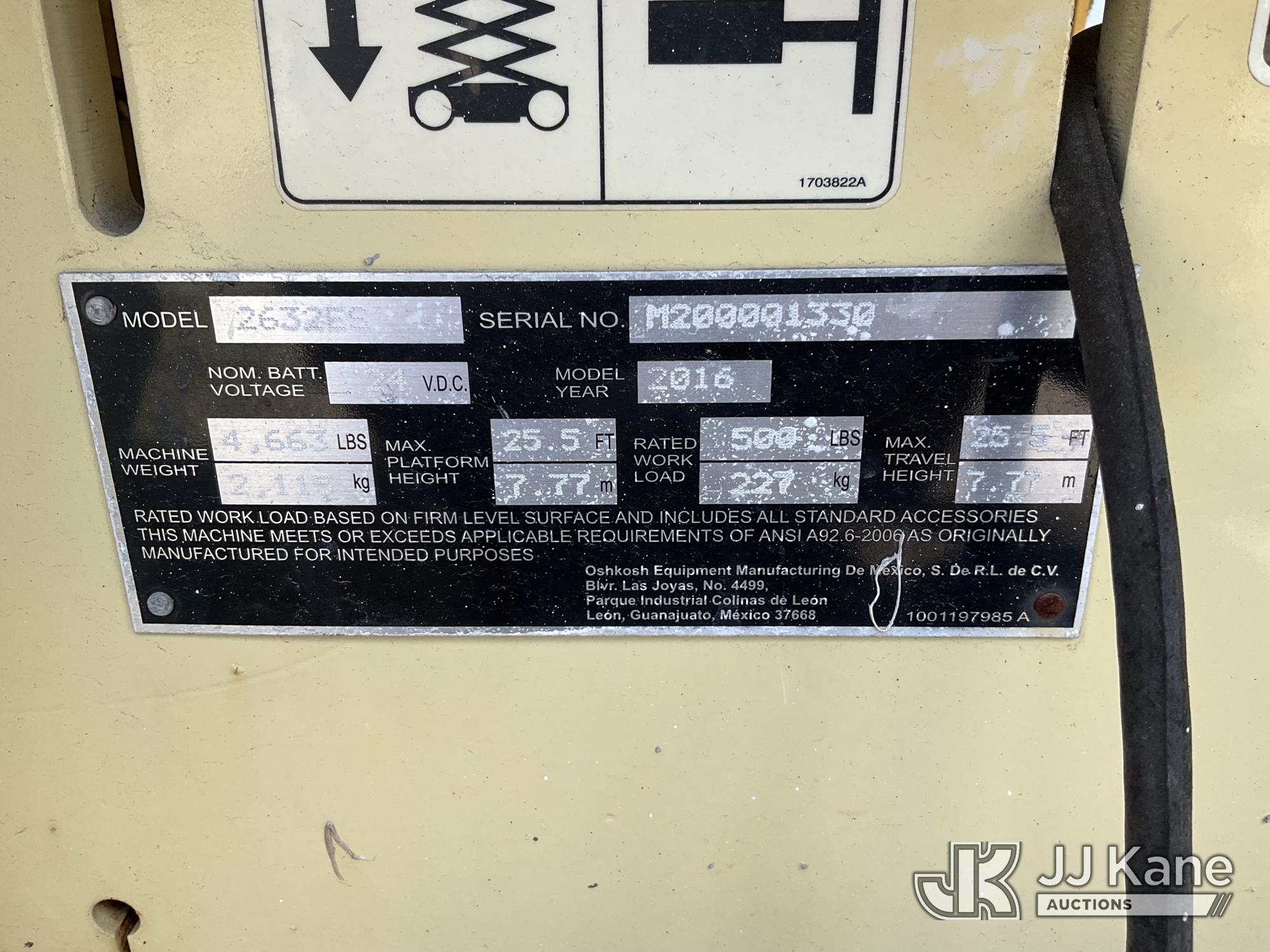 2016 JLG 2632ES Manlift, s/n M200001330, electric, (Not Running, Condition Unknown) (Reads 220 hours)*