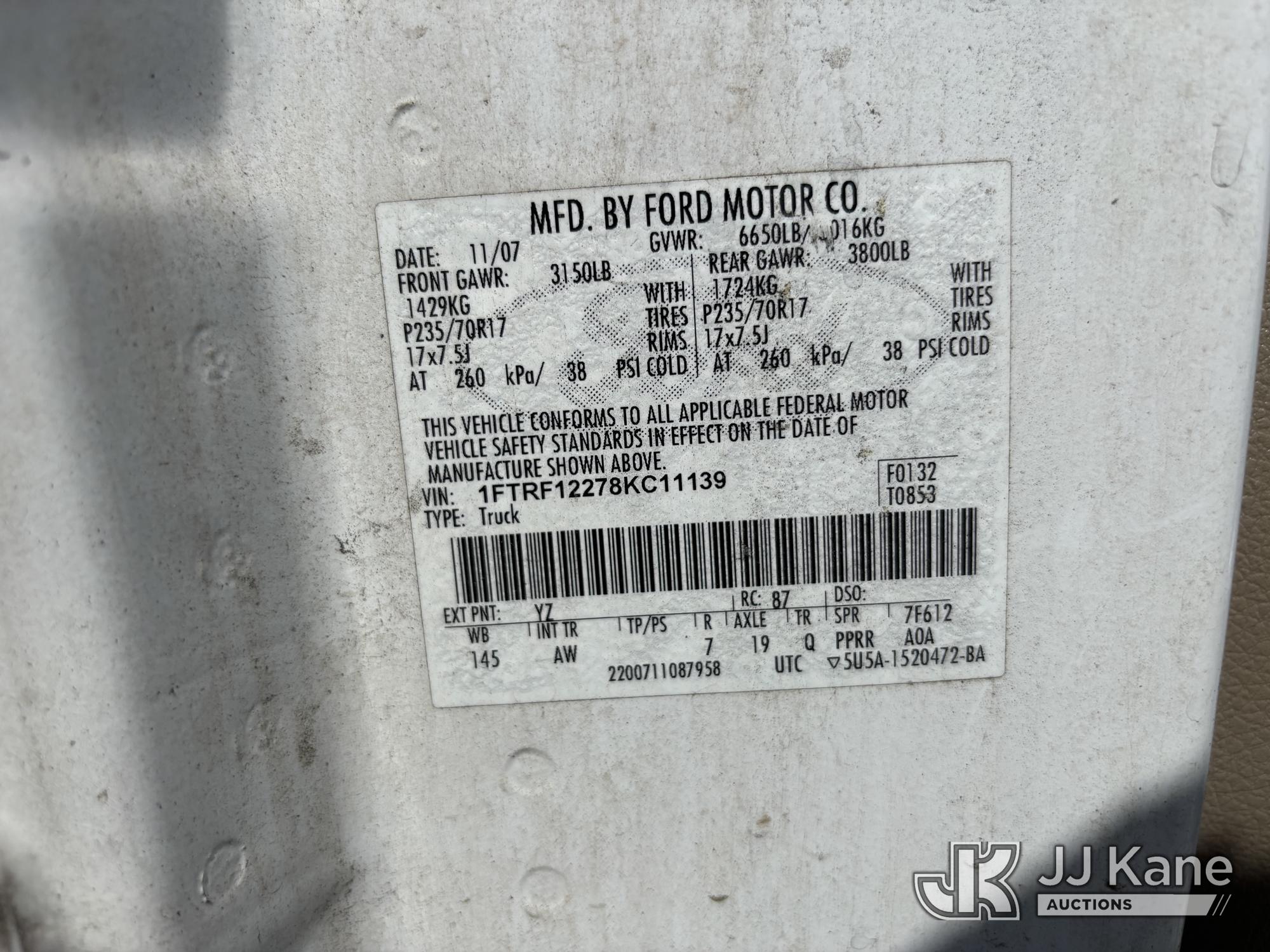 2008 Ford F150 Pickup Truck, 4.2L V6 OHV 12V Gas, RWD, Auto, A/C, (108,736 miles) (Runs & Moves) (Rough Idle, Body & Paint Damage) (FL Residents Purchasing Titled Items – tax, title & registration fees will be collected at the maximum rate of $400.00 under 25,999 and $800.00 for Over 26,000 and $250.00 trailers – Proof of insurance is mandatory; Out of State Residents Purchasing Title Items – tax will be collected based upon your state rate.) This is a Titled Item*