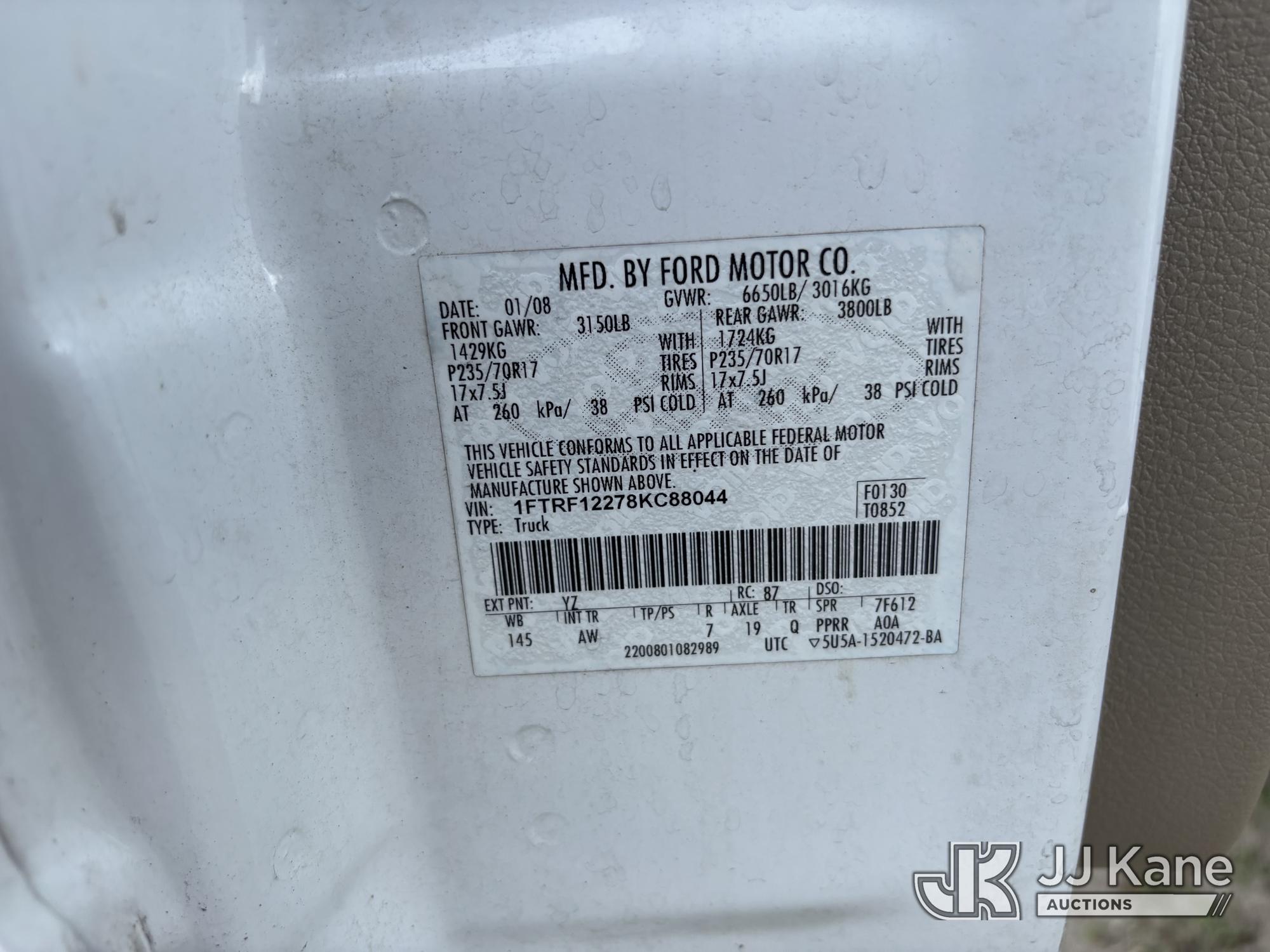 2008 Ford F-150 Pickup Truck, 6-cyl gas, RWD, Auto, A/C, (75,087 miles) (Runs & Moves) (Body & Paint Damage, Windshield Chipped) (FL Residents Purchasing Titled Items – tax, title & registration fees will be collected at the maximum rate of $400.00 under 25,999 and $800.00 for Over 26,000 and $250.00 trailers – Proof of insurance is mandatory; Out of State Residents Purchasing Title Items – tax will be collected based upon your state rate.) This is a Titled Item*