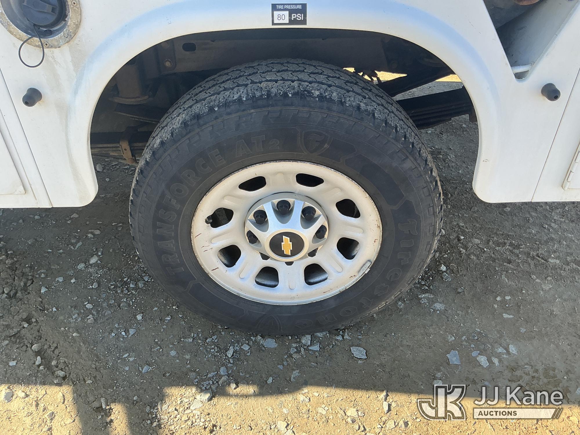 2012 Chevrolet Silverado 3500HD Enclosed Service Truck, 8-cyl gas, Auto, A/C, (205,527 miles) Element Lease Return (Runs & Moves) (Check Engine Light On, Cracked Windshield, Paint Damage ) This is a Titled Item*