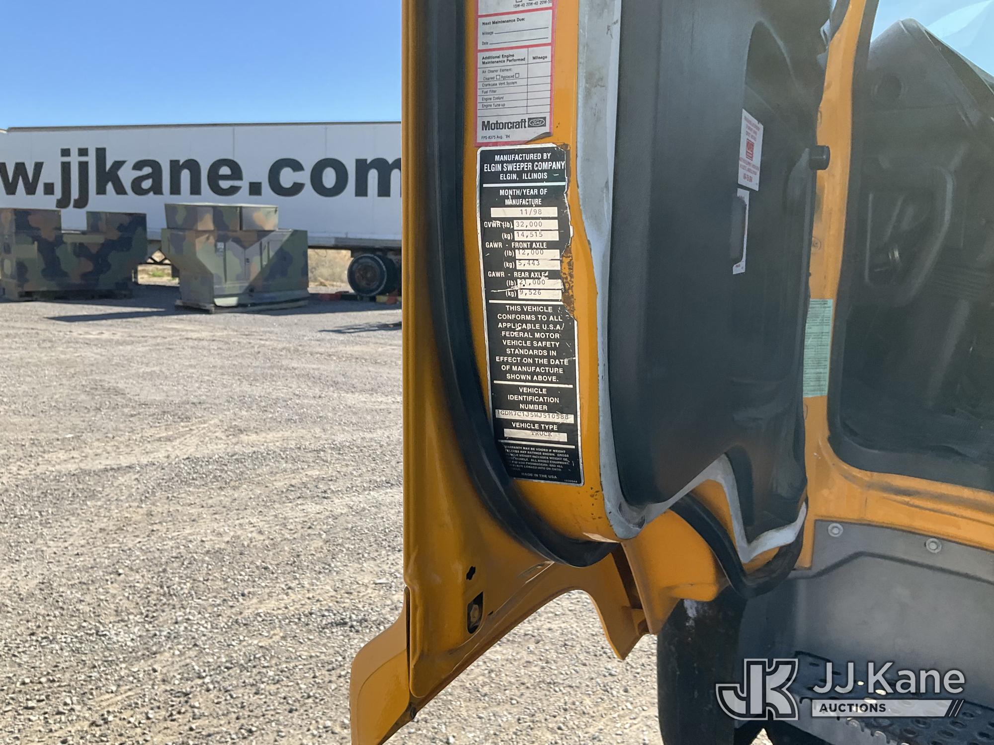 1998 GMC T7500 Sweeper, 6.6L diesel, 4X2, Auto, A/C, with Elgin Whirlwind Series L S/N L2638D 11/98, (Exempt from Odometer Disclosure - Reads 23,074 miles) (Runs & Moves, Operates) (Reads 3,239 hours) This is a Titled Item*