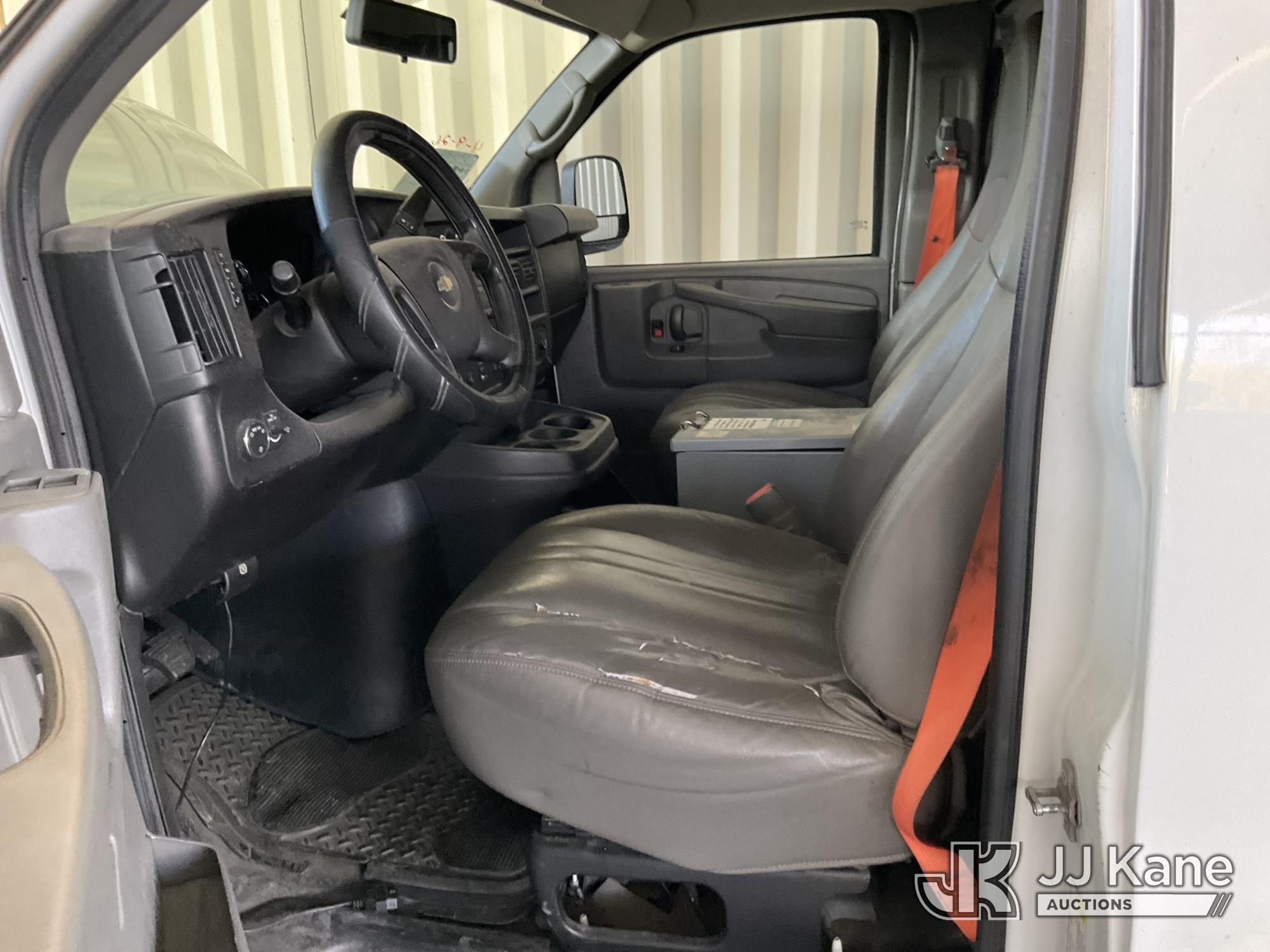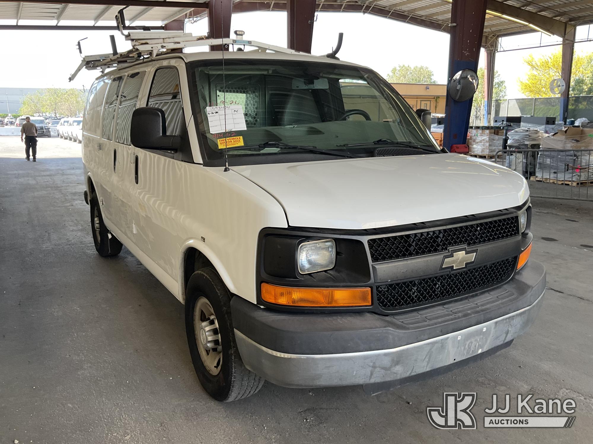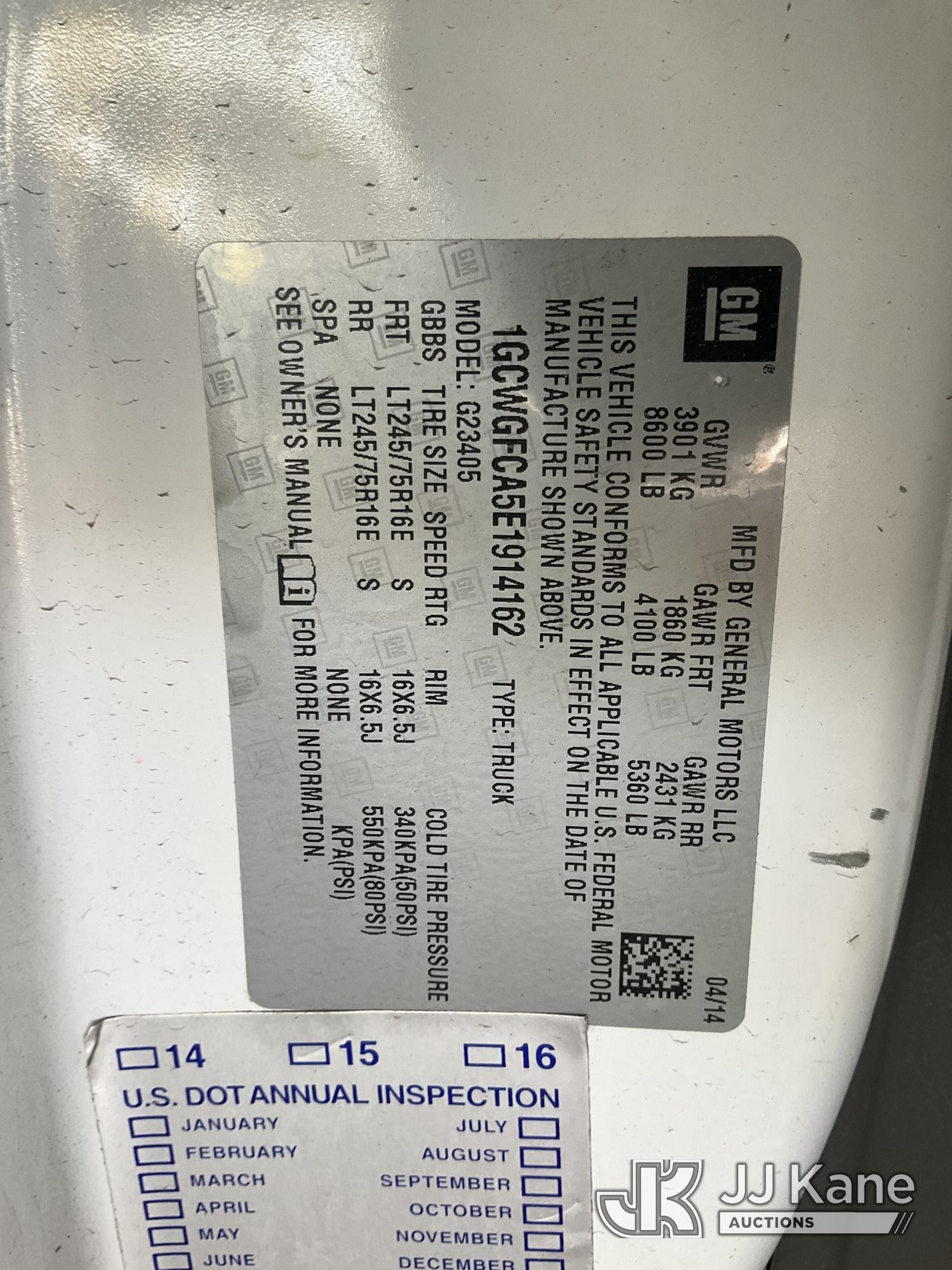 2014 Chevrolet Express 2500 Cargo Van, s/n 1GCWGFCA5E1914162, 4.8L V8 OHV 16V RWD, GAS, 6-Speed Automatic, A/C, with Ladder rack, tow package, (161,338 miles) (Runs & Moves, Overheating) (Bidding Restricted to Licensed Vehicle Dealers Only), This is a Titled Item*