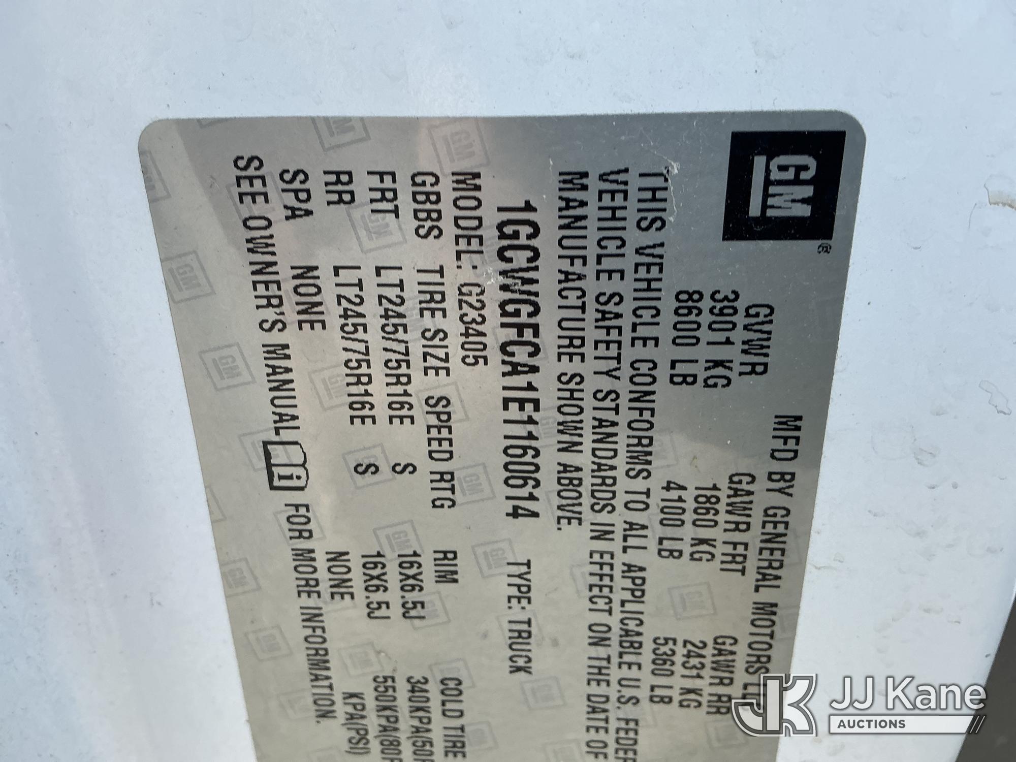 2014 Chevrolet Express 2500 Cargo Van, s/n 1GCWGFCA1E1160614, 4.8L V8 OHV 16V RWD, GAS, 6-Speed Automatic, A/C, with inverter, (88,780 miles) (Runs & Moves) (Body/Paint Damage) This is a Titled Item*