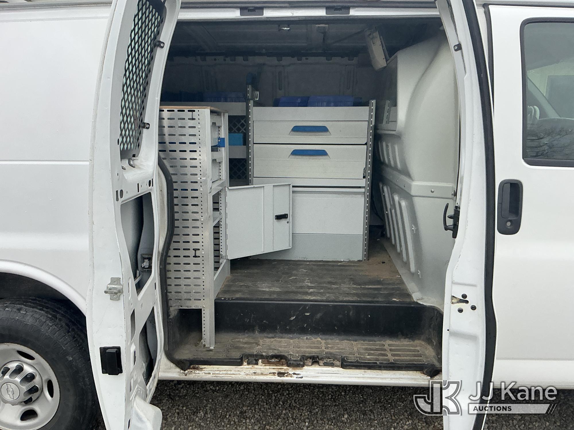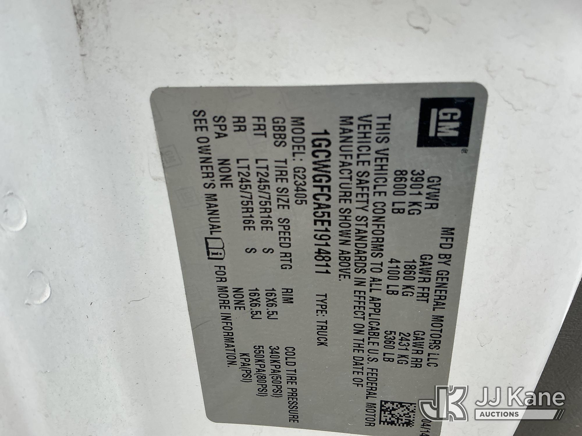 2014 Chevrolet Express G2500 Cargo Van, 4.8L V8 OHV 16V gas, RWD, 6-Speed Automatic, A/C, with inverter, (101,155 miles) (Runs & Moves) (Side Mirror Cracked) (Reads 3,765 hours) This is a Titled Item*