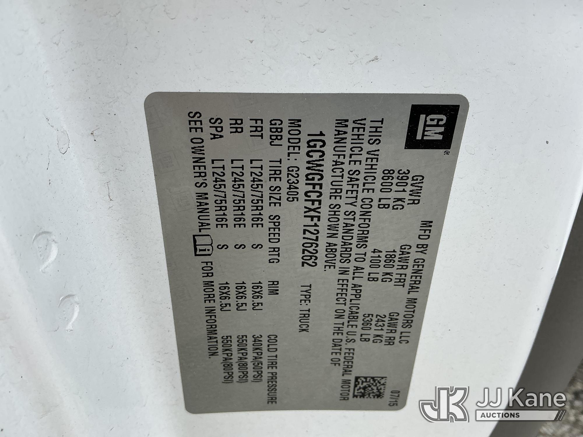 2015 Chevrolet Express 2500 Cargo Van, 4.8L V8 FFV RWD, 6-Speed Automatic, A/C, (65,329 miles) (Runs & Moves) (Chip In Windshield) (Reads 2,203 hours) This is a Titled Item*