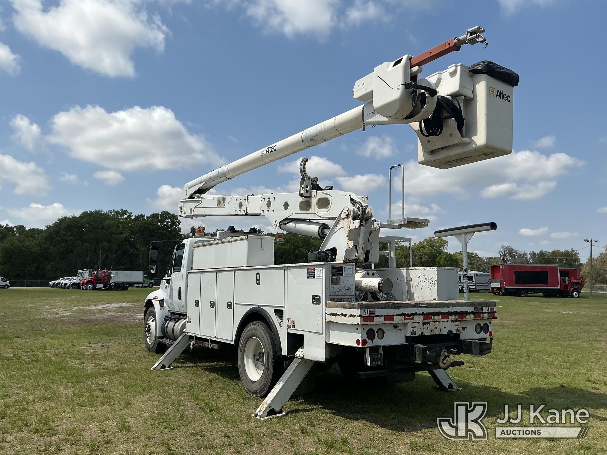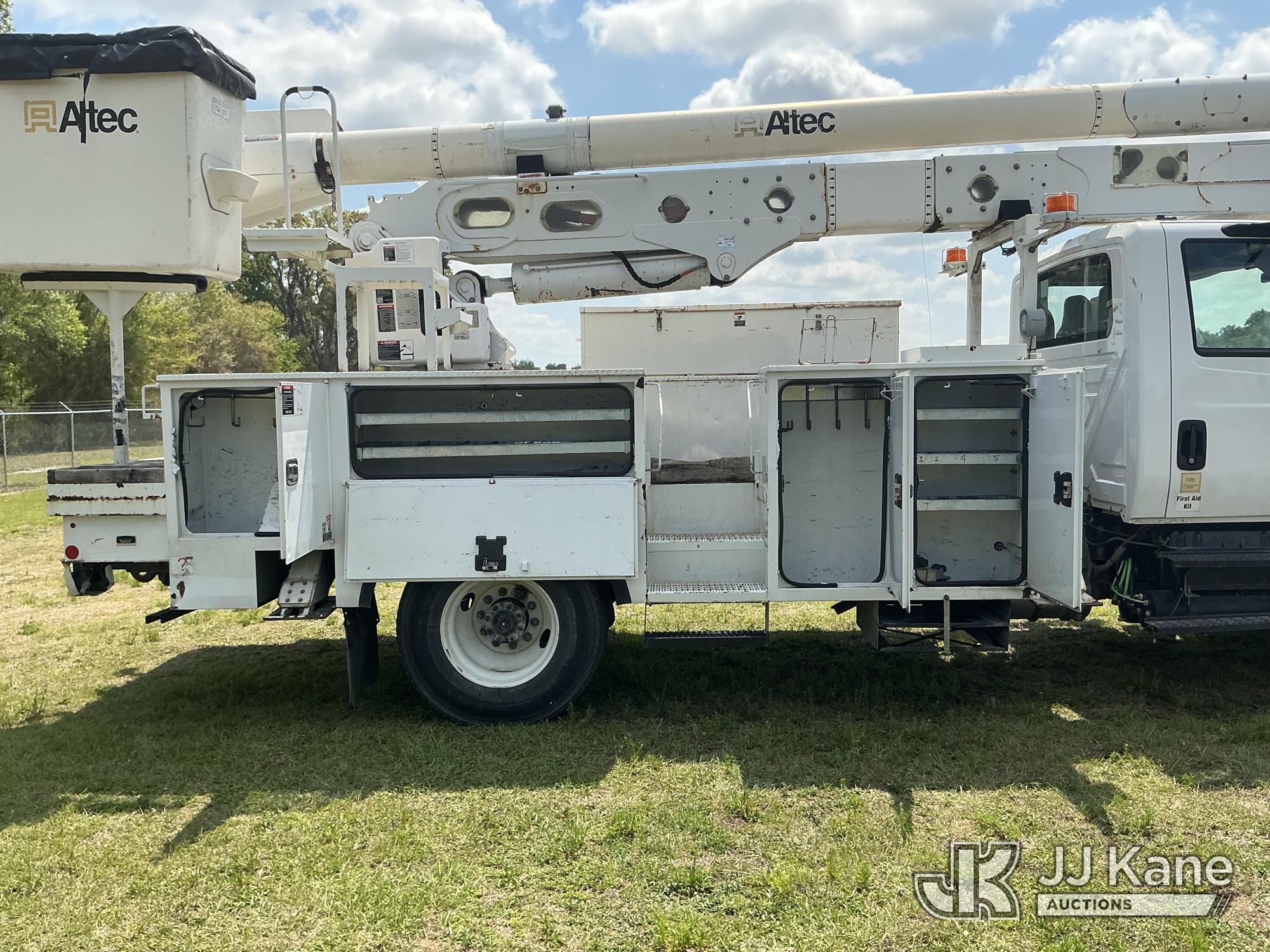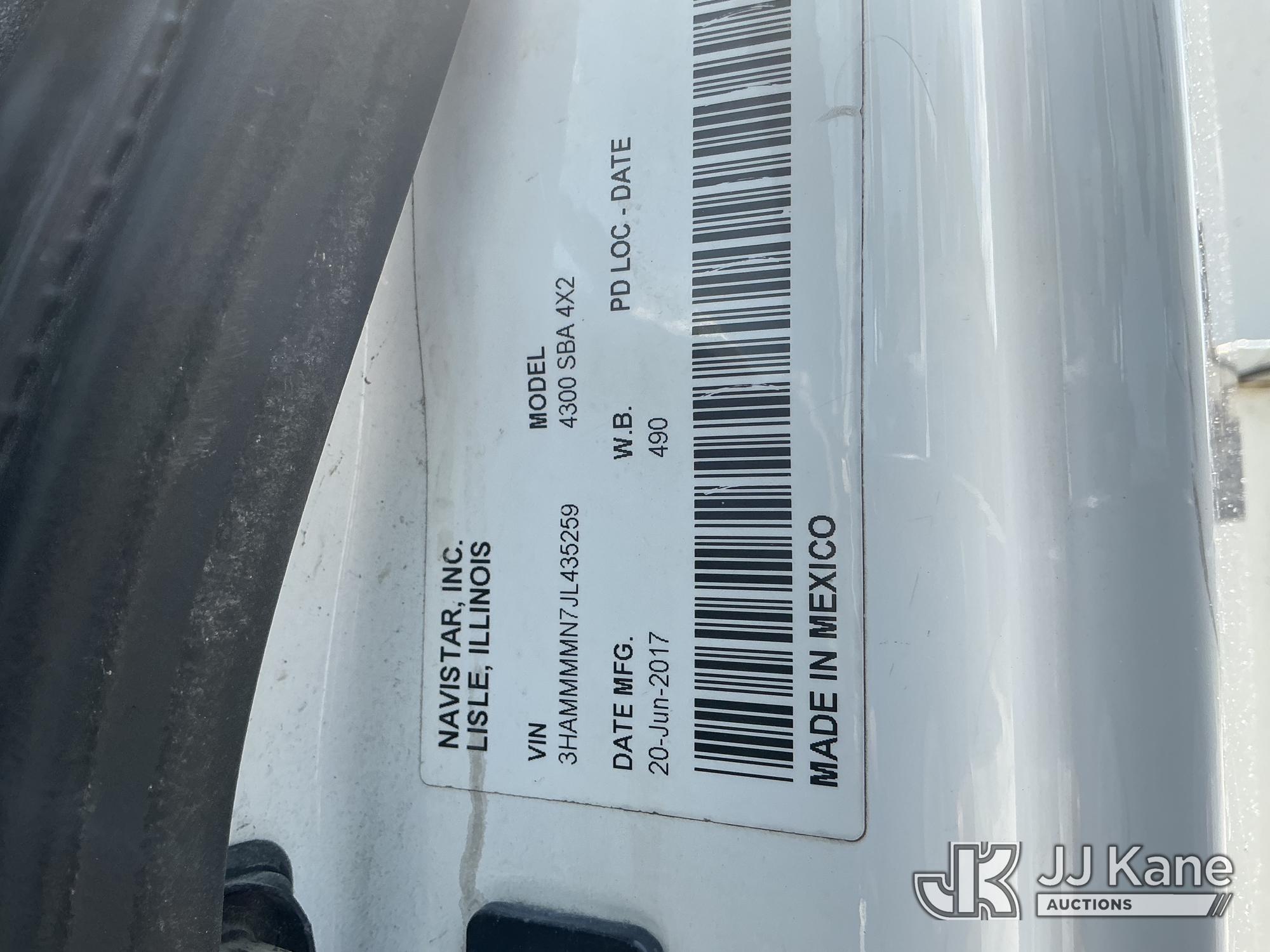 Altec AA55-MH, 60 ft, Material Handling Bucket Truck s/n 0717FH4836, with Two-Man Bucket, 4 Hydraulic Outriggers, rear mounted on 2018 International DuraStar 4300 Utility Truck, Cummins ISB 6.7L Diesel 4X2, Auto, A/C, (86,977 miles) Radio Not Included (Runs, Moves & Upper Operates) (Check Engine Light On) (Reads 11,292 hours) This is a Titled Item*