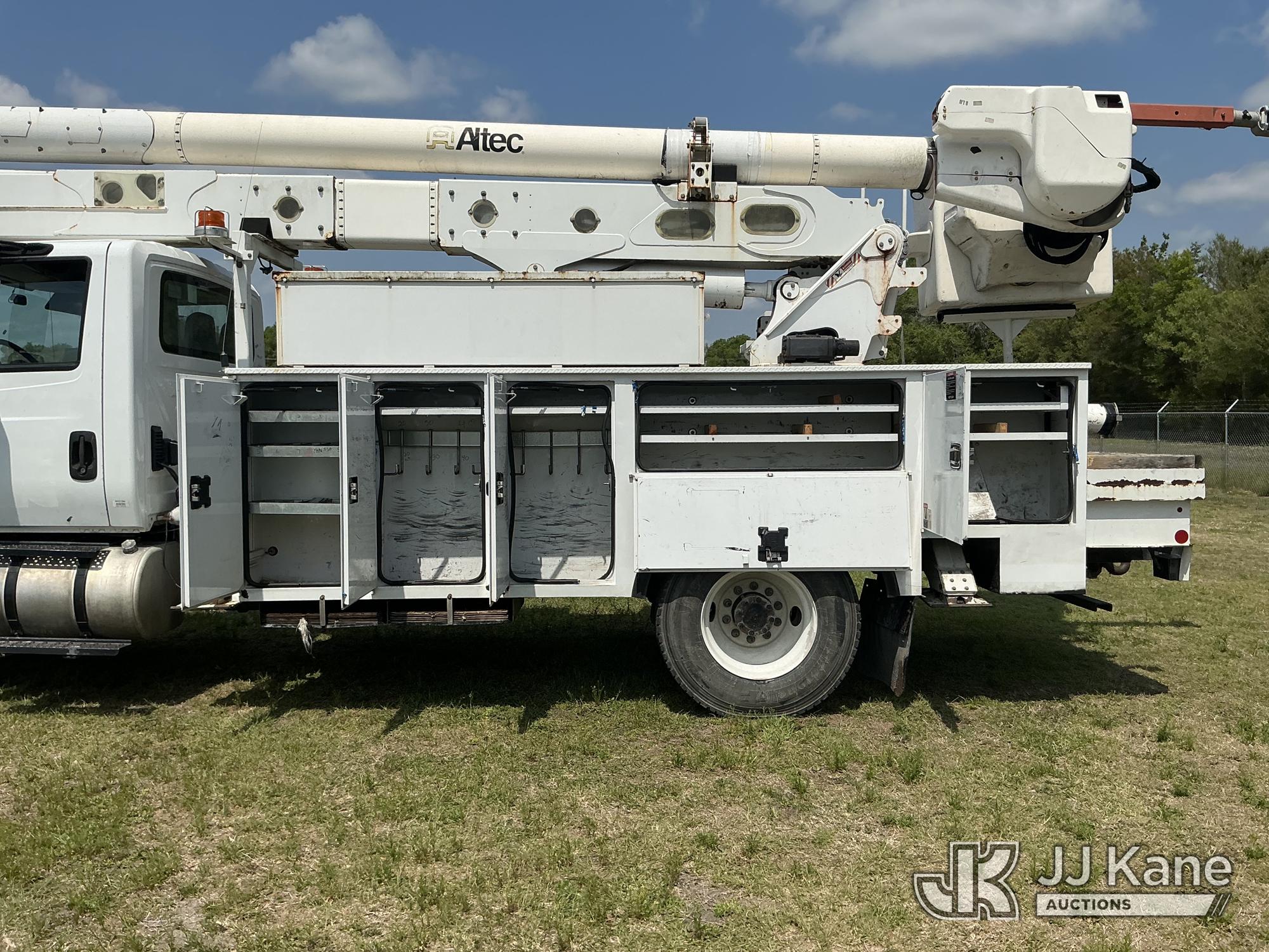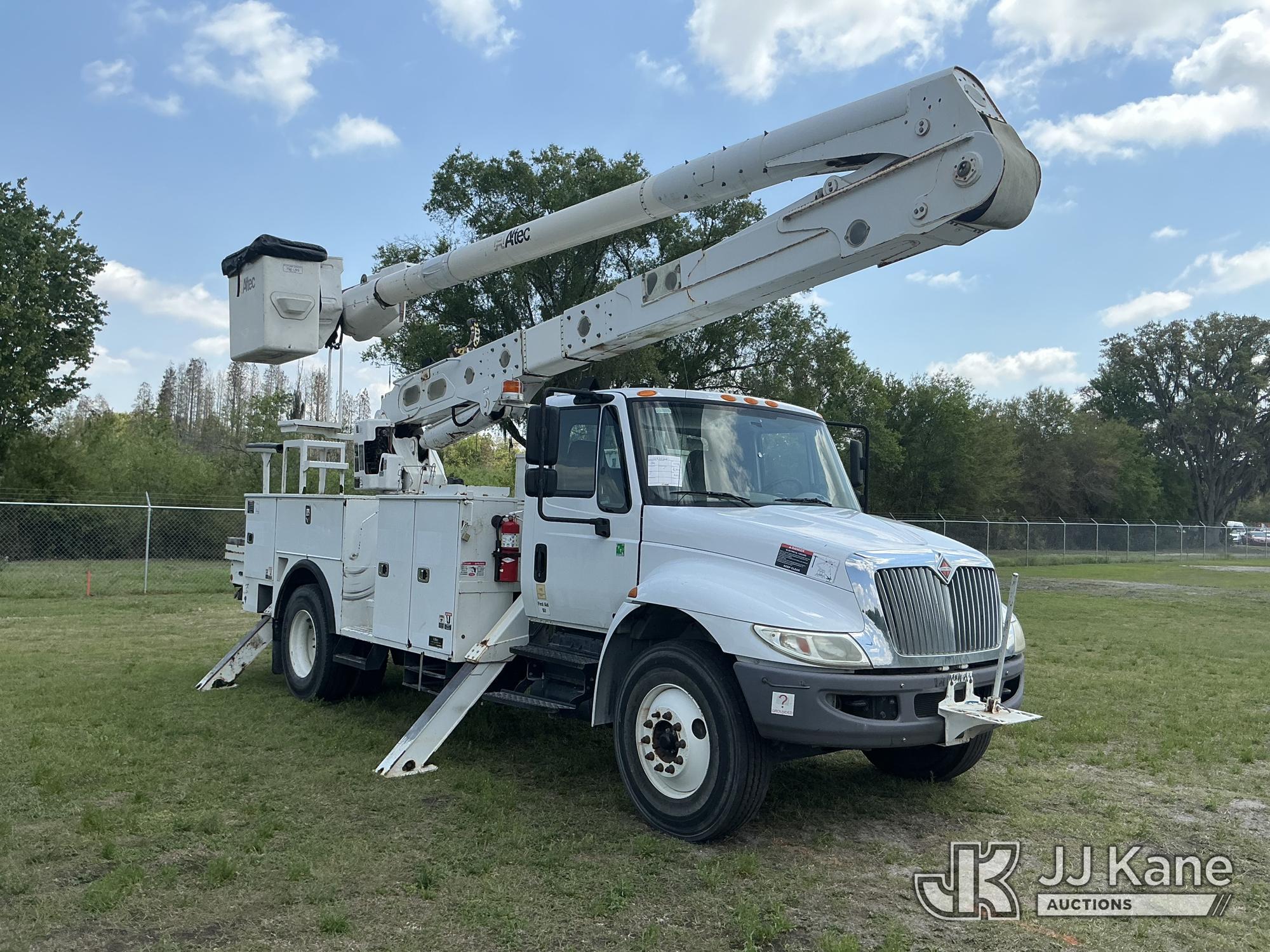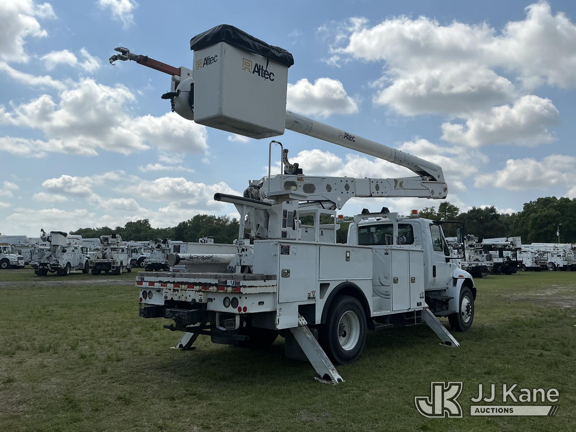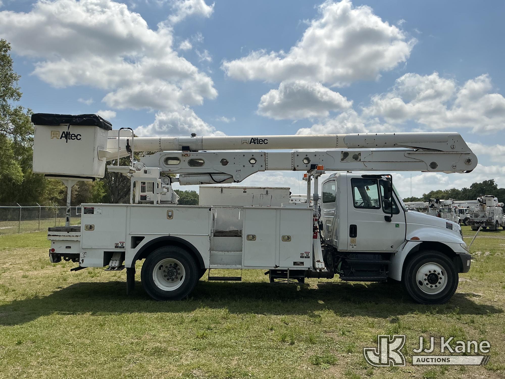 Altec AA55-MH, 60 ft, Material Handling Bucket Truck s/n 0717FH4836, with Two-Man Bucket, 4 Hydraulic Outriggers, rear mounted on 2018 International DuraStar 4300 Utility Truck, Cummins ISB 6.7L Diesel 4X2, Auto, A/C, (86,977 miles) Radio Not Included (Runs, Moves & Upper Operates) (Check Engine Light On) (Reads 11,292 hours) This is a Titled Item*