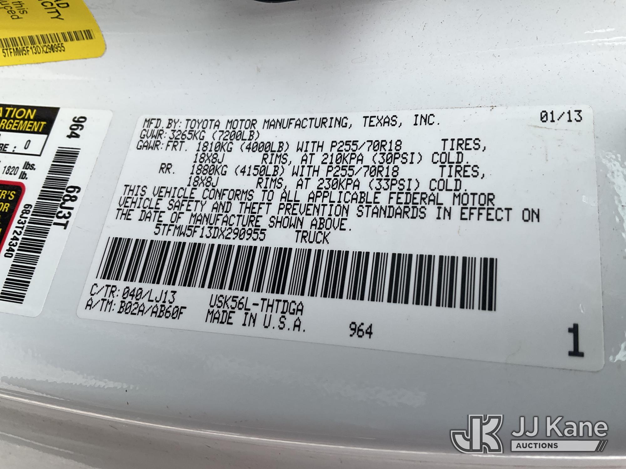 2013 Toyota Tundra 4x4 Pickup Truck, 5.7L V8 DOHC 32V FFV gas, 5-Speed Automatic, A/C, (47,561 miles) (Runs & Moves) This is a Titled Item*
