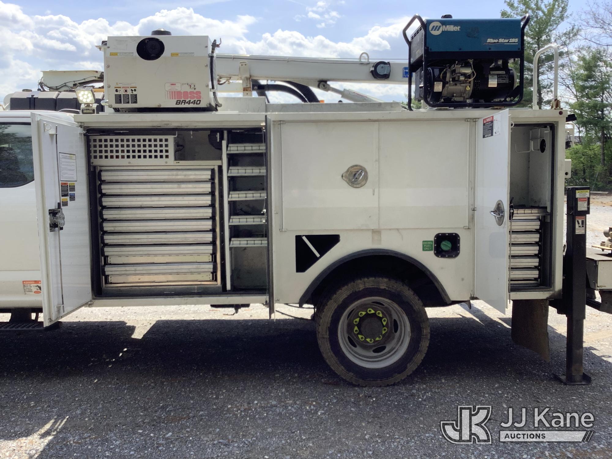 2020 Ford F550 Extended-Cab Mechanics Service Truck, 6.7L diesel, Auto, A/C, with Auto Crane HC-6 6,000 lb Material Crane, S/N HC6-1220-097, 20 ft Reach, 3-Section Boom, Heel Winch Wireless Remote 2 Outriggers, Miller Blue Star 185 Welder/Generator, gas, Boss BR440 Hyd Air Compressor, (157,130 miles) (Runs & Moves, Crane Not Operating, No Power To Remote) (Reads 5,854 hours) This is a Titled Item*
