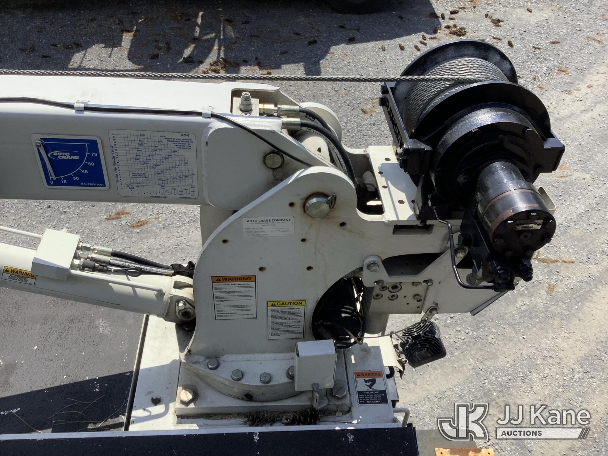 | Optional Equipment: | Auto Crane HC-6 6,000 lb Material Crane, S/N HC6-1220-097, 20 ft Reach, 3-Section Boom, Heel Winch Wireless Remote 2 Outriggers, Miller Blue Star 185 Welder/Generator, gas, Boss BR440 Hyd Air Compressor |