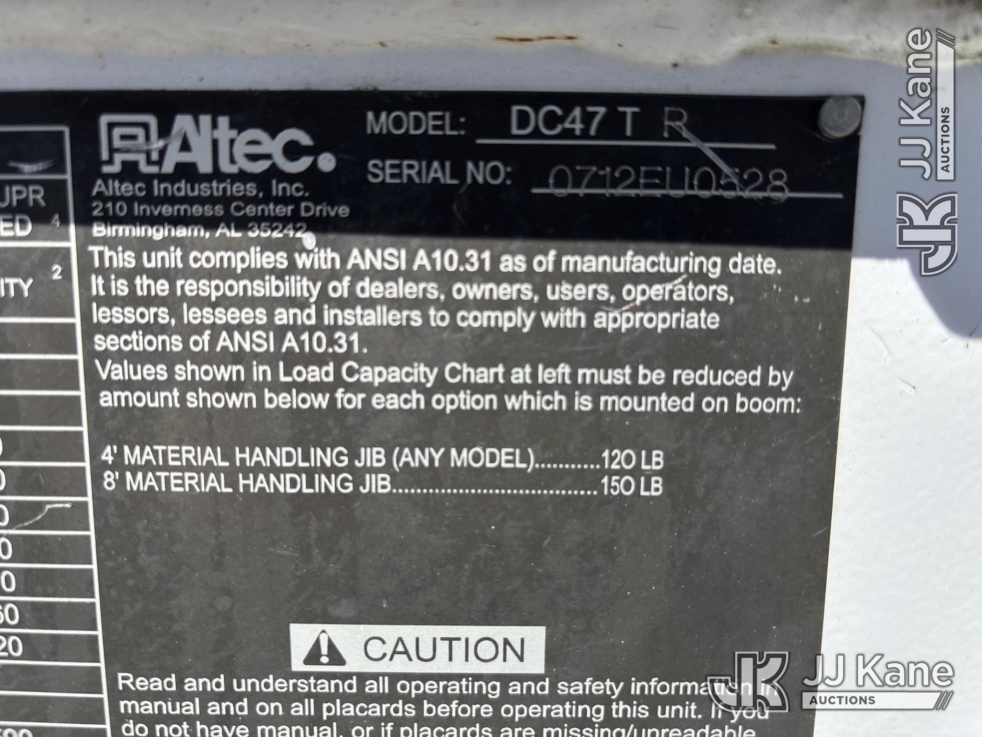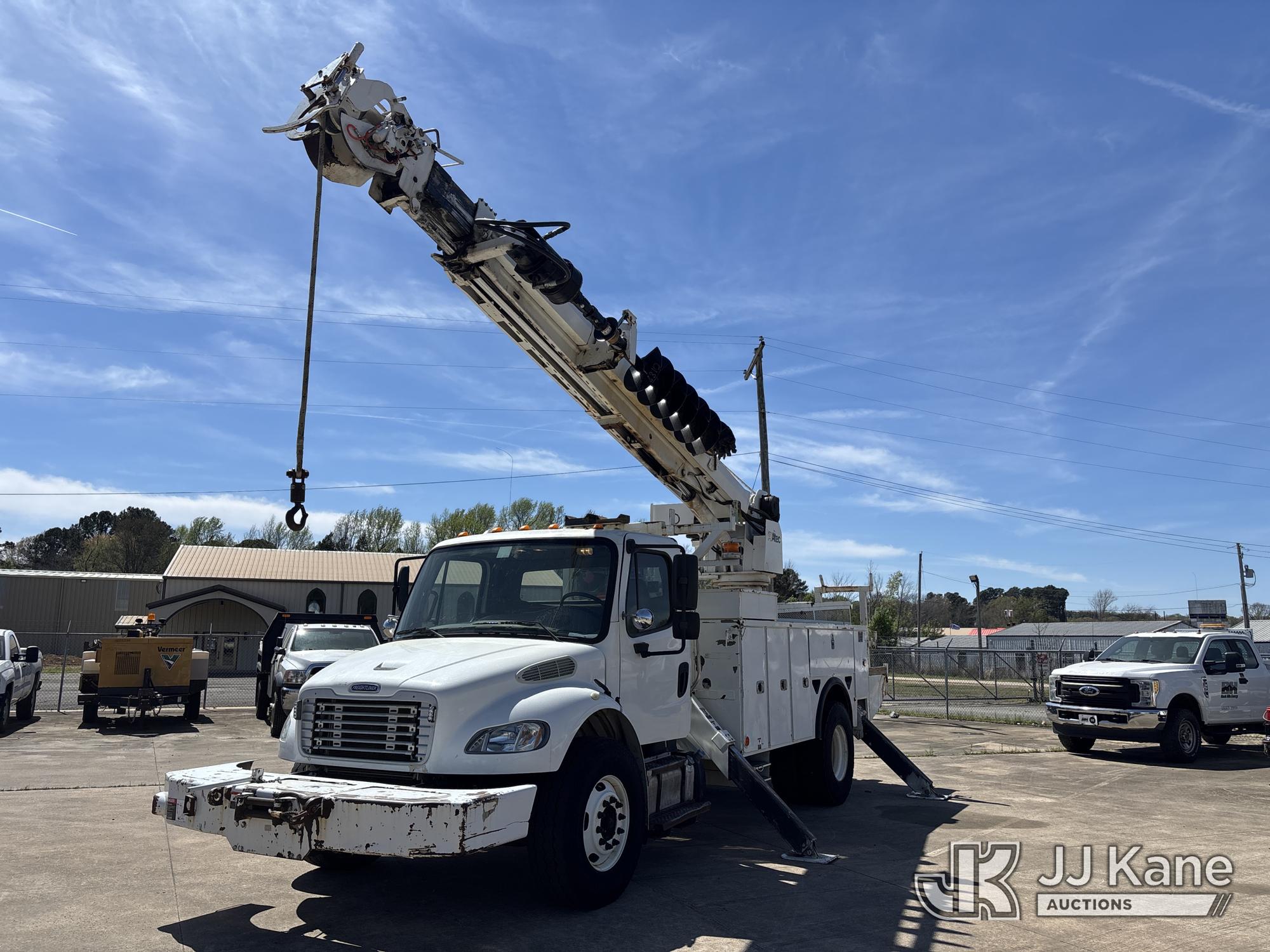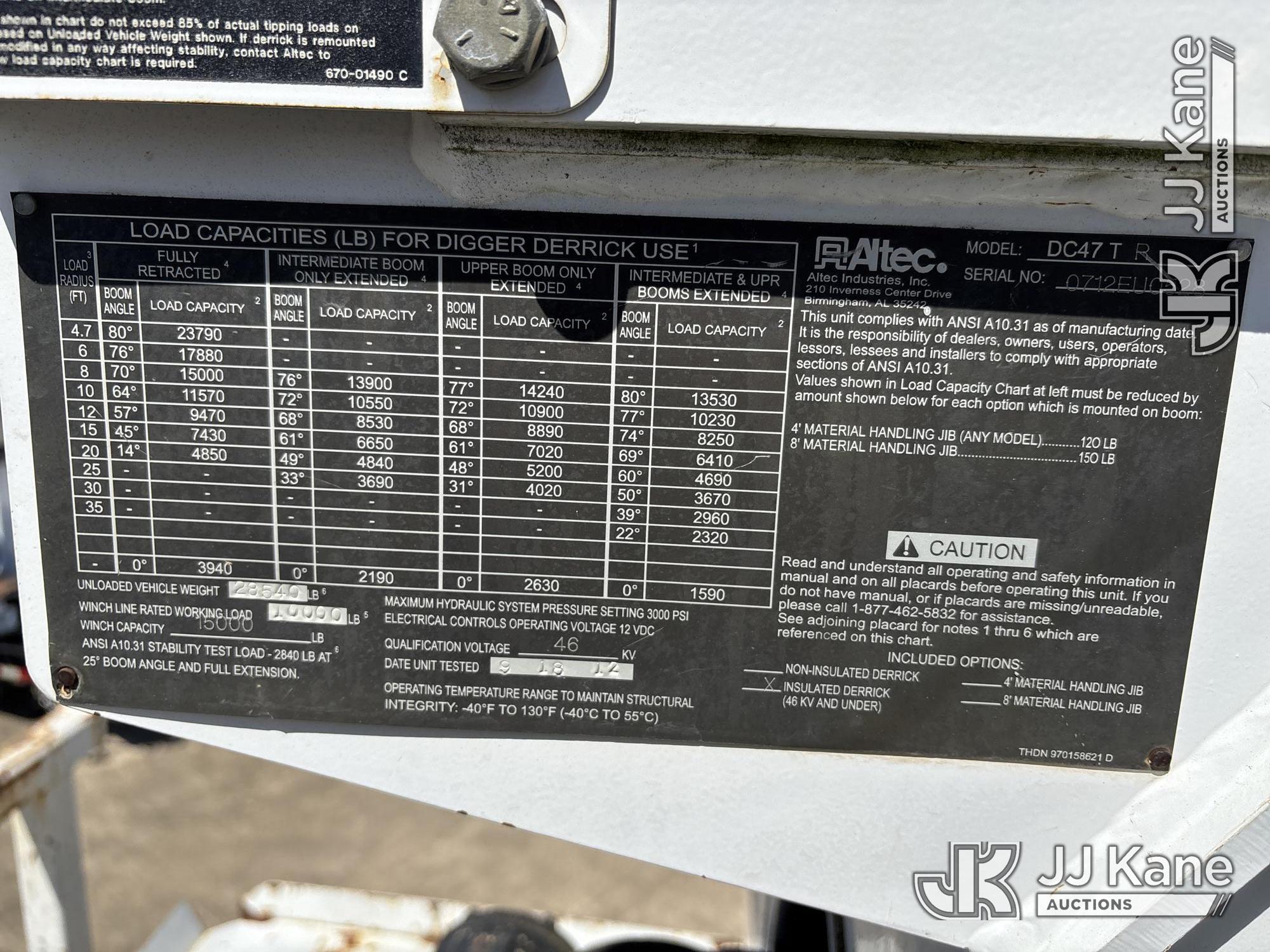 Altec DC47-TR, 23,790 Lb Digger Derrick s/n 0712EU10528, with 47 ft sheave height, 3 section hyd boom, 2 spd digger, heel winch, pole grabs & riding console, rear mounted on 2013 Freightliner M2 106 Service Truck, 6.7L L6 4X2, DIESEL, Auto, A/C, with front winch, (111,923 miles) (Runs, Moves & Operates, Upper Boom Extension catches short) (Reads 11,348 hours) This is a Titled Item*
