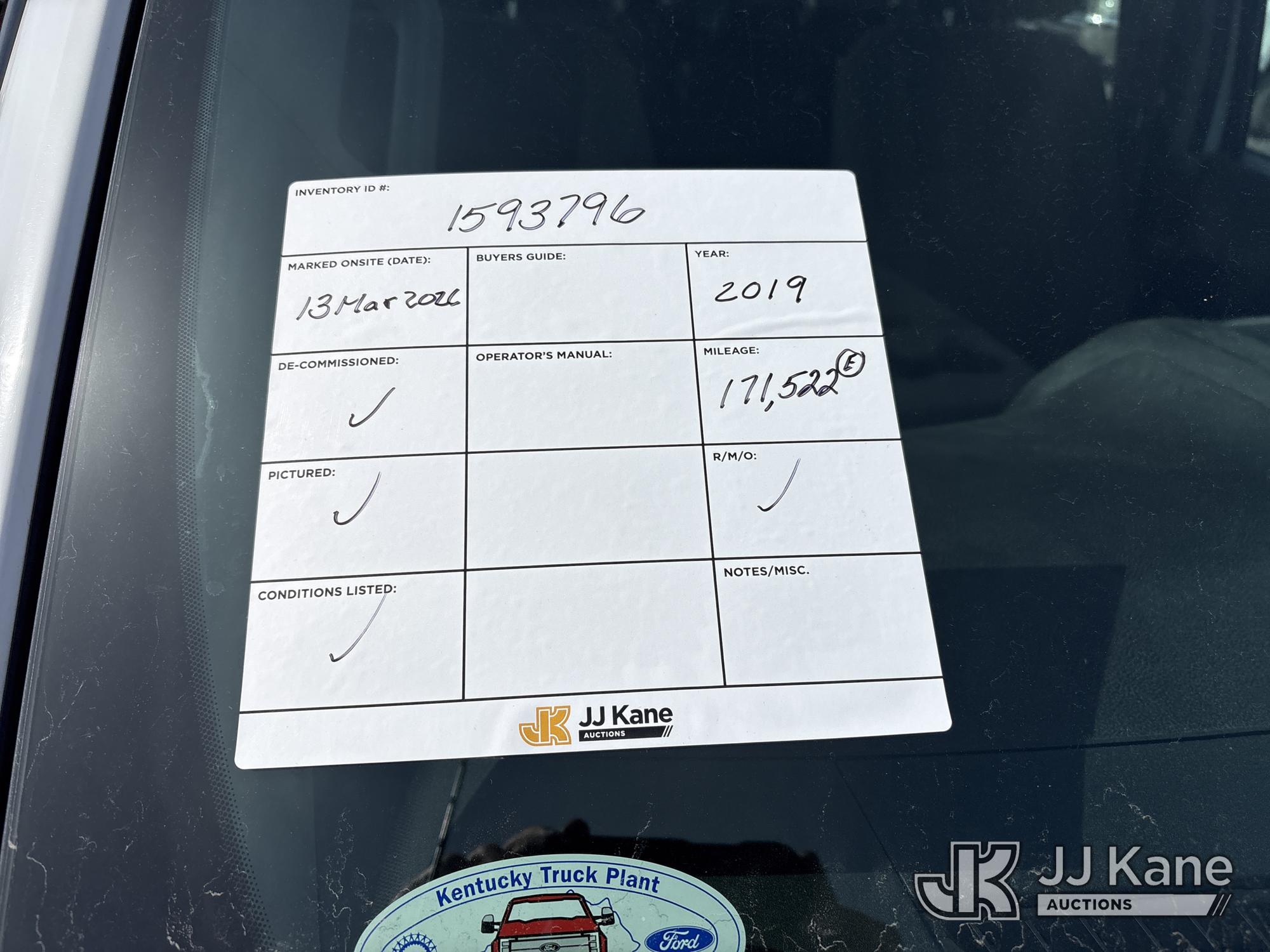 2019 Ford F250 4x4 Extended-Cab Service Truck, 8-cyl gas, Auto, A/C, with Western 8.6 ft V Plow, (171,522 miles) (Runs & Moves, Missing Rear Seats) This is a Titled Item*