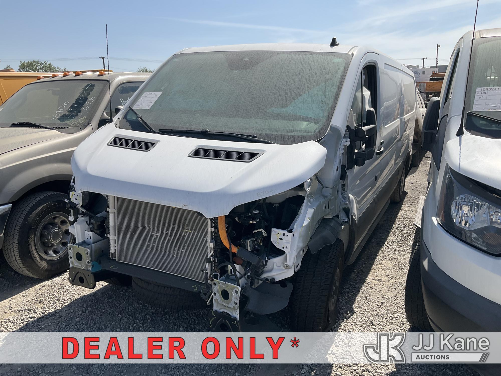 2024 Ford Transit Cargo Van, ELECTRIC, 6-Speed Automatic, A/C, True Mileage Unknown Vehicle is subject to an open NHTSA safety recall related to IN THE EVENT OF EXCESSIVE SPLINE WEAR, CUSTOMERS MAY EXPERIENCE A SEAL LEAK AND EVENTUALLY MAY EXPERIENCE A LOSS OF MOTIVE POWER OR UNINTENDED VEHICLE MOVEMENT WHILE THE VEHICLE IS IN PARK IF THE PARKING BRAKE IS NOT APPLIED. LOSS OF MOTIVE POWER WHILE DRIVING OR VEHICLE ROLLAWAY CAN INCREASE THE RISK OF A CRASH, but a remedy for this recall does not appear to be available. Dealer is not authorized to perform the recall repair. Periodically contact the manufacturer or check the VIN on the NHTSA website at www.safercar.gov to determine whether a remedy for the recall is available. As soon as a remedy is available, arrange to have the recall remedied with a dealer from that make of car to make such repair. (Not Running, Condition Unknown) (No Key, Wrecked, Airbags Deployed, Missing Lights, Body Damage, Open Recall With Remedy Not Yet Available, Must Be Towed) (Bidding Restricted to Licensed Vehicle Dealers Only), This is a Titled Item*