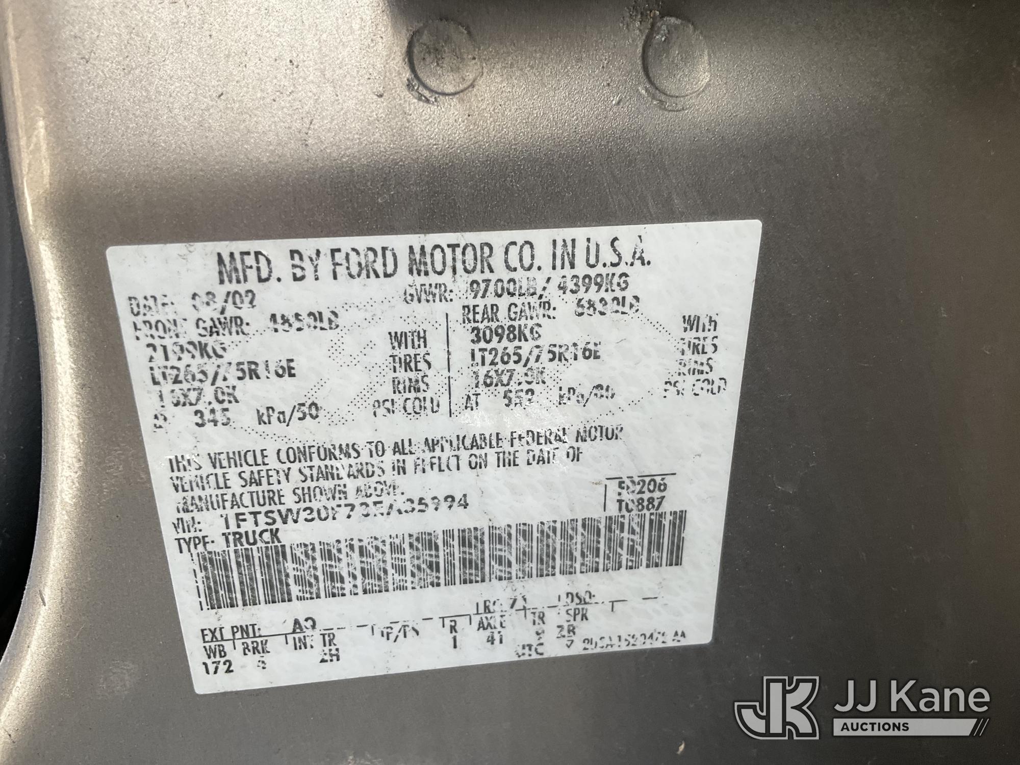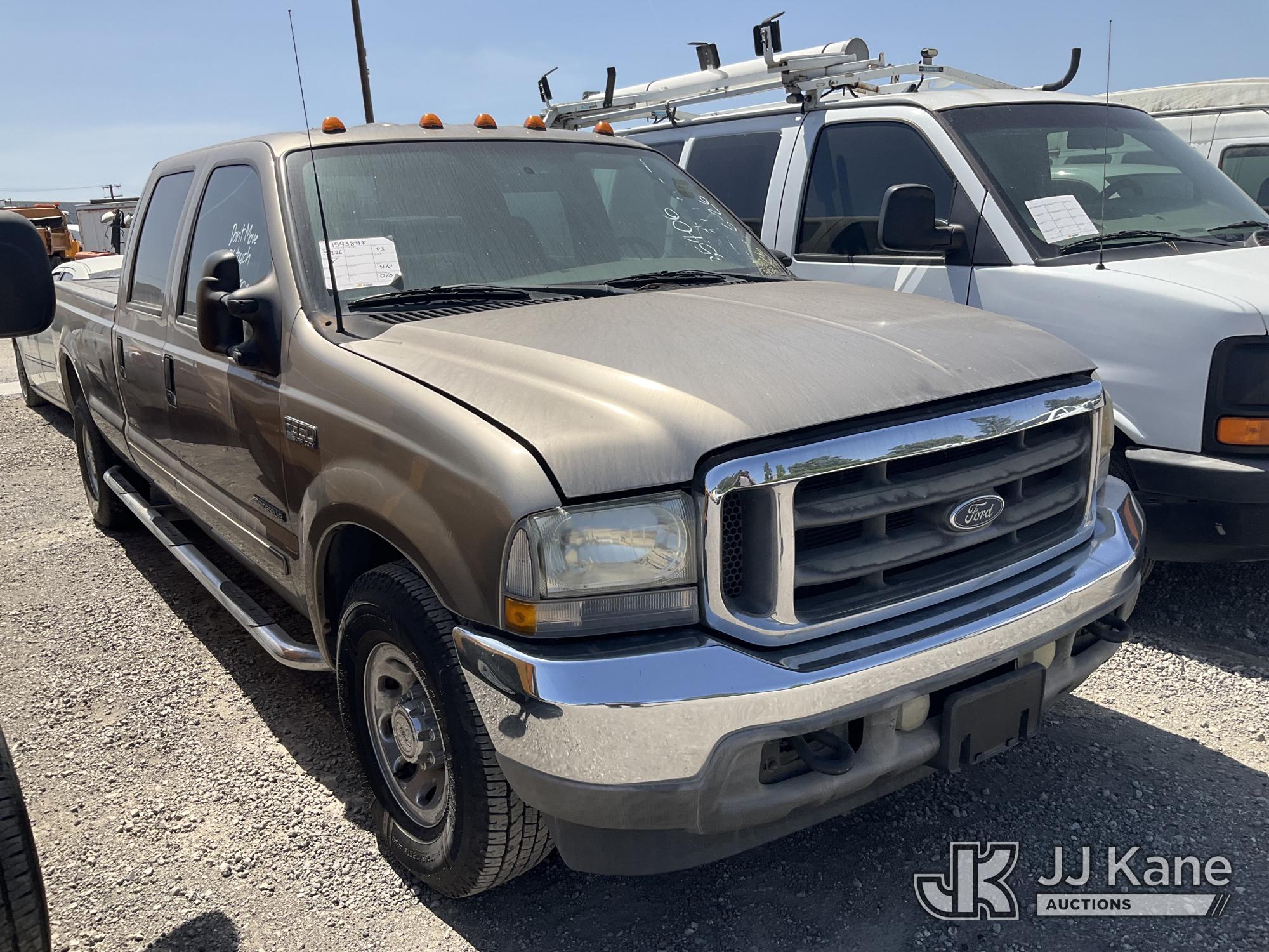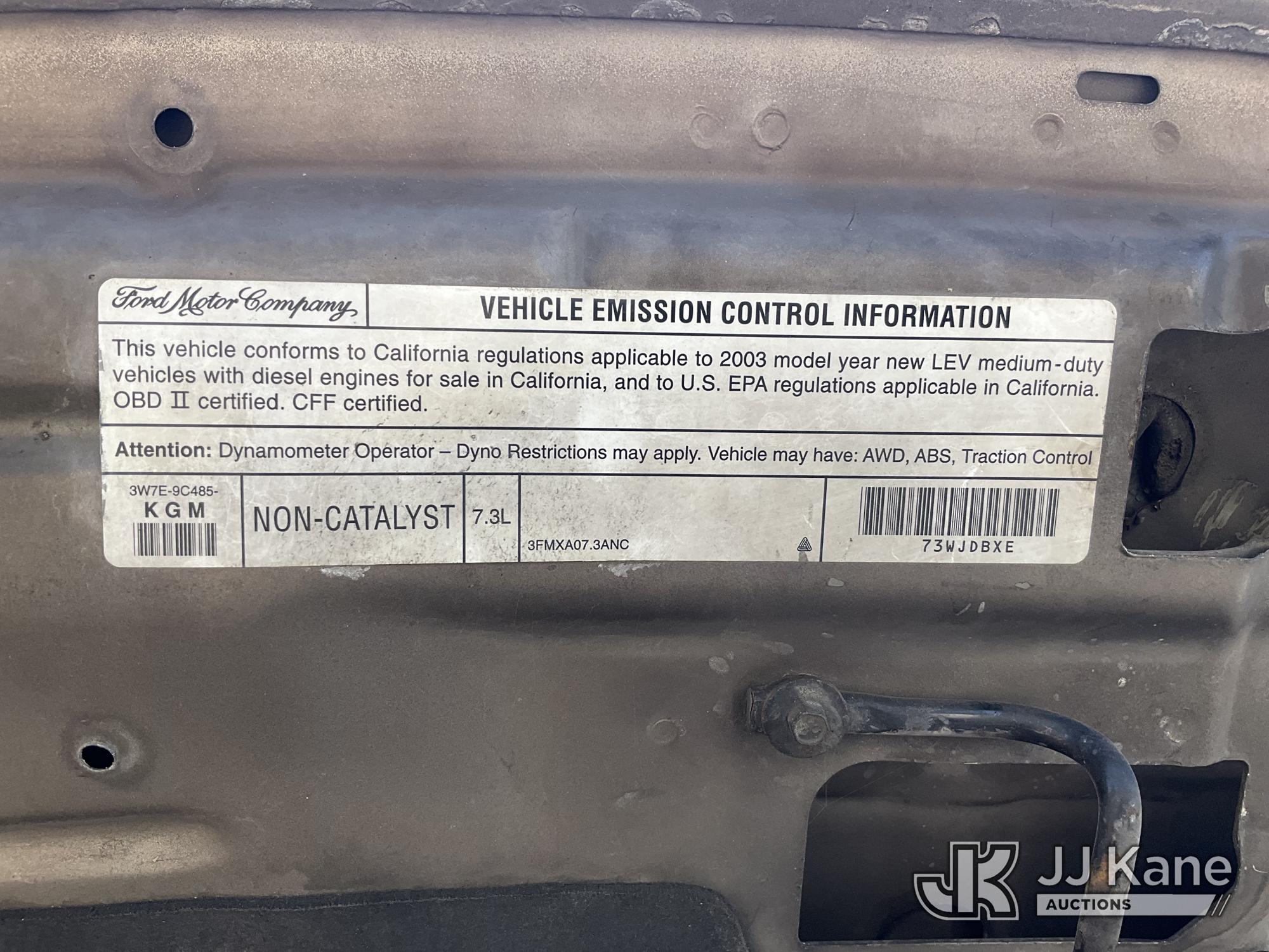 2003 Ford F-350 SD Pickup Truck, 7.3L Turbo Diesel Auto, A/C, with Tow Package, bed cover, True Mileage Unknown (Not Running, Condition Unknown) (No Key, Interior Damage, Must Be Towed) (Bidding Restricted to Licensed Vehicle Dealers Only), May be subject to ARB Regulations This is a Titled Item*