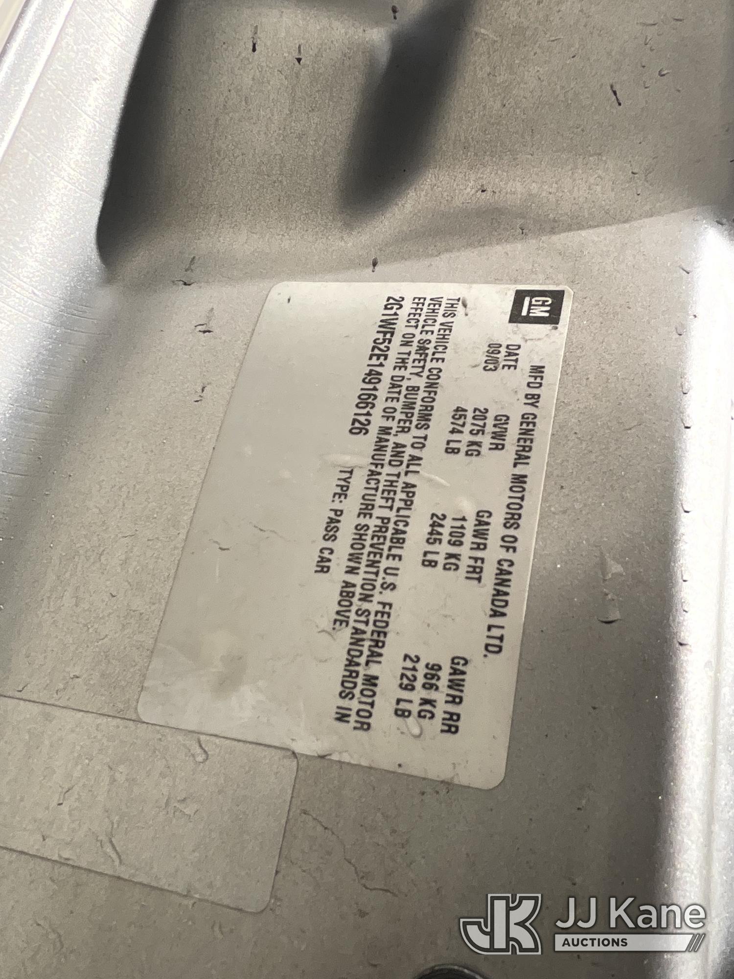 2004 Chevrolet Impala Base 4-Door Sedan, s/n 2G1WF52E149166126, 3.4L V6 OHV 12V FWD, GAS, 4-Speed Automatic, A/C, (Exempt from Odometer Disclosure - Reads 73,701 miles) (Runs & Moves, Damaged Dashboard, Missing Stereo) This is a Titled Item*