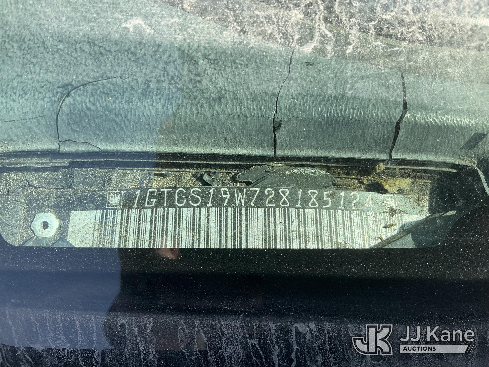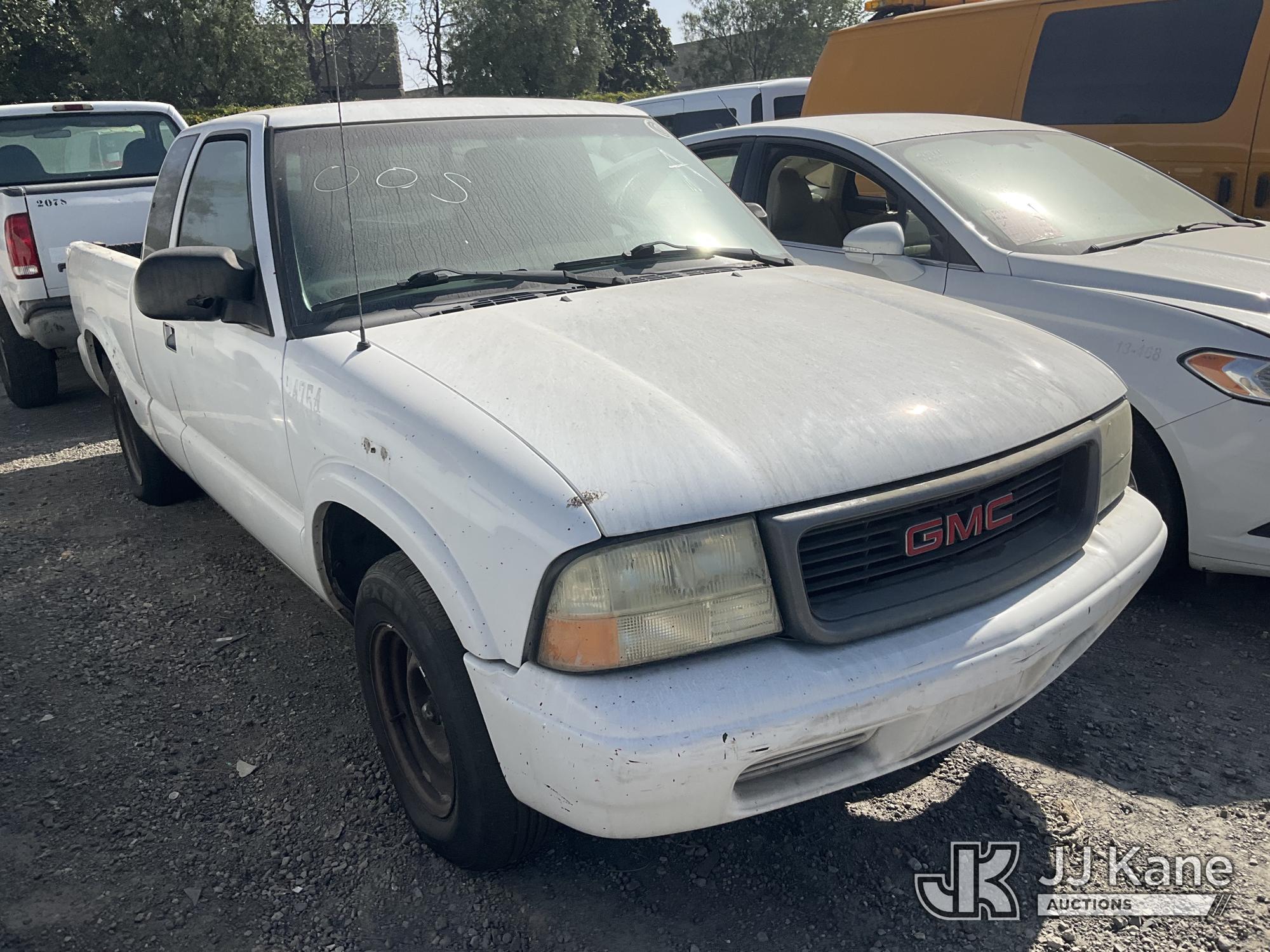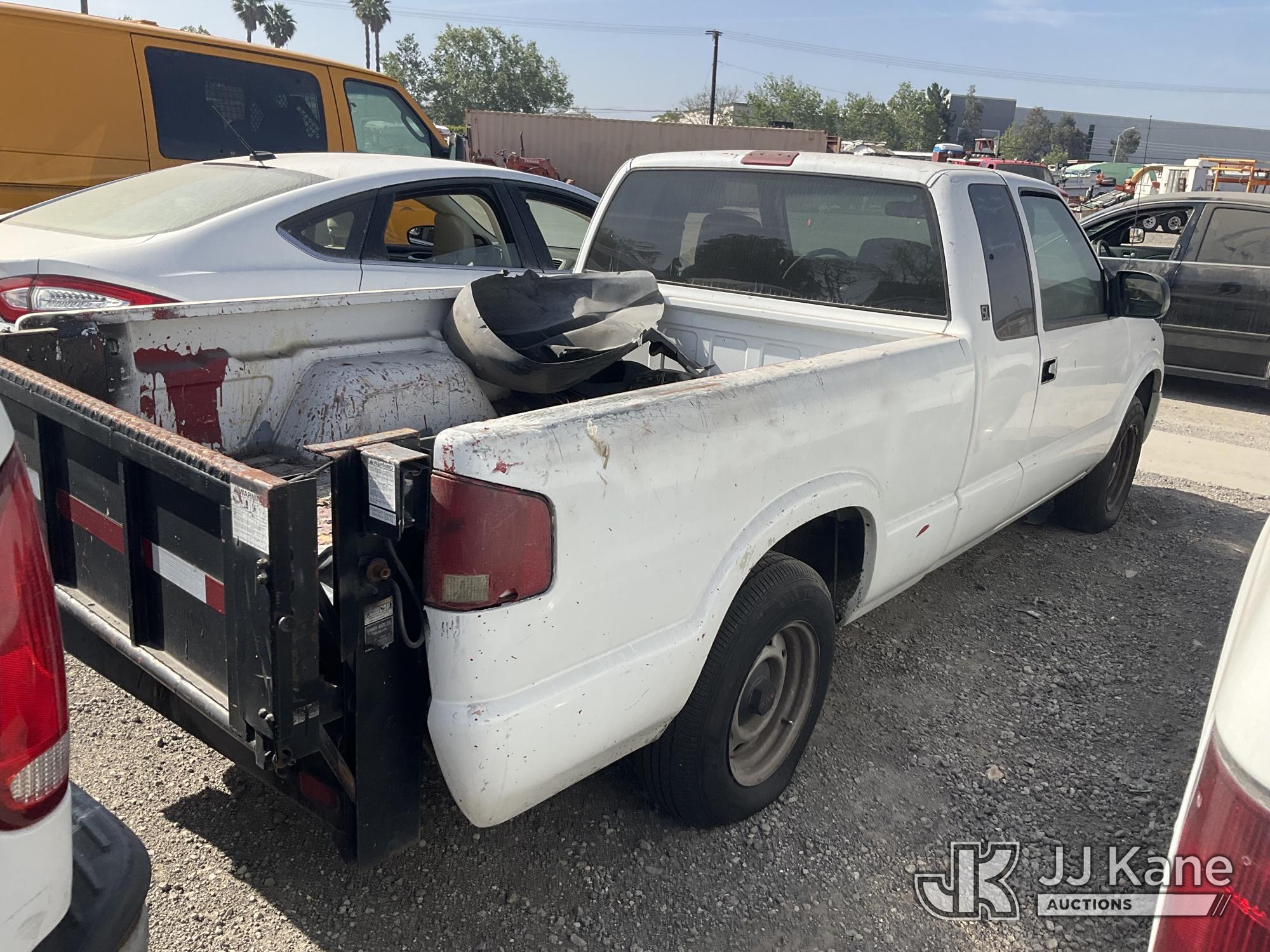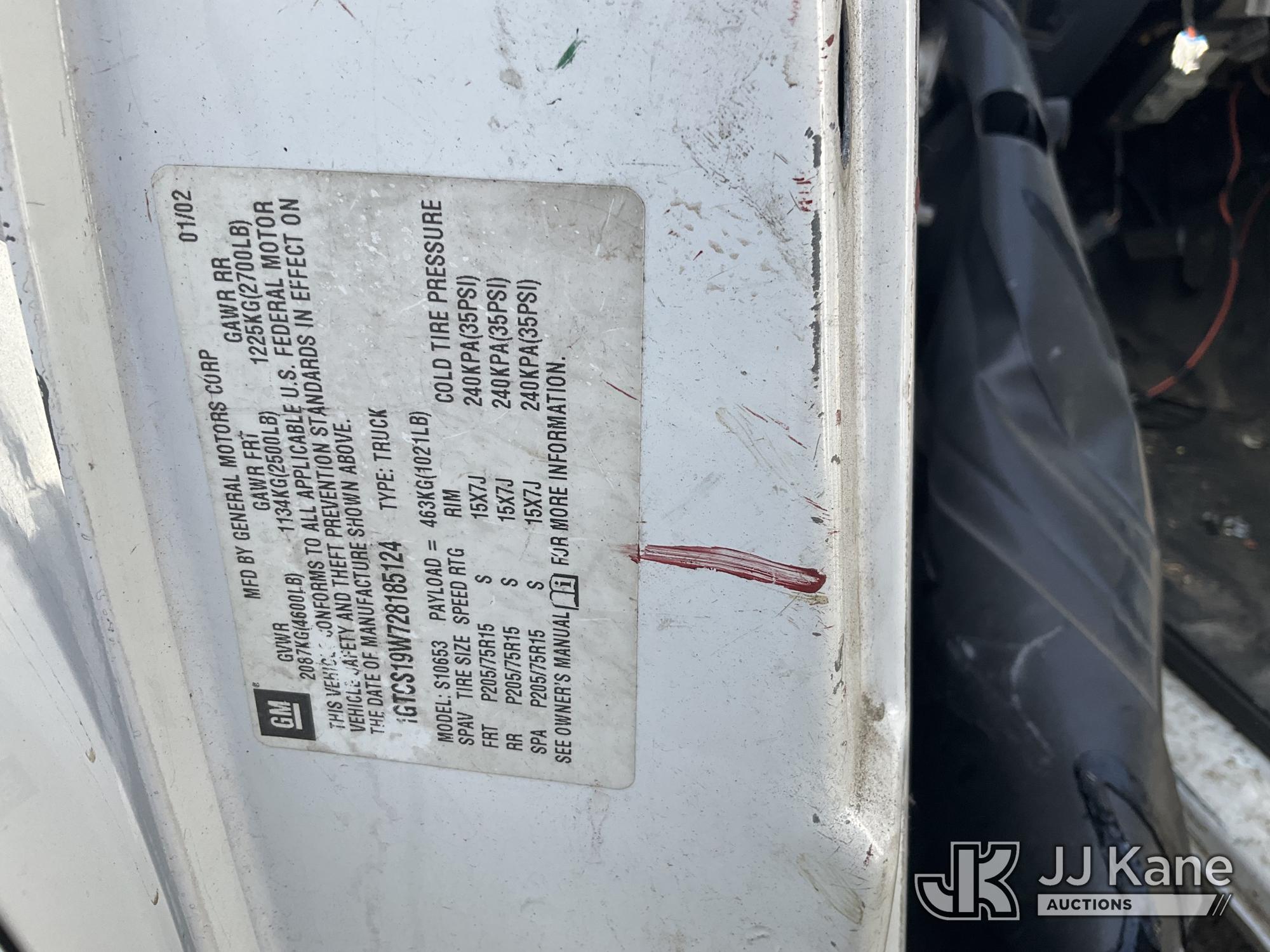 2002 GMC Sonoma Extended-Cab Pickup Truck, s/n 1GTCS19W728185124, 4.3L V6 OHV 12V RWD, GAS, Auto, A/C, with LiftGate, True Mileage Unknown (Not Running, No Key, Missing Battery, Interior Stripped Of Parts, Steering Column Damaged, Must Be Towed) (Bidding Restricted to Licensed Vehicle Dealers Only), This is a Titled Item*