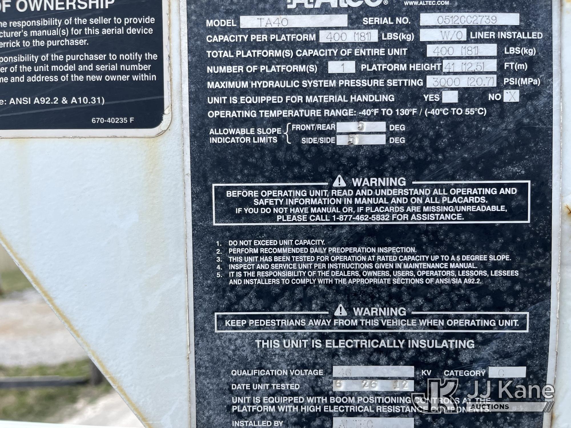 Altec TA40, 45 ft, Articulating & Telescopic Bucket Truck s/n 0512CC2739, with single-man bucket, mounted behind cab on 2013 International 4300 Extended-Cab Utility Truck, 7.6L 4X2, Auto, A/C, (182,300 miles) (Runs, Moves & Upper Operates) This is a Titled Item*