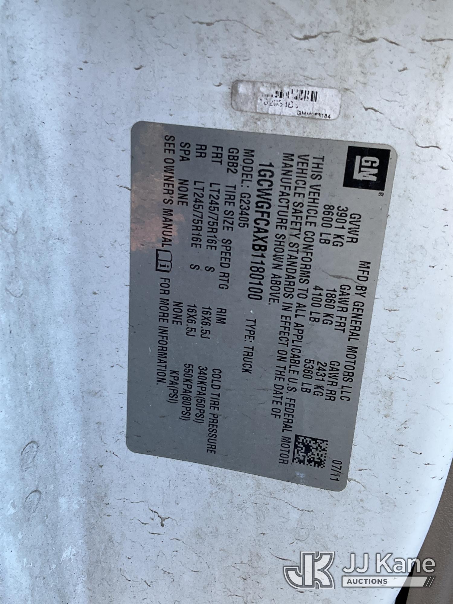2011 Chevrolet Express G2500 Cargo Van, 8-cyl gas, Auto, A/C, (36,124 miles) (Runs & Moves) (Removal is by Appointment Only, Buyer MUST make a appointment prior to picking up, Buyer/Transporter Must have PAID IN FULL RELEASE. No onsite assistance available, Please Come prepared.) This is a Titled Item*