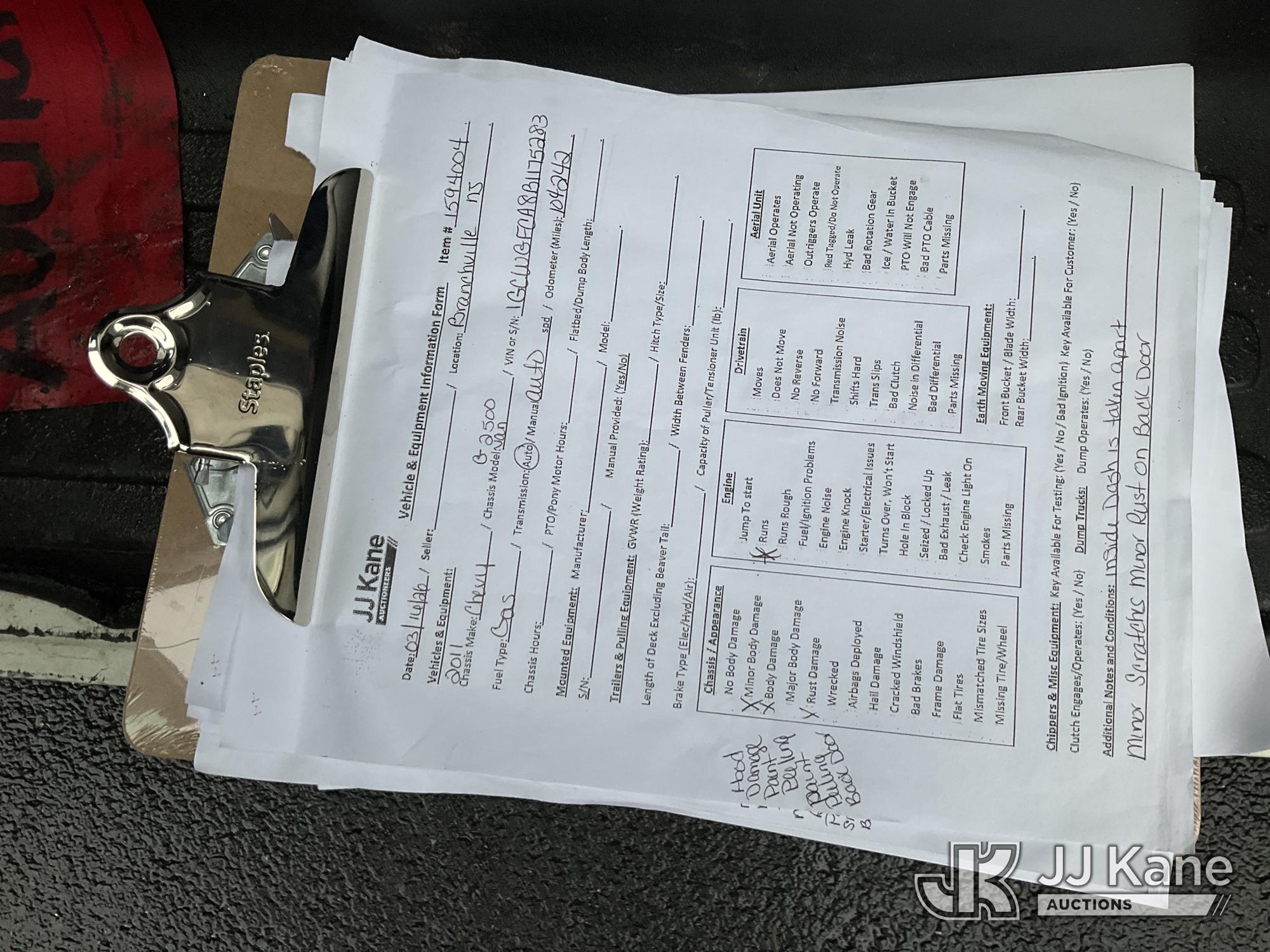 2011 Chevrolet Express G2500 Cargo Van, 8-cyl gas, Auto, A/C, (104,242 miles) (Runs, Bad Transmission, Dash Apart) (Removal is by Appointment Only, Buyer MUST make a appointment prior to picking up, Buyer/Transporter Must have PAID IN FULL RELEASE. No onsite assistance available, Please Come prepared.) This is a Titled Item*
