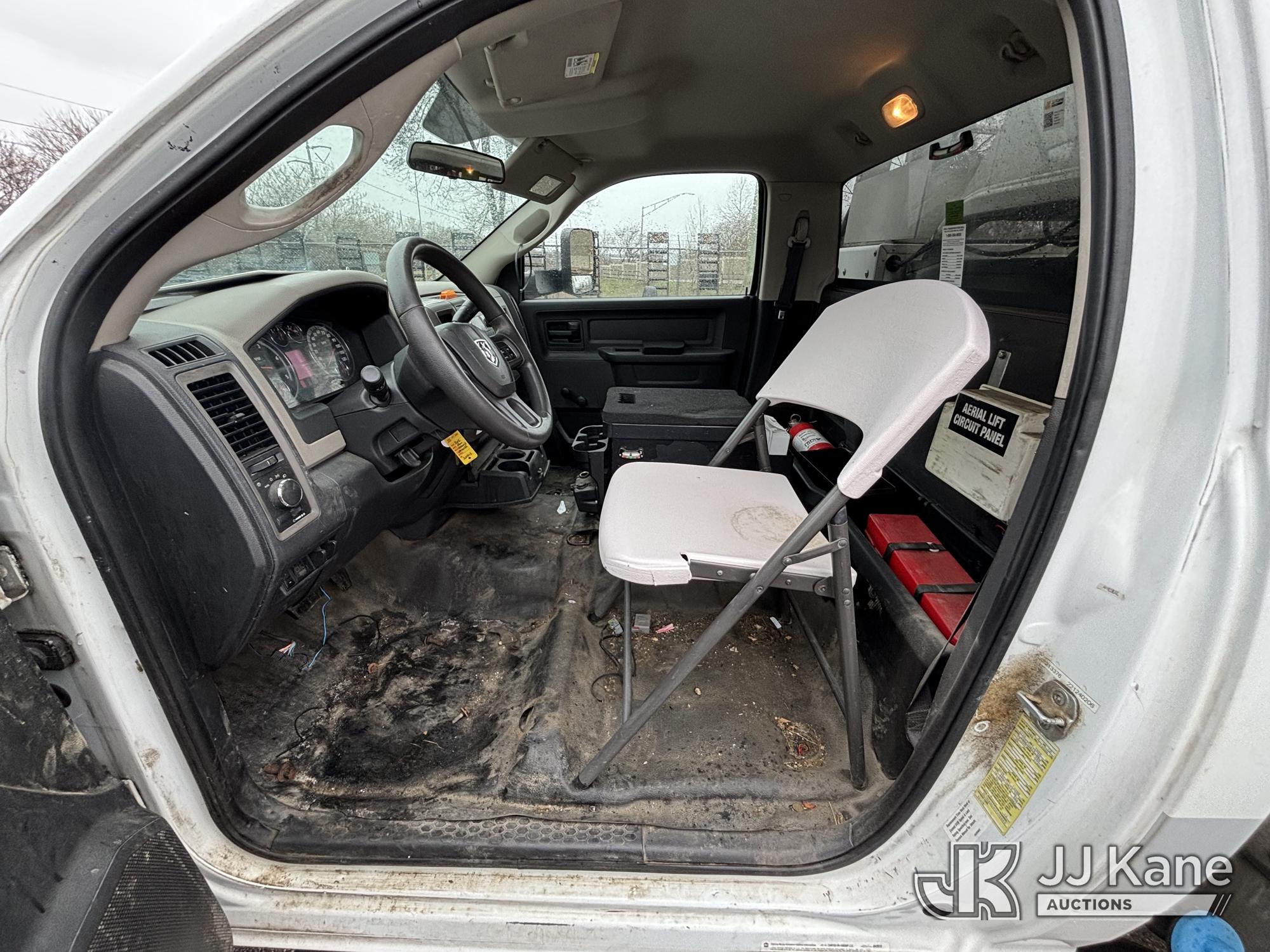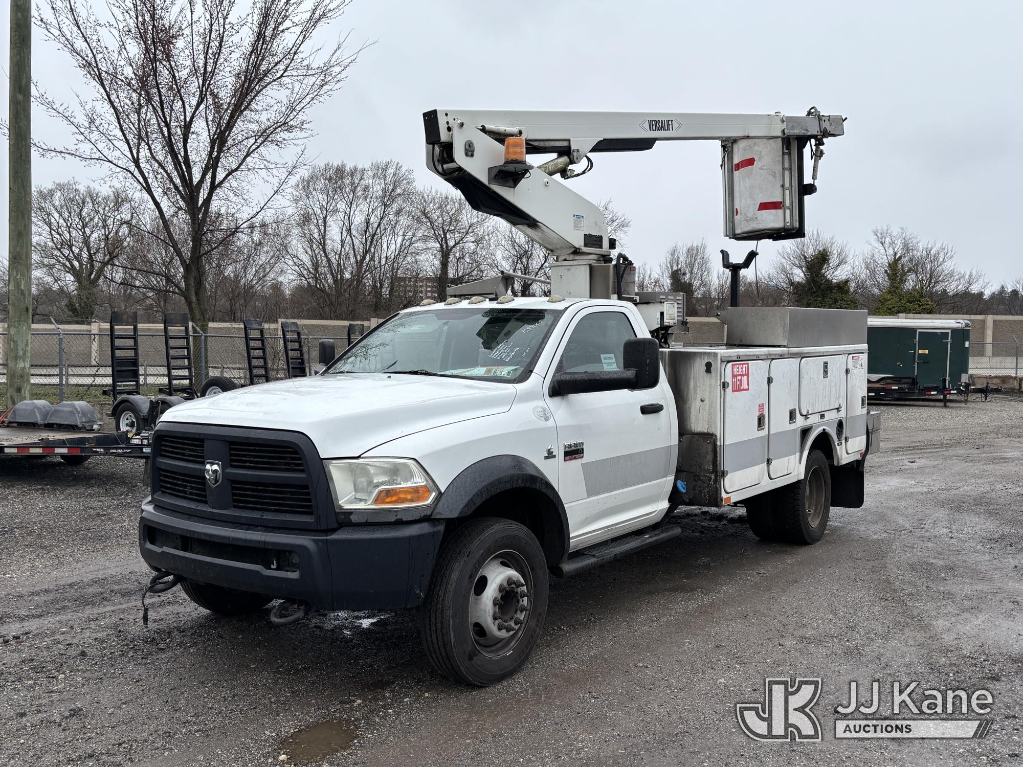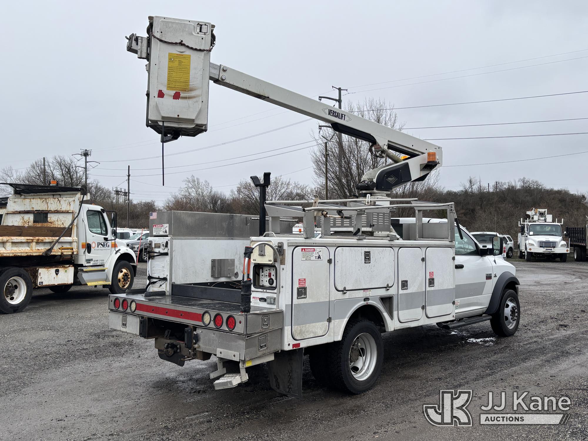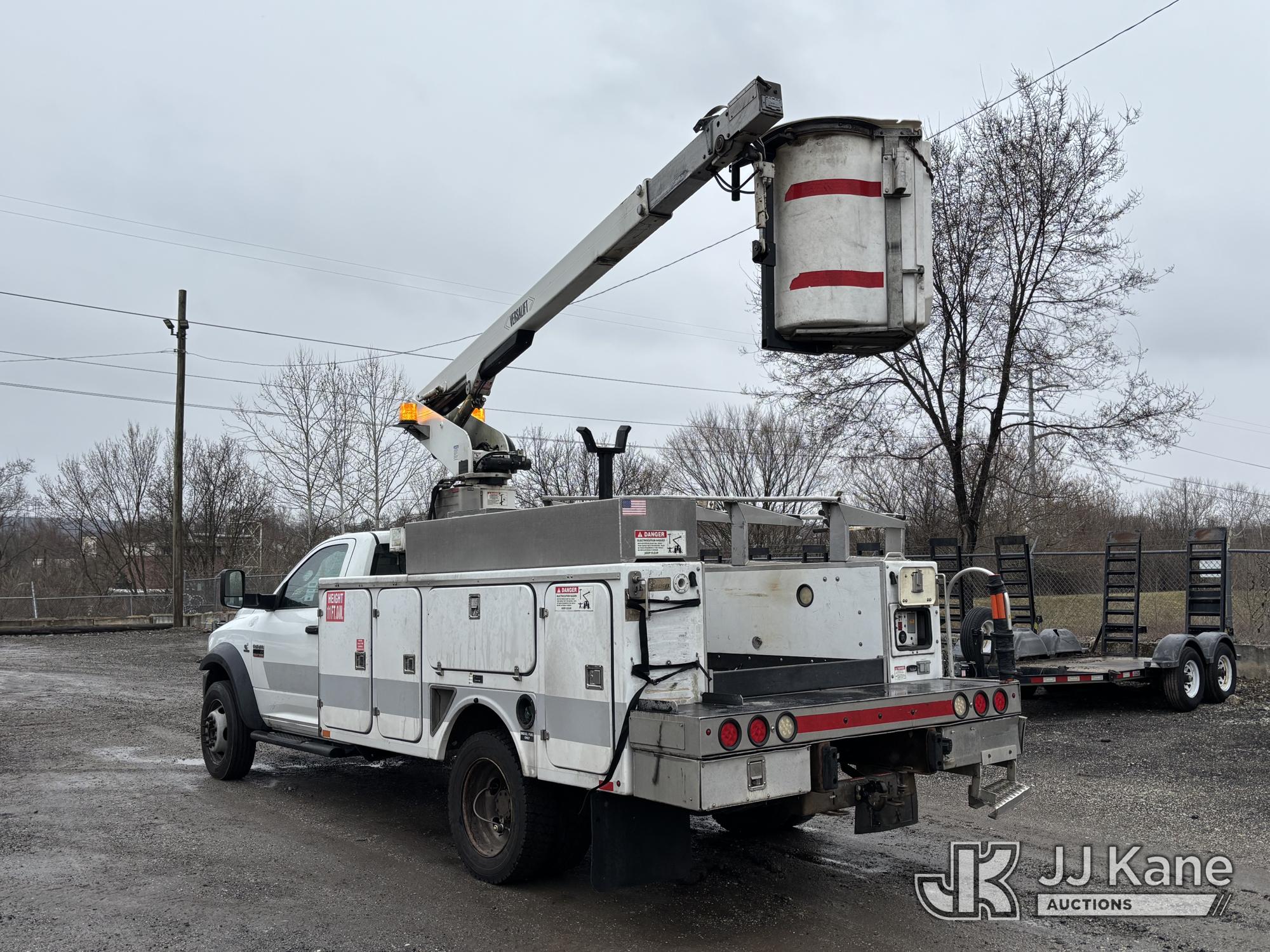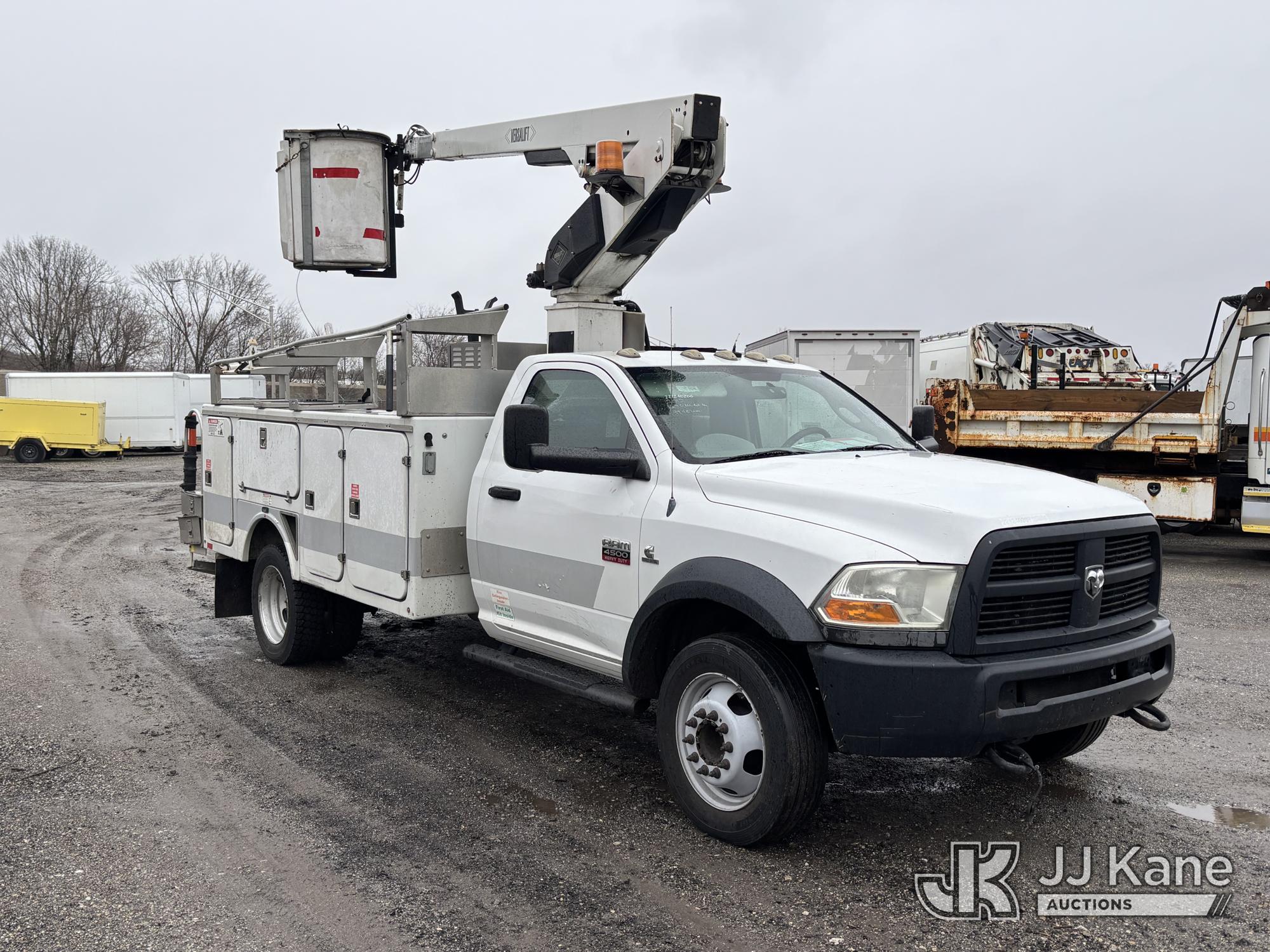 Versalift TEL29N03, 34 ft, Telescopic Non-Insulated Bucket Truck s/n AG120302, with single-man bucket, mounted behind cab on 2012 RAM 4500 Service Truck, 6.7L diesel, Auto, A/C, (99,487 miles) (Runs, Moves & Upper Operates, Missing Driver & Passenger Seats, Check Engine Light On, Hydraulic Pump Noise, Missing Upper Plate, Must Tow) This is a Titled Item*