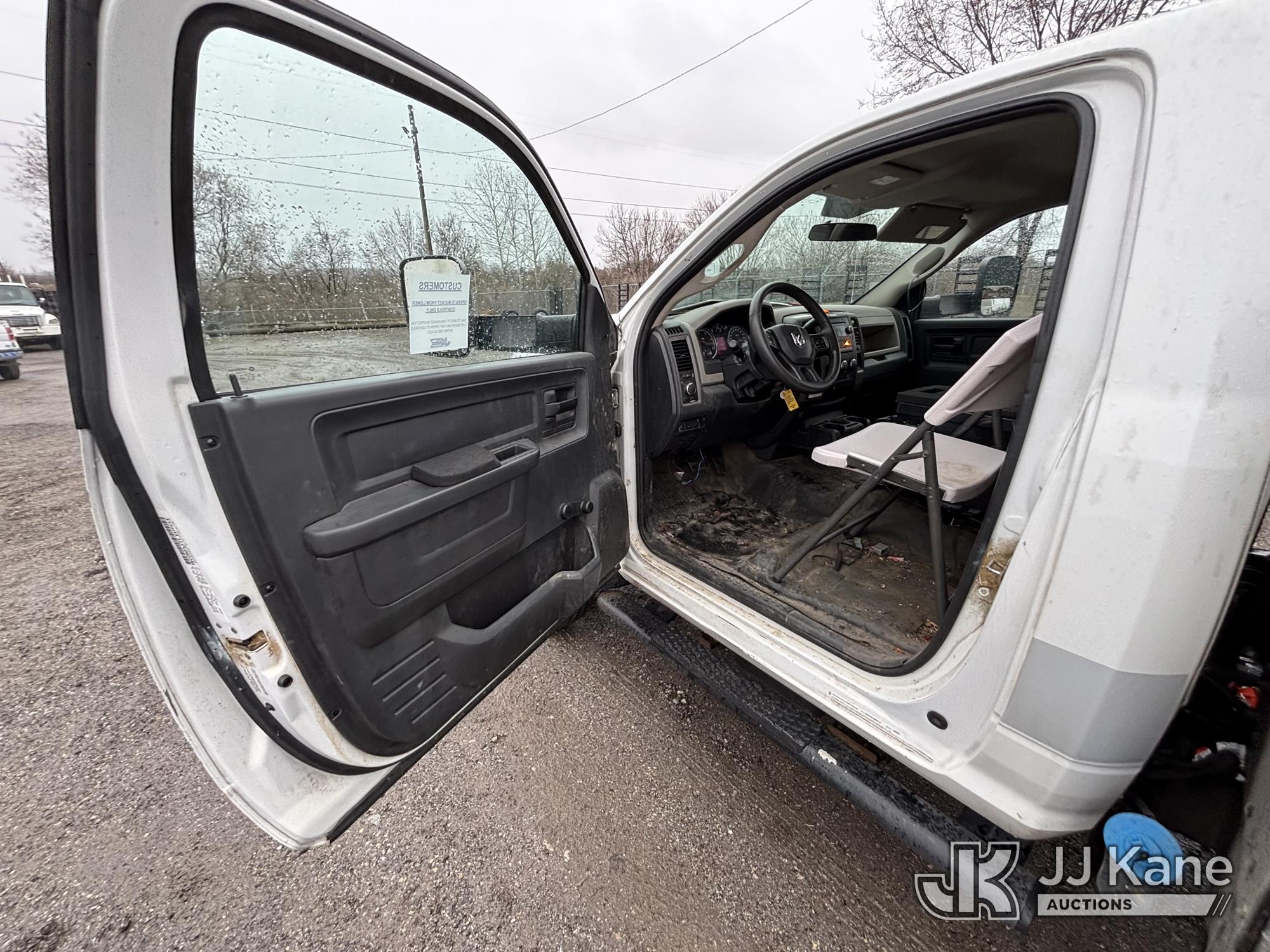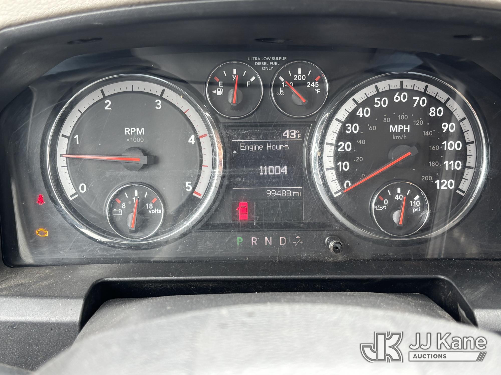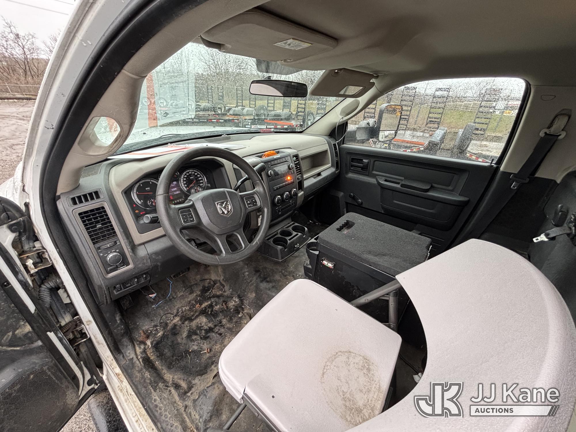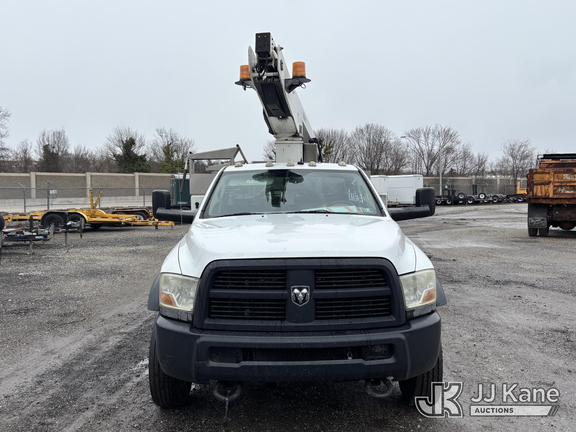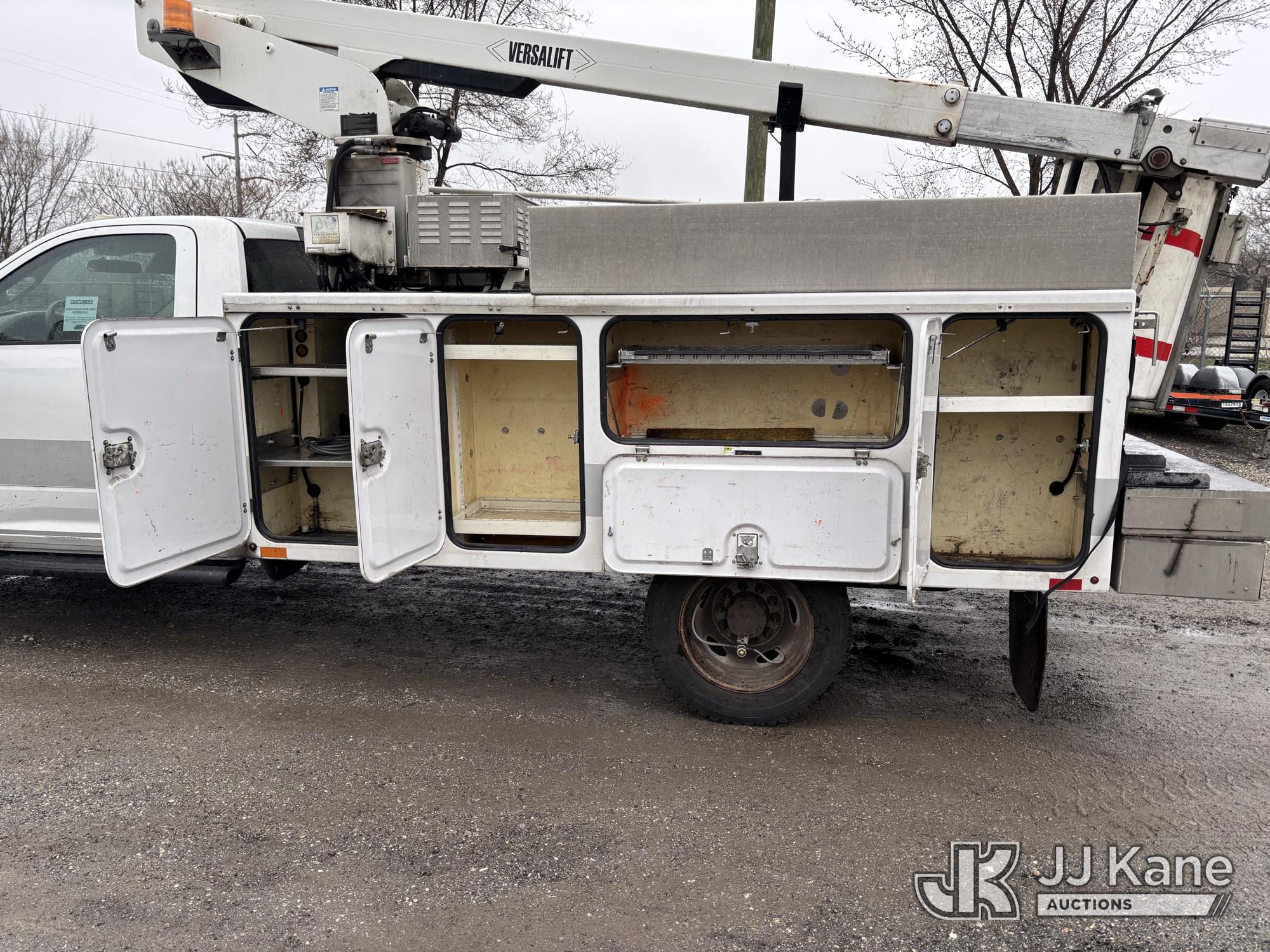 Versalift TEL29N03, 34 ft, Telescopic Non-Insulated Bucket Truck s/n AG120302, with single-man bucket, mounted behind cab on 2012 RAM 4500 Service Truck, 6.7L diesel, Auto, A/C, (99,487 miles) (Runs, Moves & Upper Operates, Missing Driver & Passenger Seats, Check Engine Light On, Hydraulic Pump Noise, Missing Upper Plate, Must Tow) This is a Titled Item*