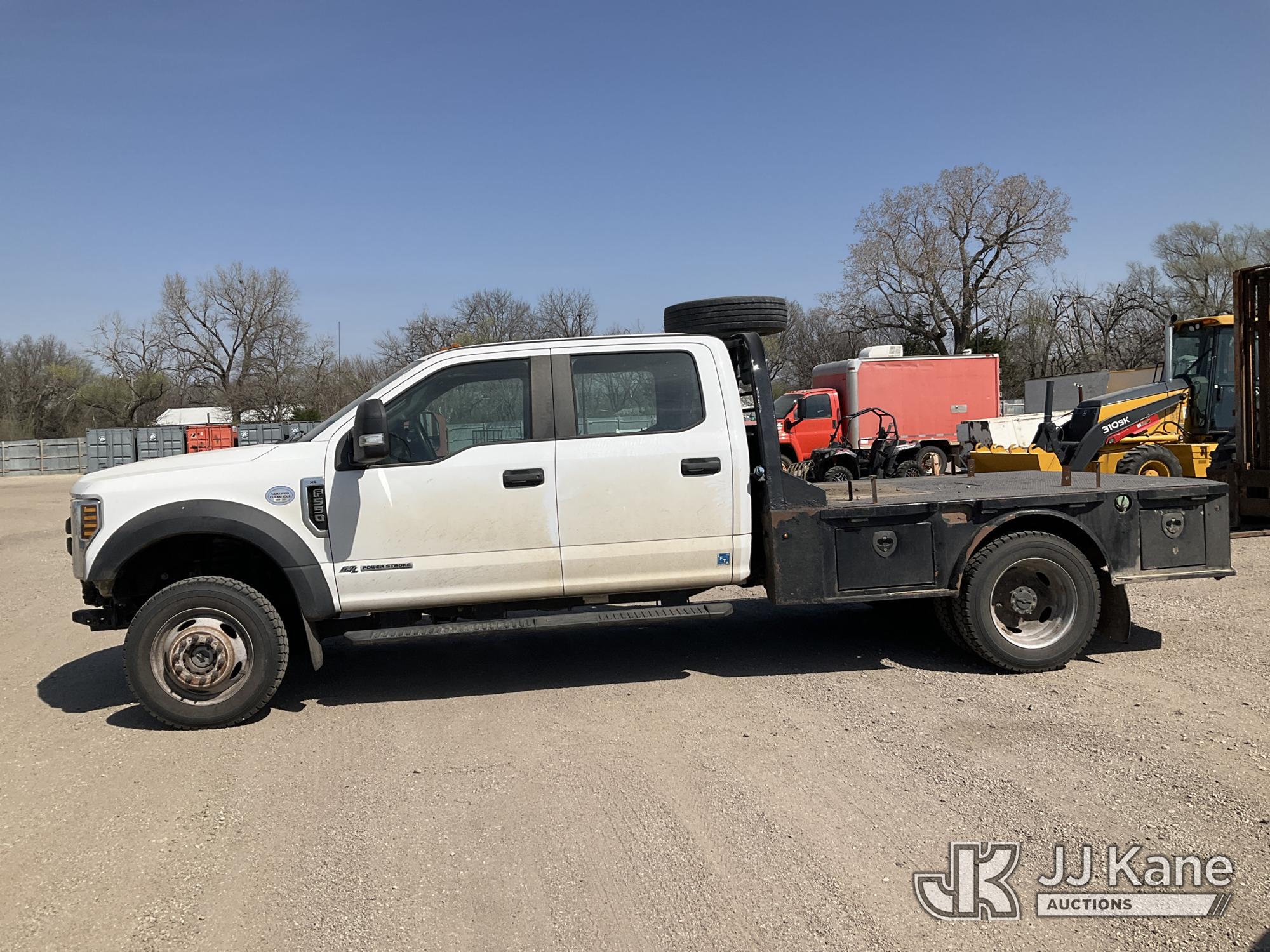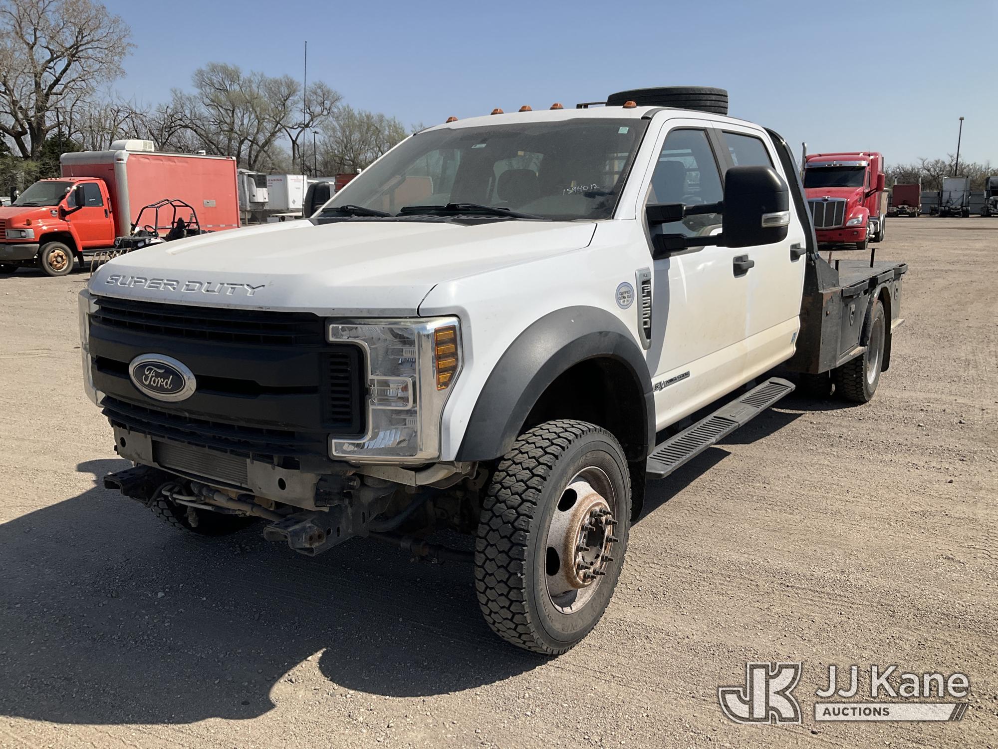 2018 Ford F550 Crew-Cab Flatbed Truck, 6.7L Diesel 4wd, Auto, A/C, (140,716 miles) (Runs & Moves) (Jump To Start) (Seller States: Refill DEF Soon) This is a Titled Item*