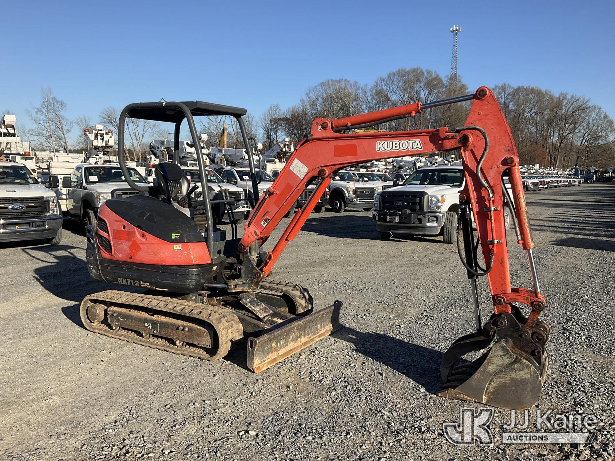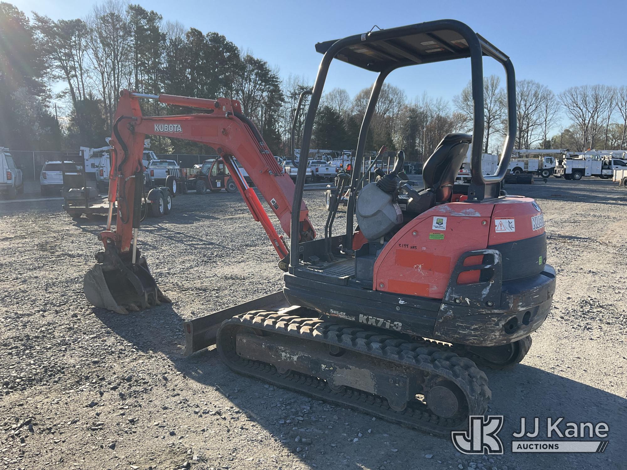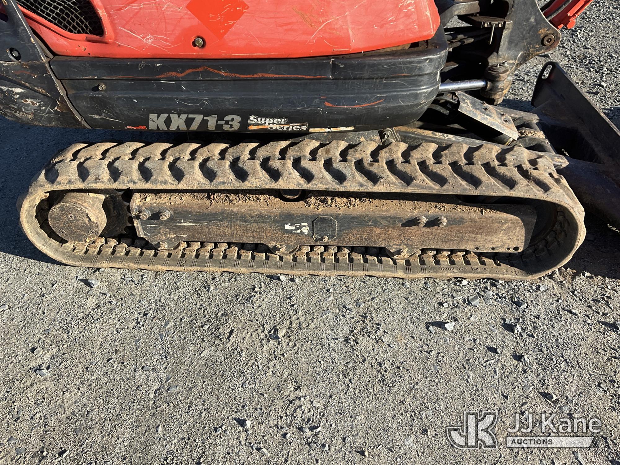 2019 Kubota KX71-3S Mini Hydraulic Excavator, s/n JKUK0713E01H23388, Kubota diesel, Hydraulic Drive, with 4 ft 5 in stick, 24 in digging bucket, aux hyd, hyd thumb, backfill blade, rubber tracks & ROPS, (Runs, Moves & Operates ) (Reads 2,144 hours)*