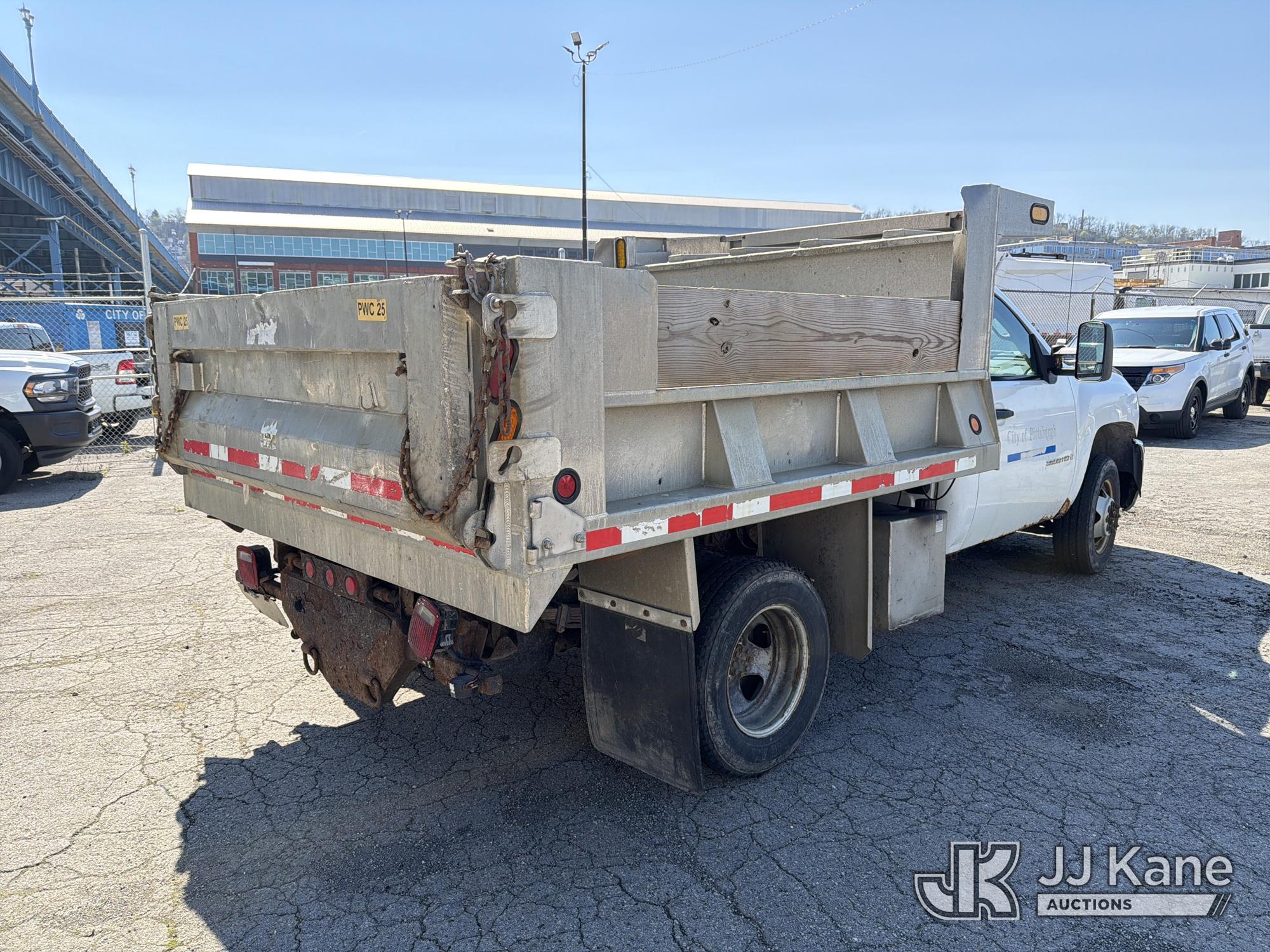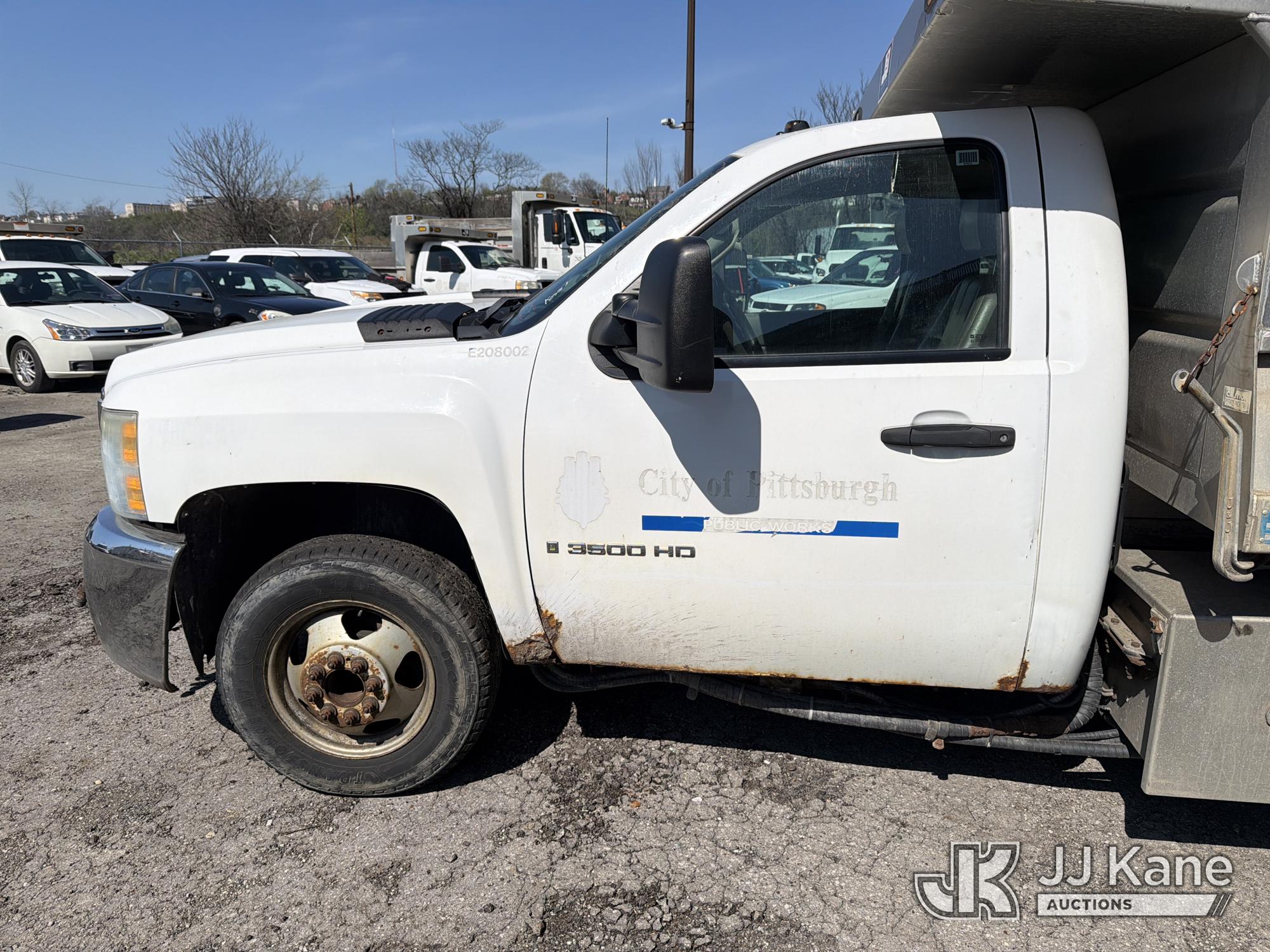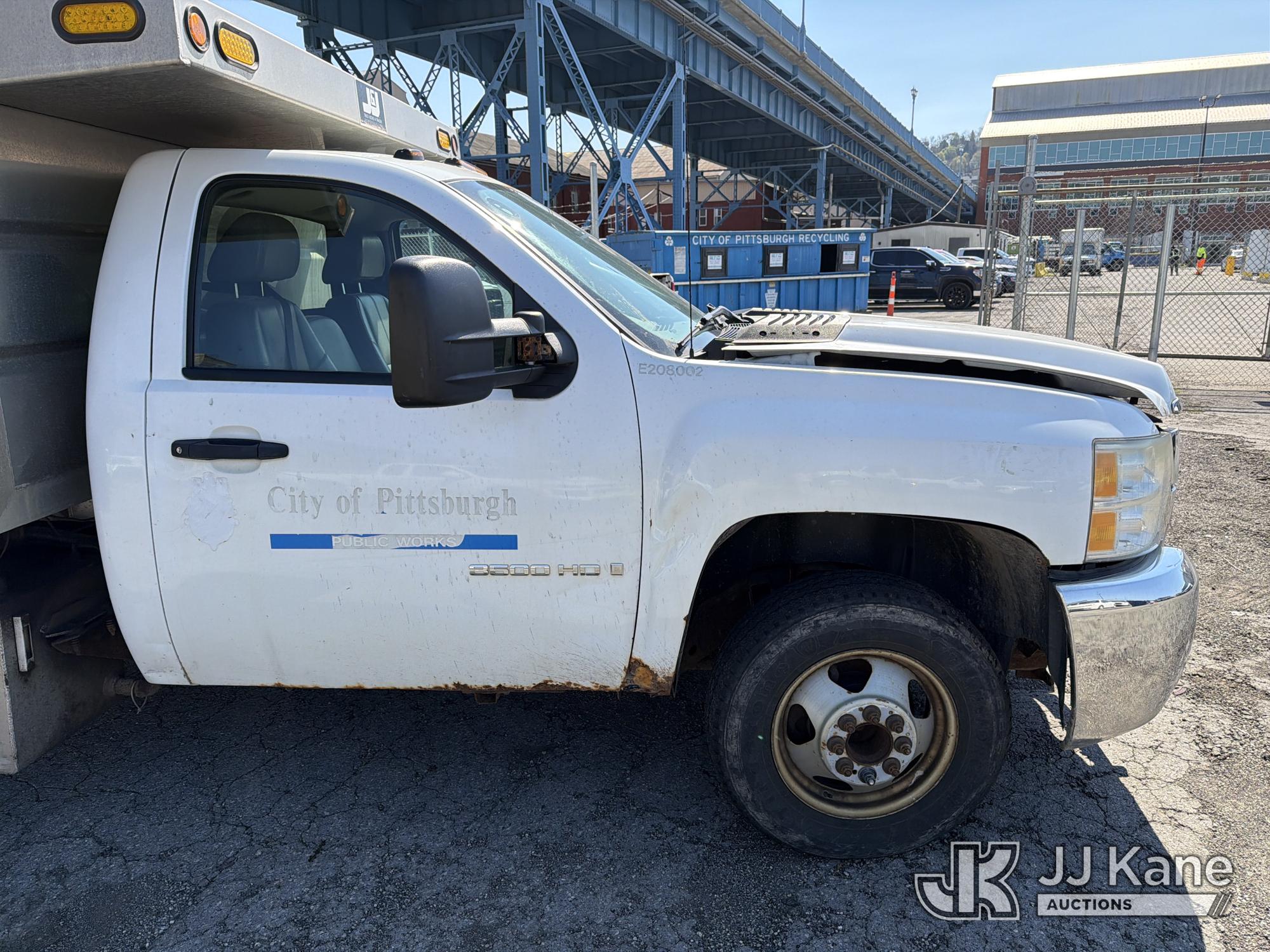 2008 Chevrolet Silverado 3500HD 4x4 Dump Truck, 6.6L V8 Diesel, 6-Speed Automatic, A/C, (93,678 miles) (Runs & Moves with Jump Pack, Dump Body Inoperable, Condition Unknown, Check Engine Light On, Rust, & Dents Present) (Removal is by appointment only. Buyer/Transporter MUST have a PAID IN FULL RELEASE form. No on-site assistance will be provided, so please arrive fully prepared.The location cannot accommodate large rollback trucks for non-running vehicles. Smaller equipment must be used to move vehicles to an open area for loading.) This is a Titled Item*