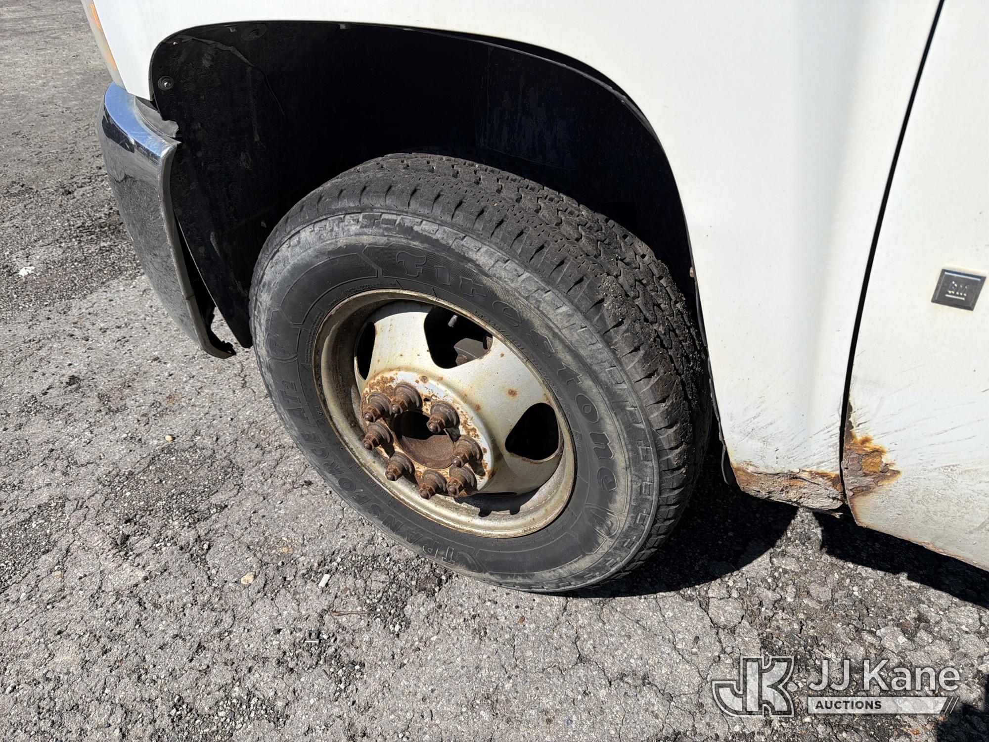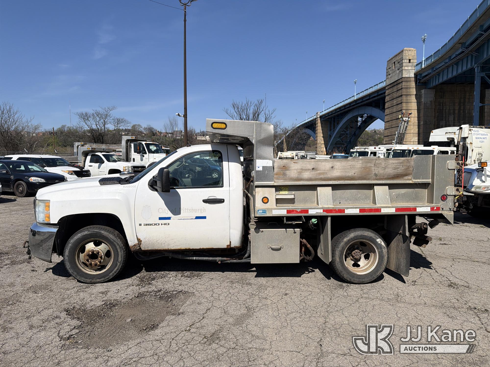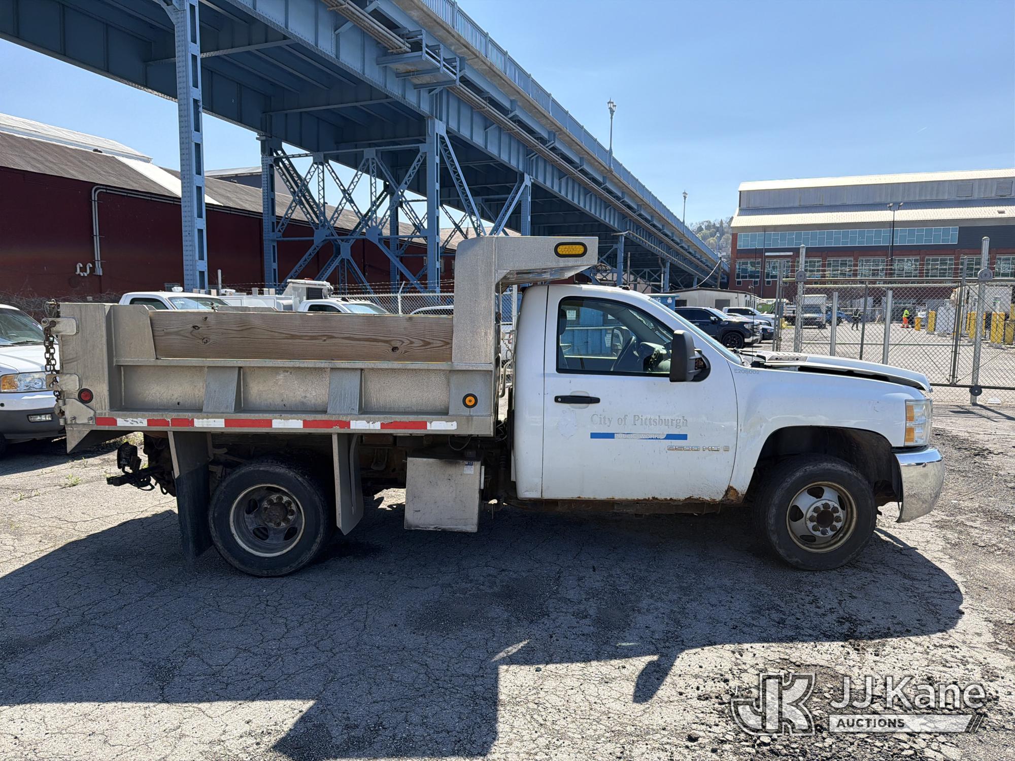 2008 Chevrolet Silverado 3500HD 4x4 Dump Truck, 6.6L V8 Diesel, 6-Speed Automatic, A/C, (93,678 miles) (Runs & Moves with Jump Pack, Dump Body Inoperable, Condition Unknown, Check Engine Light On, Rust, & Dents Present) (Removal is by appointment only. Buyer/Transporter MUST have a PAID IN FULL RELEASE form. No on-site assistance will be provided, so please arrive fully prepared.The location cannot accommodate large rollback trucks for non-running vehicles. Smaller equipment must be used to move vehicles to an open area for loading.) This is a Titled Item*