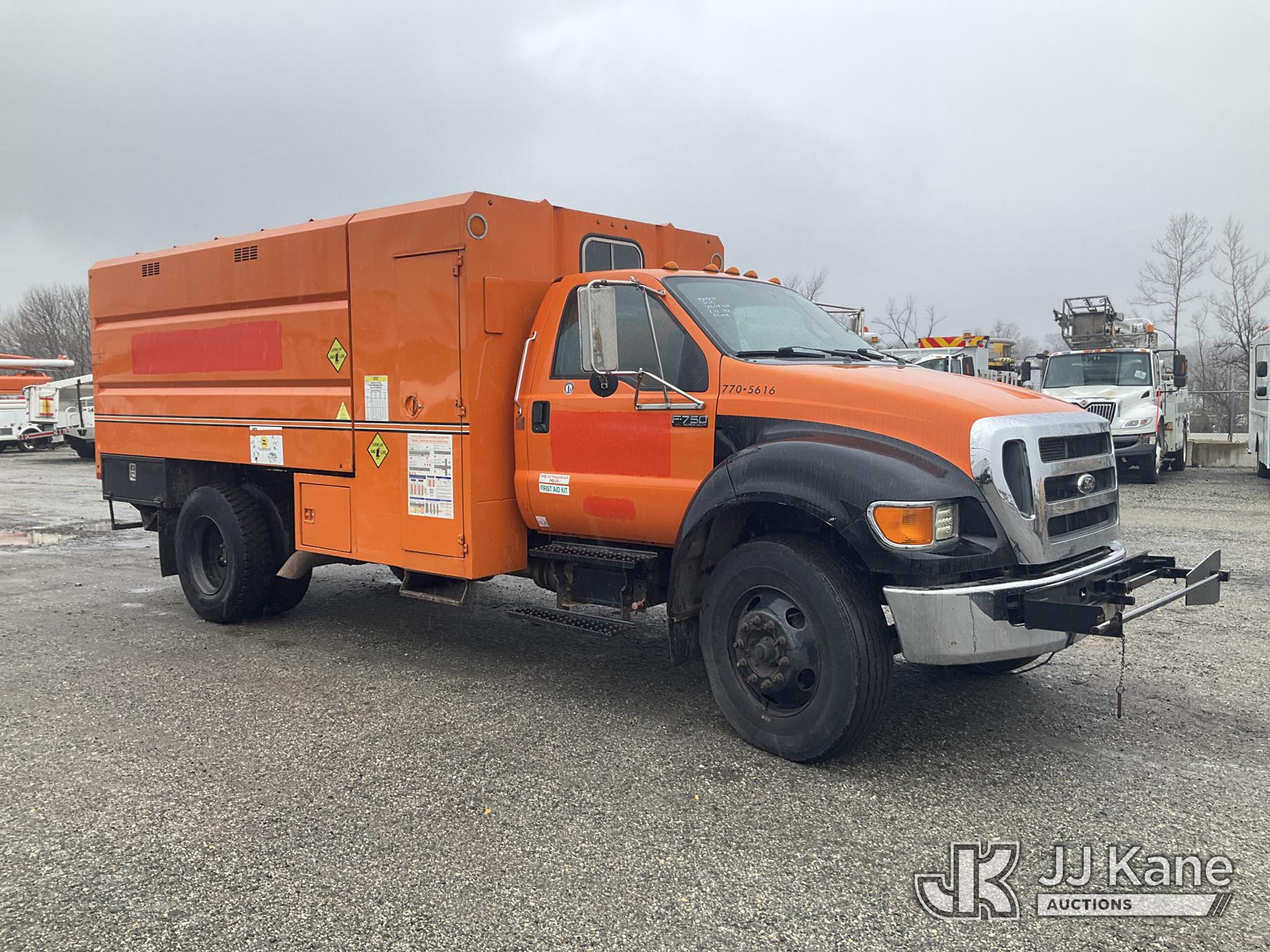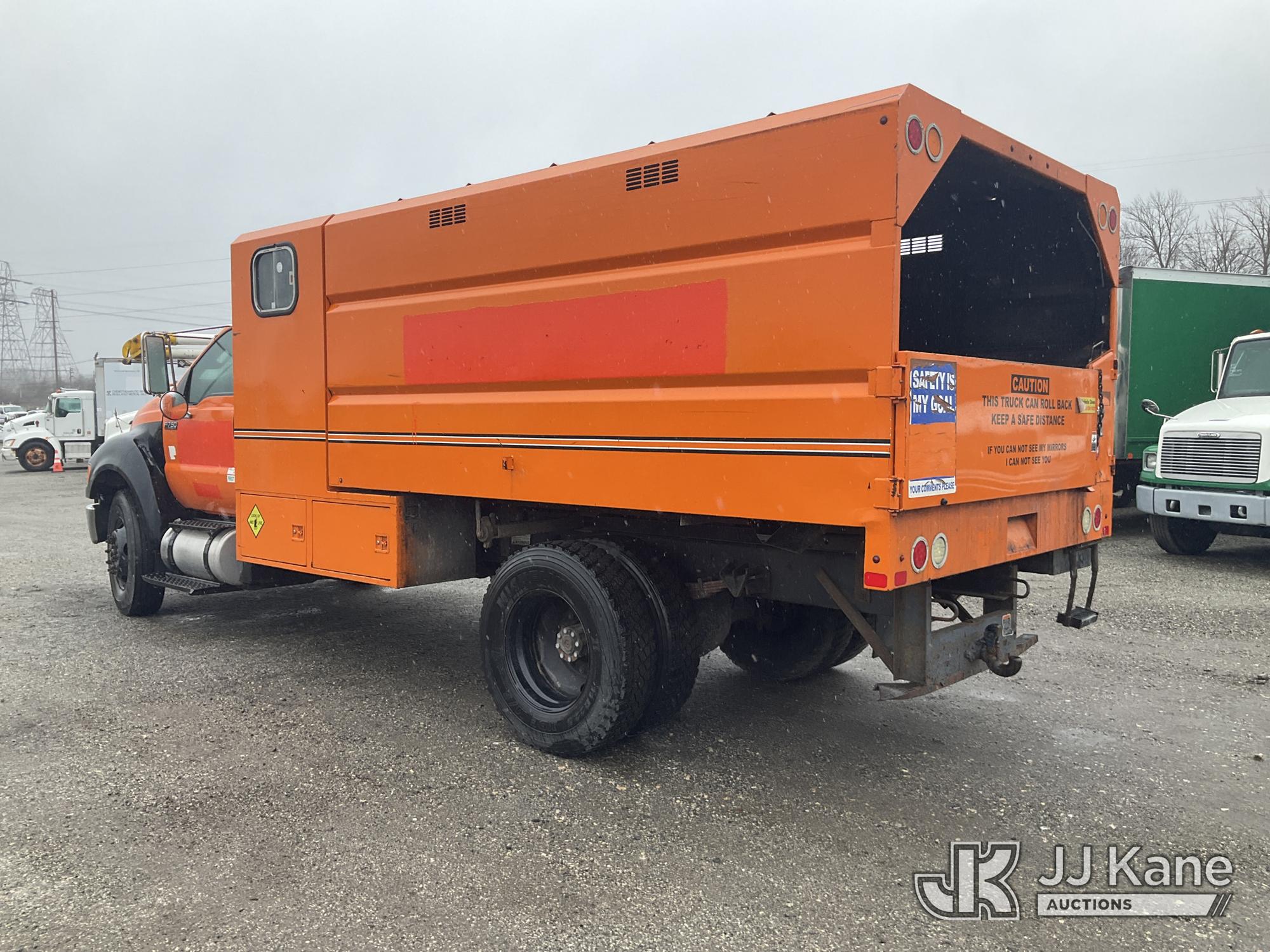 2015 Ford F750 Chipper Dump Truck, 6.7L diesel, 6-spd, with 11ft body, (84,396 miles) (Seller States; Transmission Issues, Runs Moves & Dump Does Not Operate, Check Engine Light On, Wrench Light On, Regen Light On) This is a Titled Item*