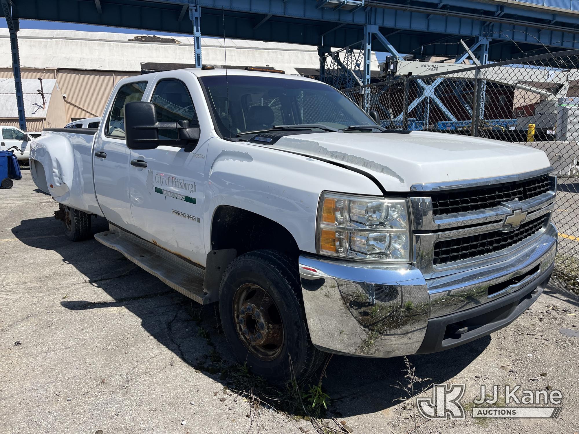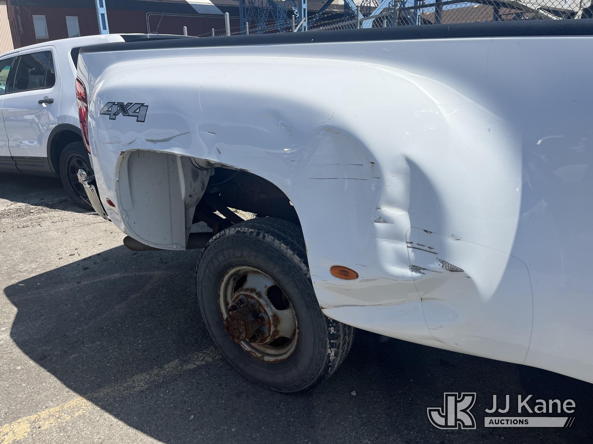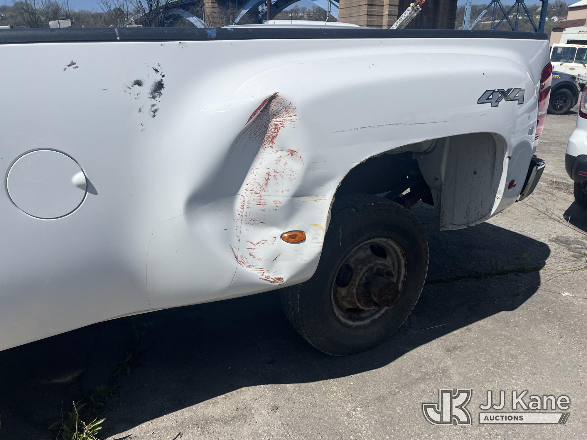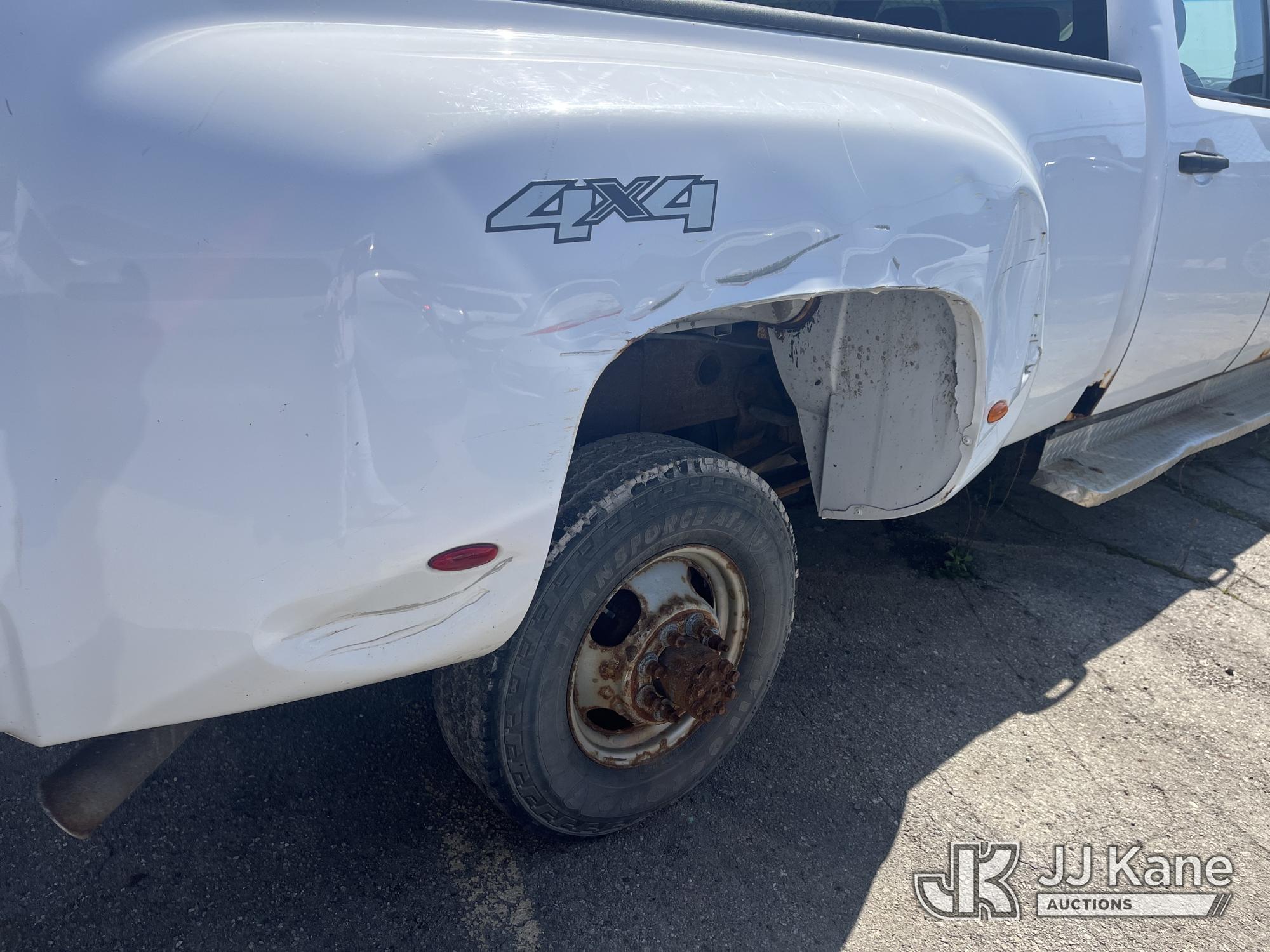 2008 Chevrolet Silverado 3500HD 4x4 Crew-Cab Dual Wheel Pickup Truck, 6.6L V8 Diesel, 6-Speed Automatic, A/C, (91,029 miles) (Runs & Moves, Jump To Start, Missing Wheels, Body Damage & Rusty Rocker Panels & Doors) (Removal is by appointment only. Buyer/Transporter MUST have a PAID IN FULL RELEASE form. No on-site assistance will be provided, so please arrive fully prepared. The location cannot accommodate large rollback trucks for non-running vehicles. Smaller equipment must be used to move vehicles to an open area for loading.) This is a Titled Item*