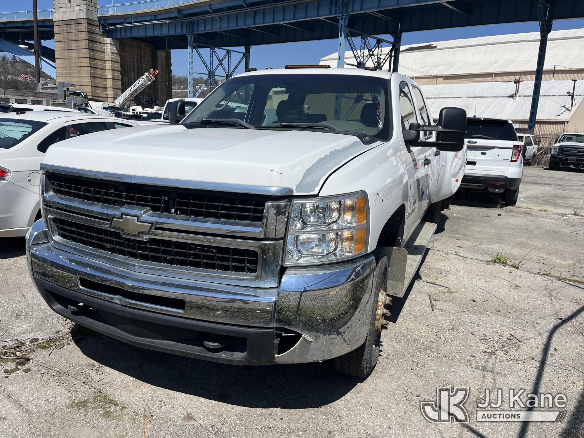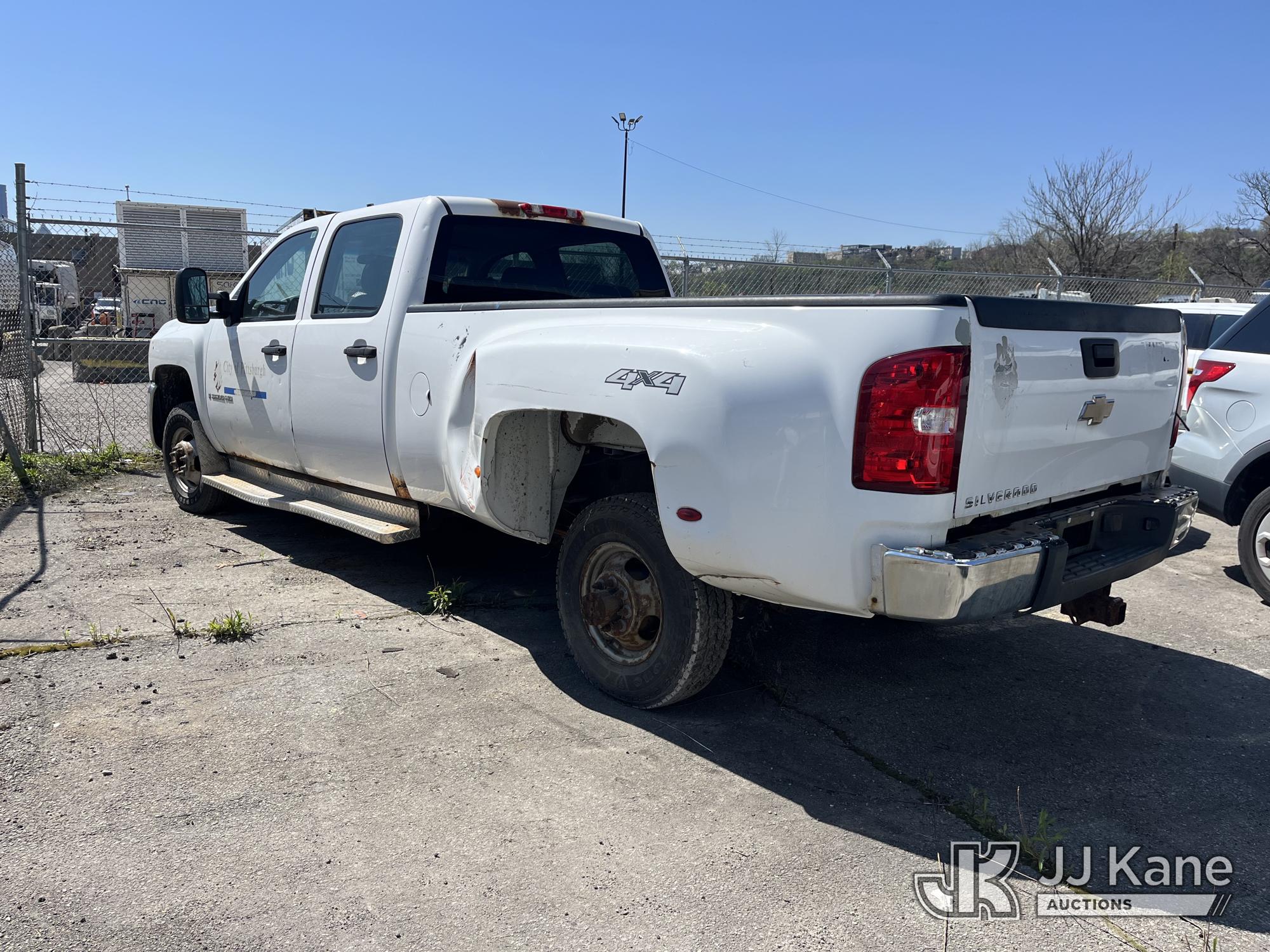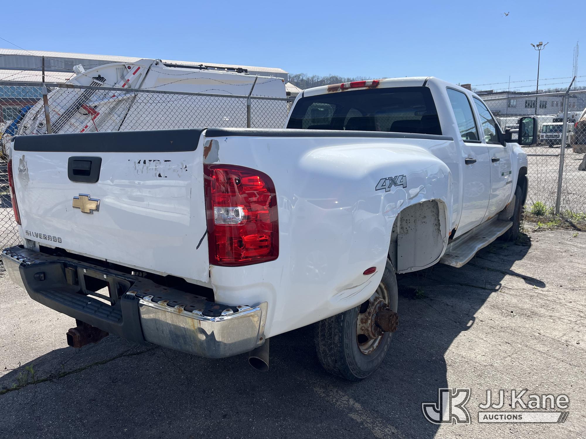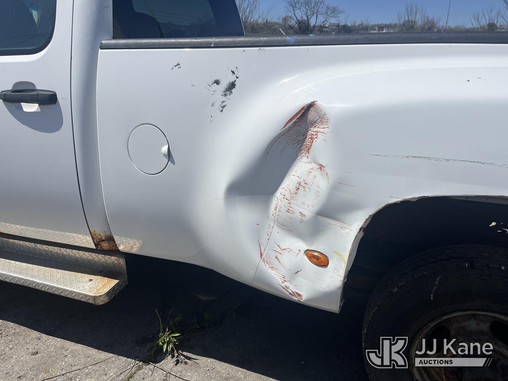 2008 Chevrolet Silverado 3500HD 4x4 Crew-Cab Dual Wheel Pickup Truck, 6.6L V8 Diesel, 6-Speed Automatic, A/C, (91,029 miles) (Runs & Moves, Jump To Start, Missing Wheels, Body Damage & Rusty Rocker Panels & Doors) (Removal is by appointment only. Buyer/Transporter MUST have a PAID IN FULL RELEASE form. No on-site assistance will be provided, so please arrive fully prepared. The location cannot accommodate large rollback trucks for non-running vehicles. Smaller equipment must be used to move vehicles to an open area for loading.) This is a Titled Item*